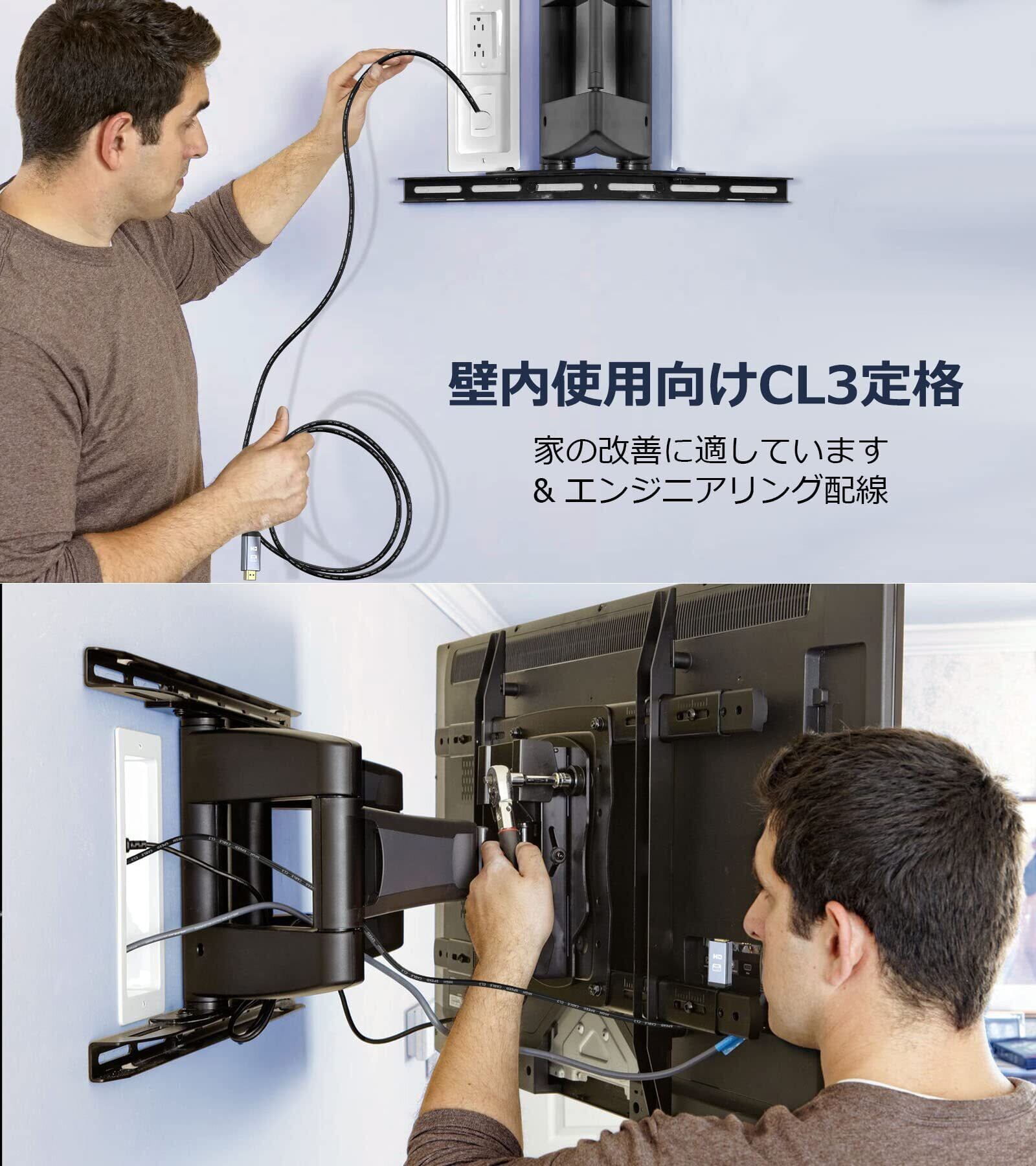 【CL3規格】: 難燃性と丈夫なプラスチック シースを備えた壁内設置用の CL3 定格 HDMI ケーブルです。