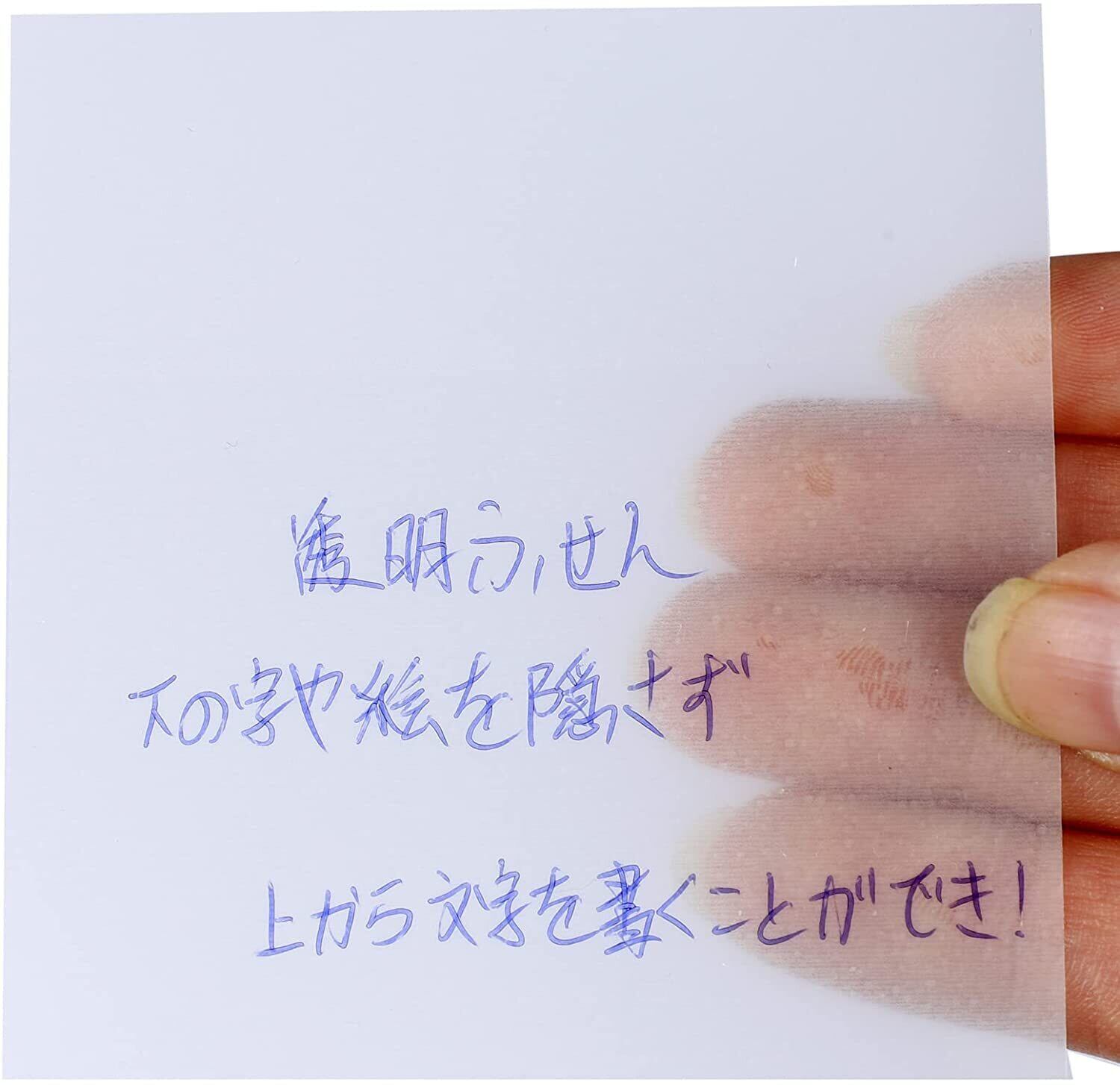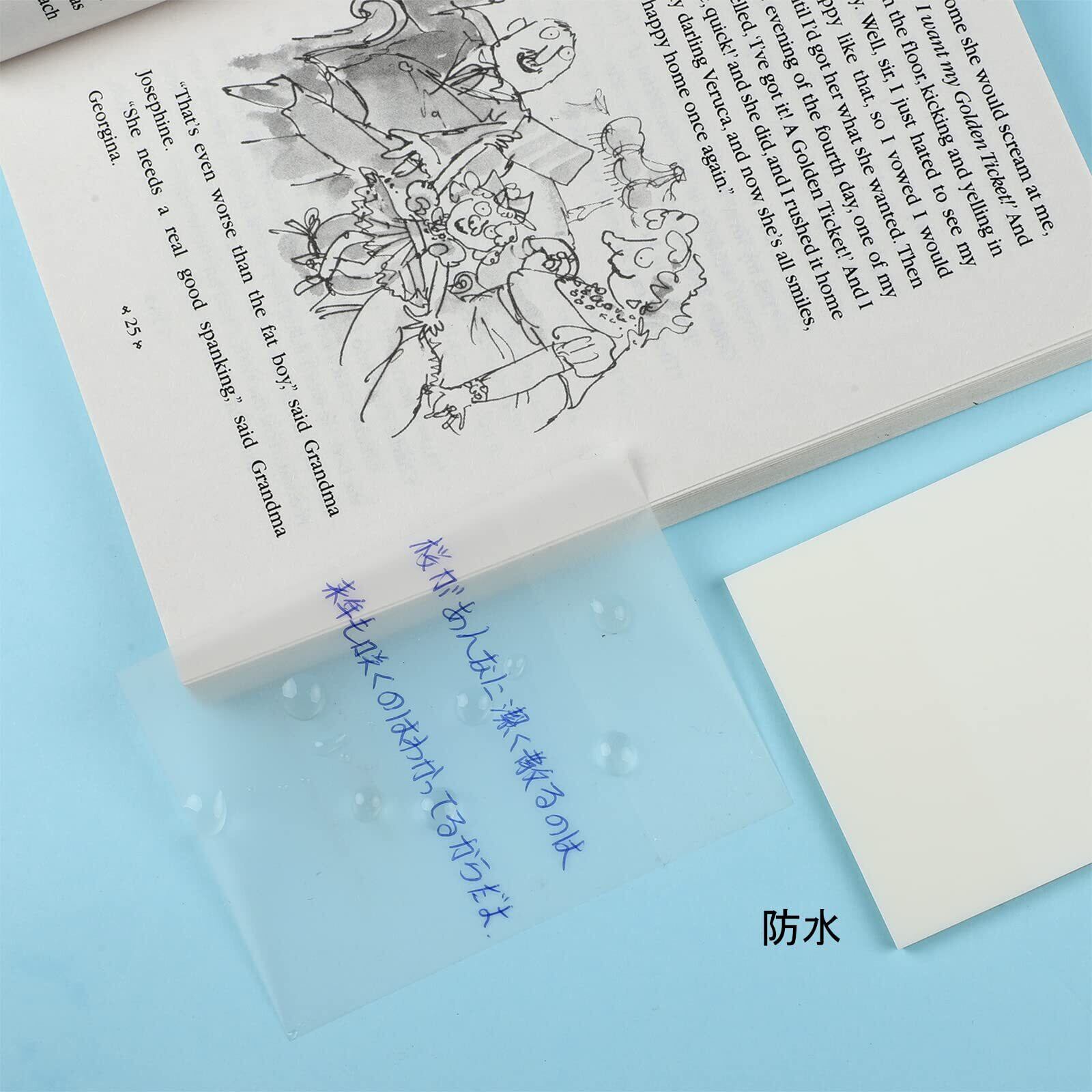 【透明付箋】ふせんは透明なので下の字や絵を隠さず、上から文字を書くことができます。貼る部分も透明で字の上に貼っても読めるので、貼る場所に悩むこともありません。