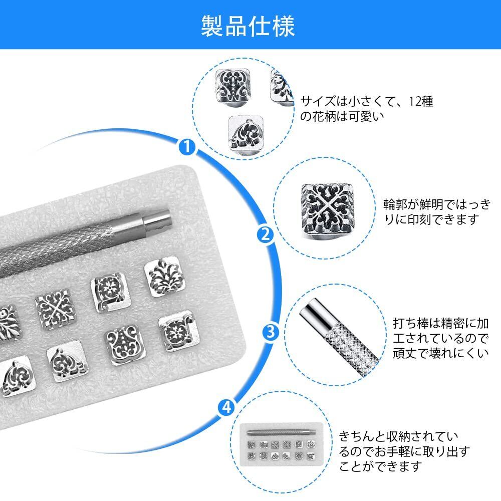 ■【ユニークなパターン】:パターンのサイズ:約10mmx10mm。花柄は可愛くて、レトロなスタイルに溢れています。小さいですが、輪郭が鮮明でレザークラフトなどにはっきりに印刻できます。(スタンプは別々にきちんと収納されているので、必要なスタンプのみをお手軽に取り出すことができます。)