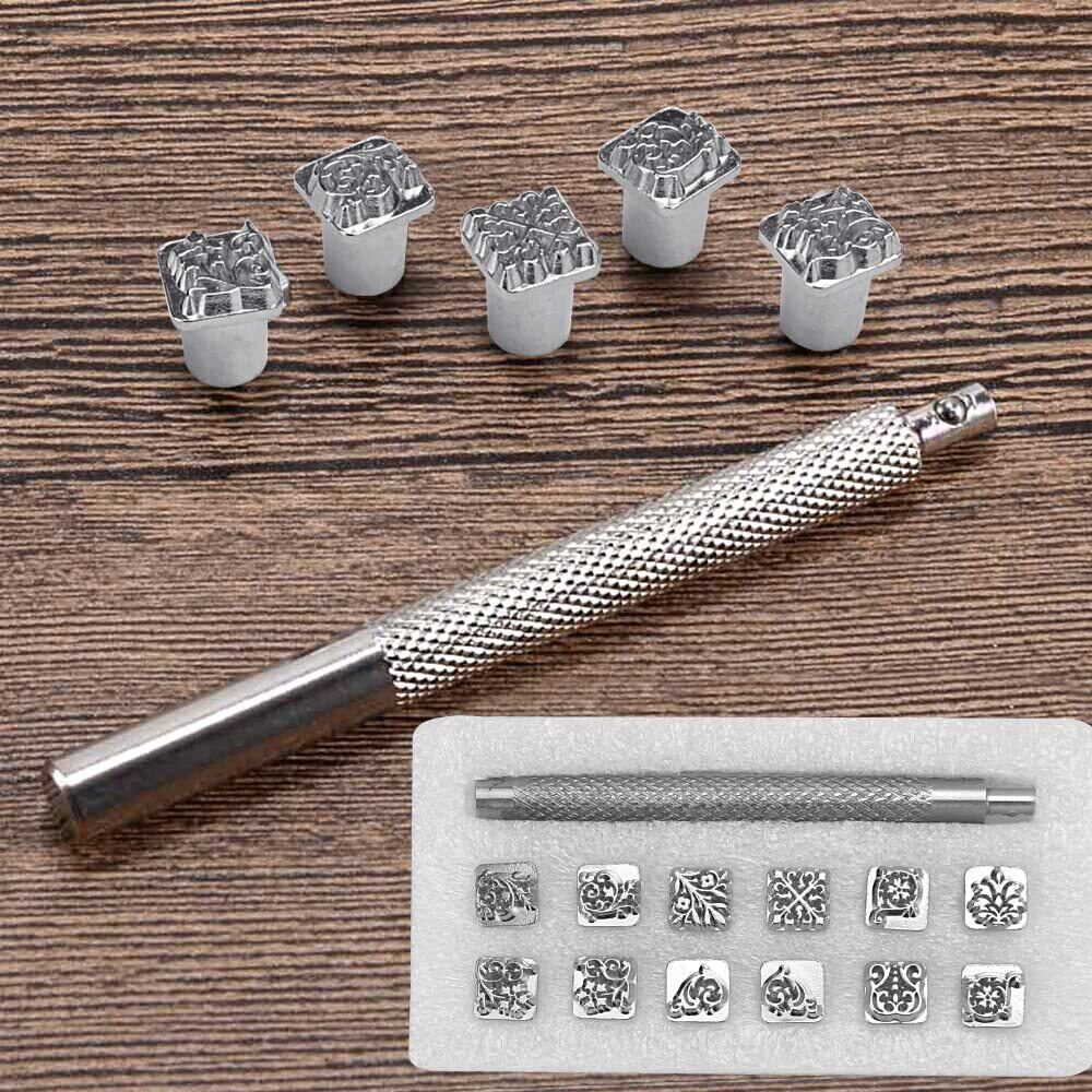 EMAGEREN 刻印セット レザークラフト 12個セット10mm 交換式刻印 革用刻印セット レザースタンプ レザー 刻印 DIY 手作り レザークラフト道具 打ち具 刻印棒付き
