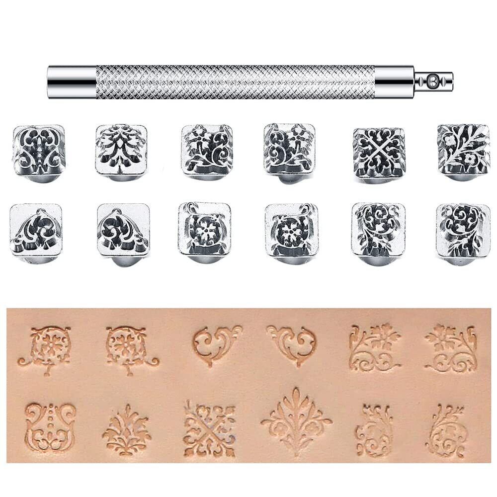 ■【12個セット】:パッケージには、ハンドル1本と12種の異なる可愛い花モチーフのスタンプが含まれております。革製品の模様刻印のニーズに十分に対応できます。お好みの花のパターンを選択して自由に刻印し、世界に一つだけのオリジナル作品を作ることができます。