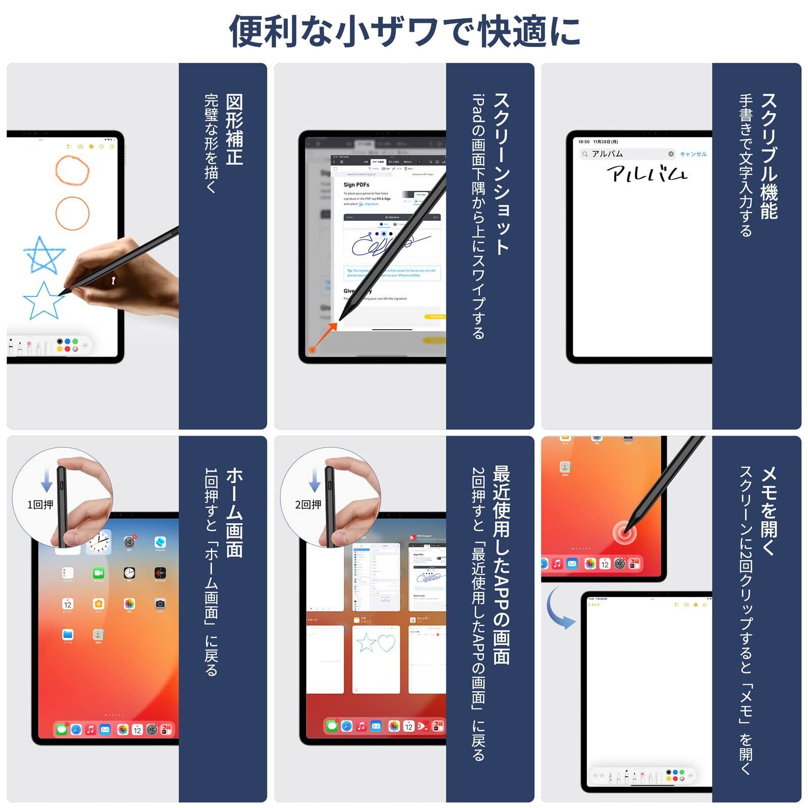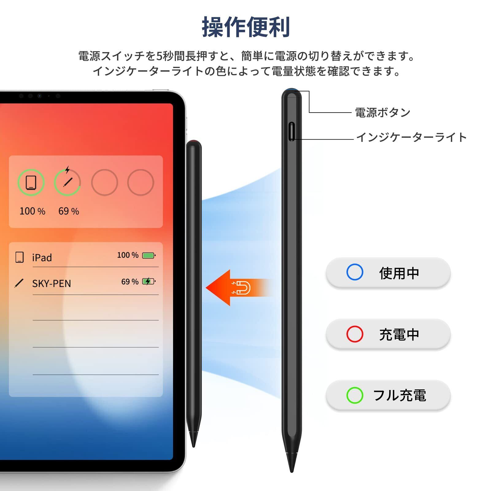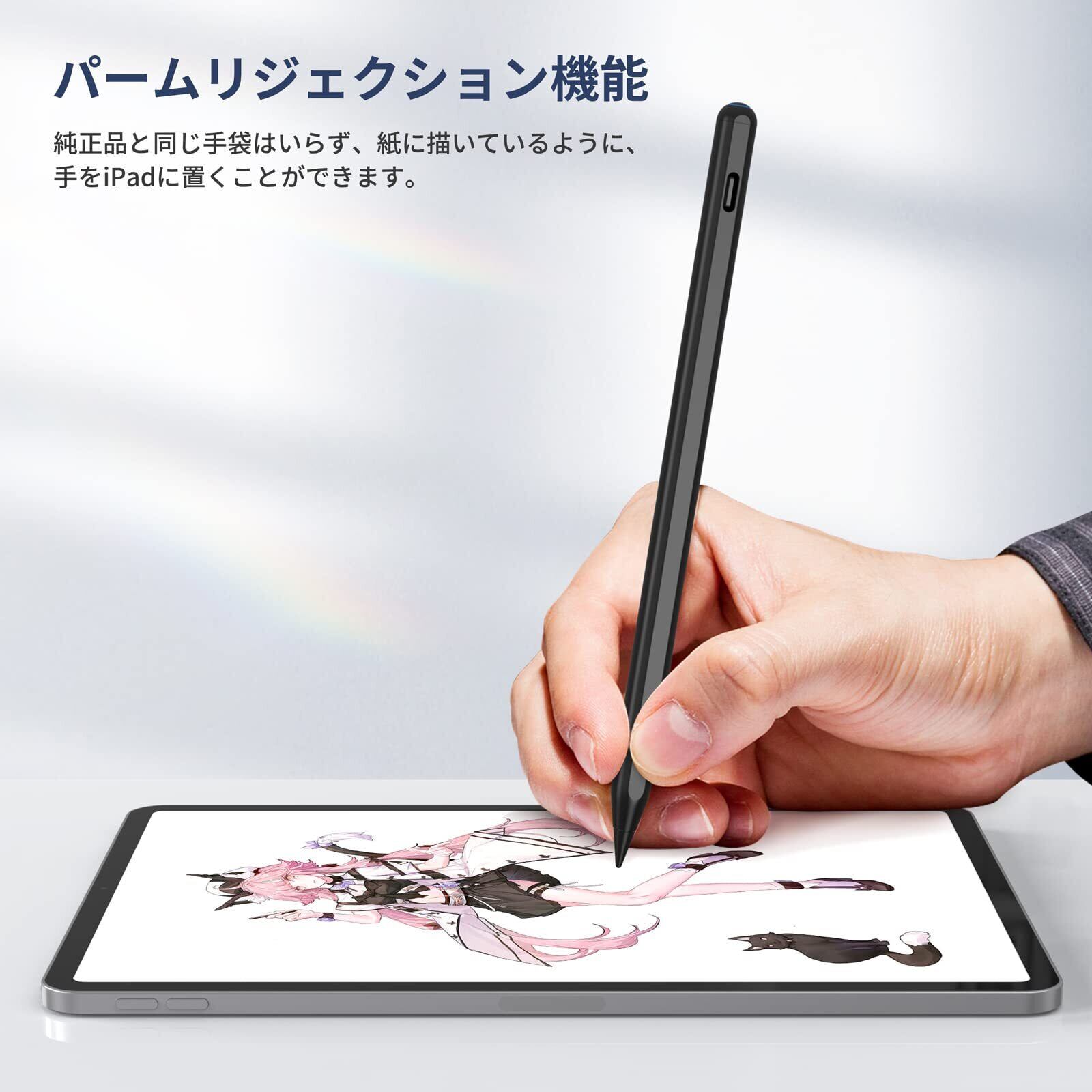 【2023新登場 ワイヤレス/Type-C急速充電】NTHJOYS タッチペン iPad 極細 超高感度 ipad ペンシル apple pencil アップルペンシル 誤作動防止/自動オフ/磁気吸着充電/USB充電 イラスト ゲーム 2018年以降iPad/iPad Pro/iPad air/iPad mini/iPad 第9世代/第10世代対応