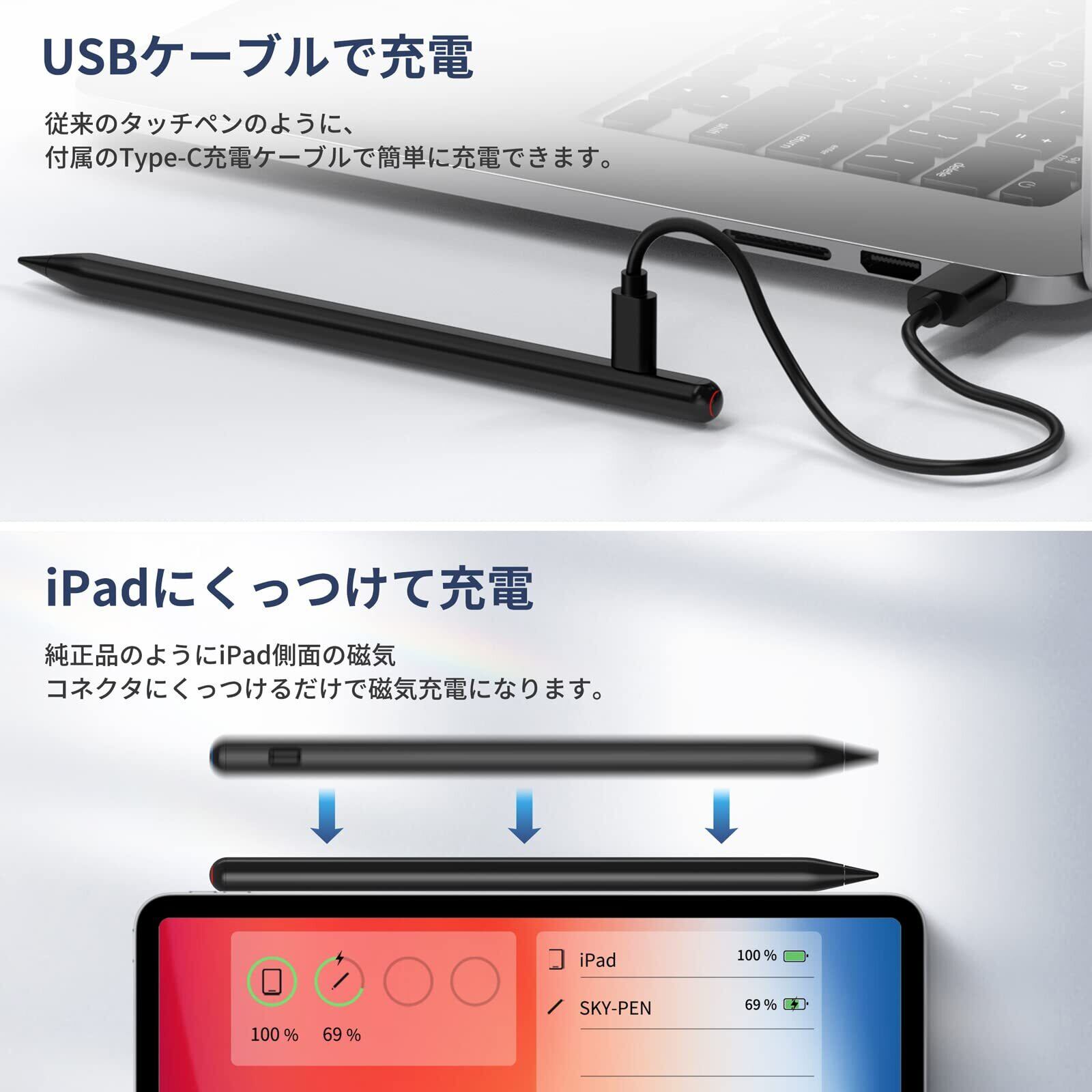 【2023新登場・磁気吸着充電/USB充電両方可能】NTHJOYS ipad タッチペン は、 あっぷるぺんしる 第二世代 純正品のように、iPad側面の磁気コネクタにくっつけるだけで磁気充電になります!充電ケーブルが付属しておりますので、USB充電でも可能です。