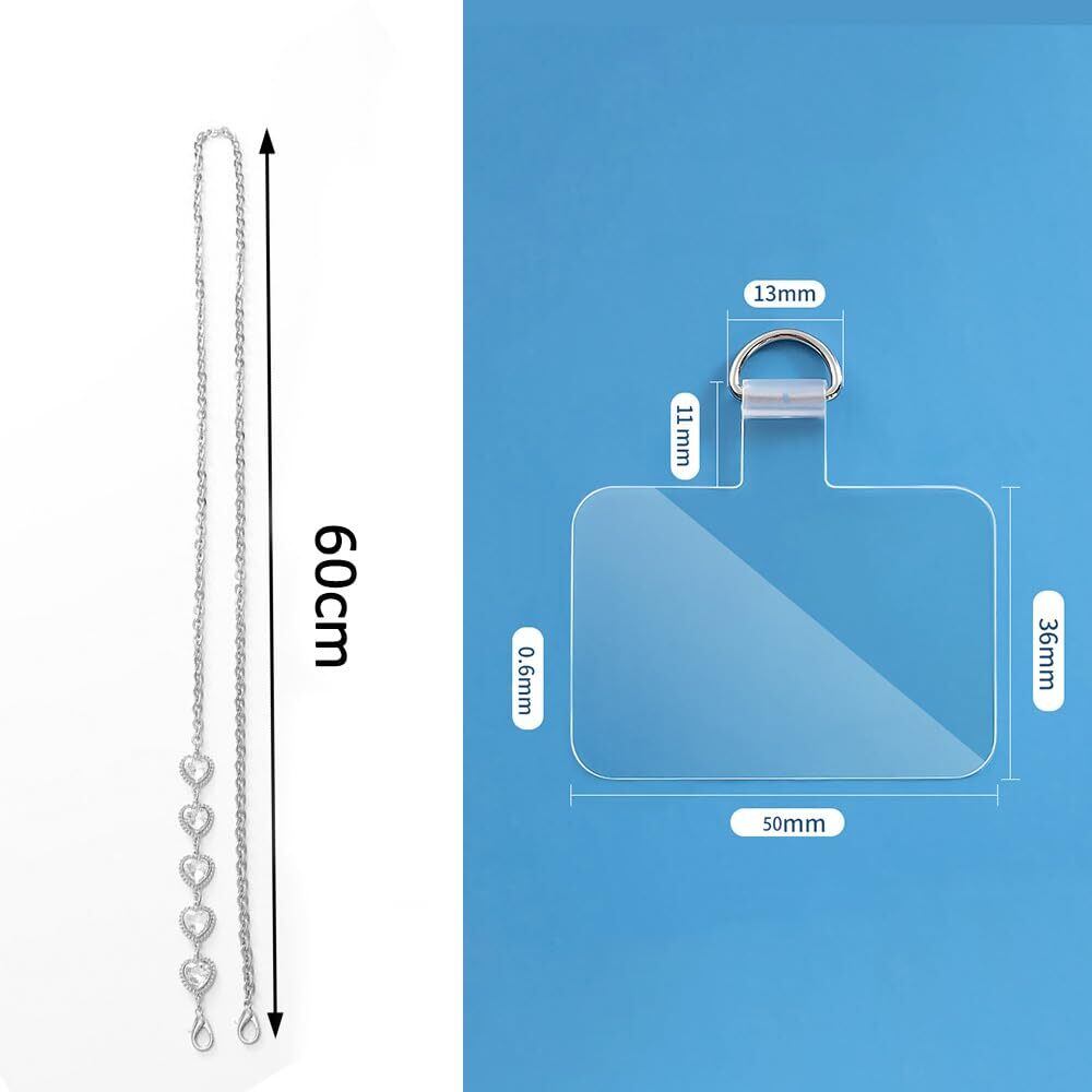 [Turkalla] スマホストラップ スマホチェーン ショルダーストラップ 金属チェーン 携帯ストラップ 全機種対応 ストラップ1本+タグパッチ1枚 120cm