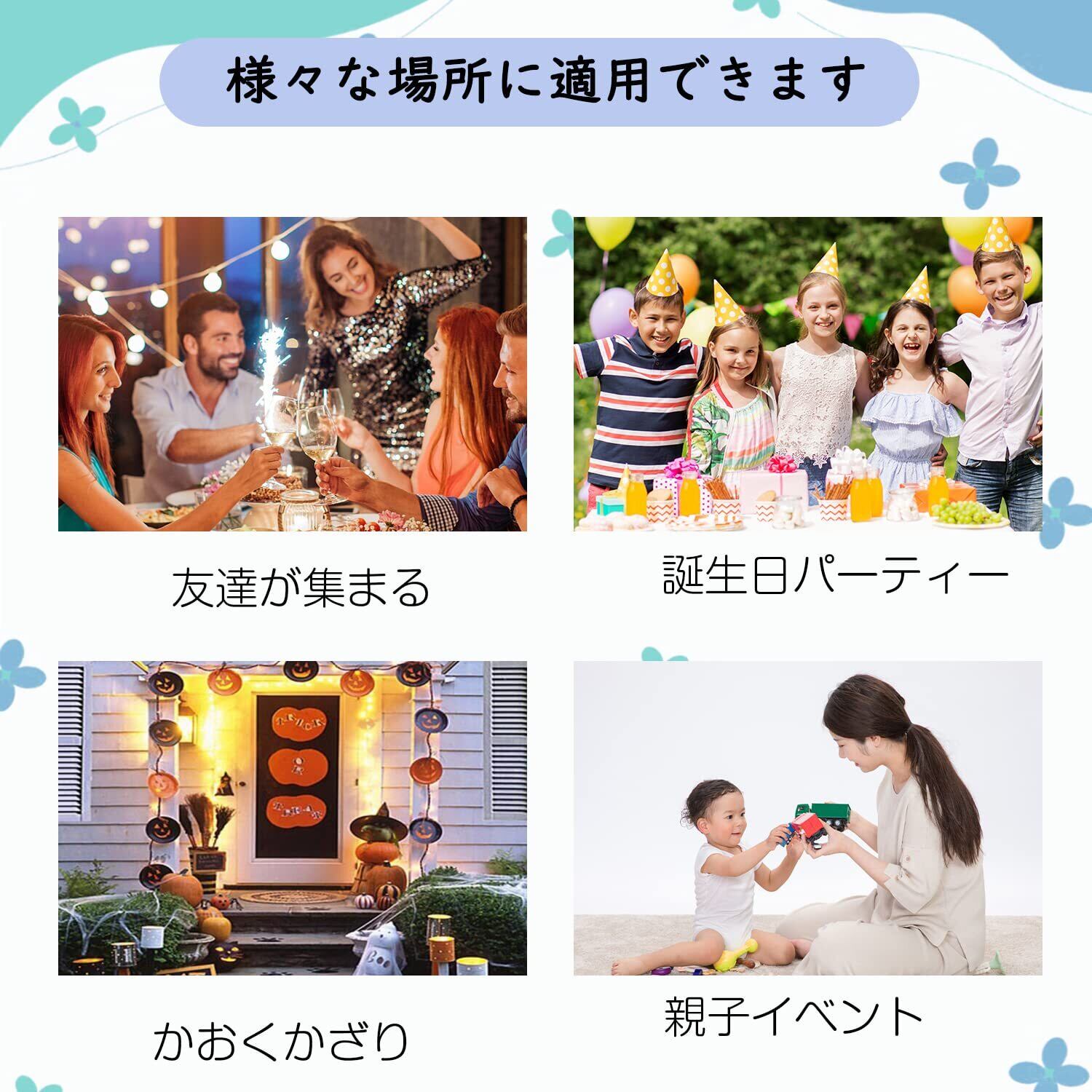 【多用途】誕生日パーティー、記念日、ガーデンディナー、出産祝い、特別なお祭りで、部屋の壁、窓、宴会テーブルなどを飾るのに使用できます。 室内はもちろん、お庭やアウトドアでのパーティーやイベントにもご利用いただけます。 パーティー後のお部屋の飾りとしてもお使いいただけます。