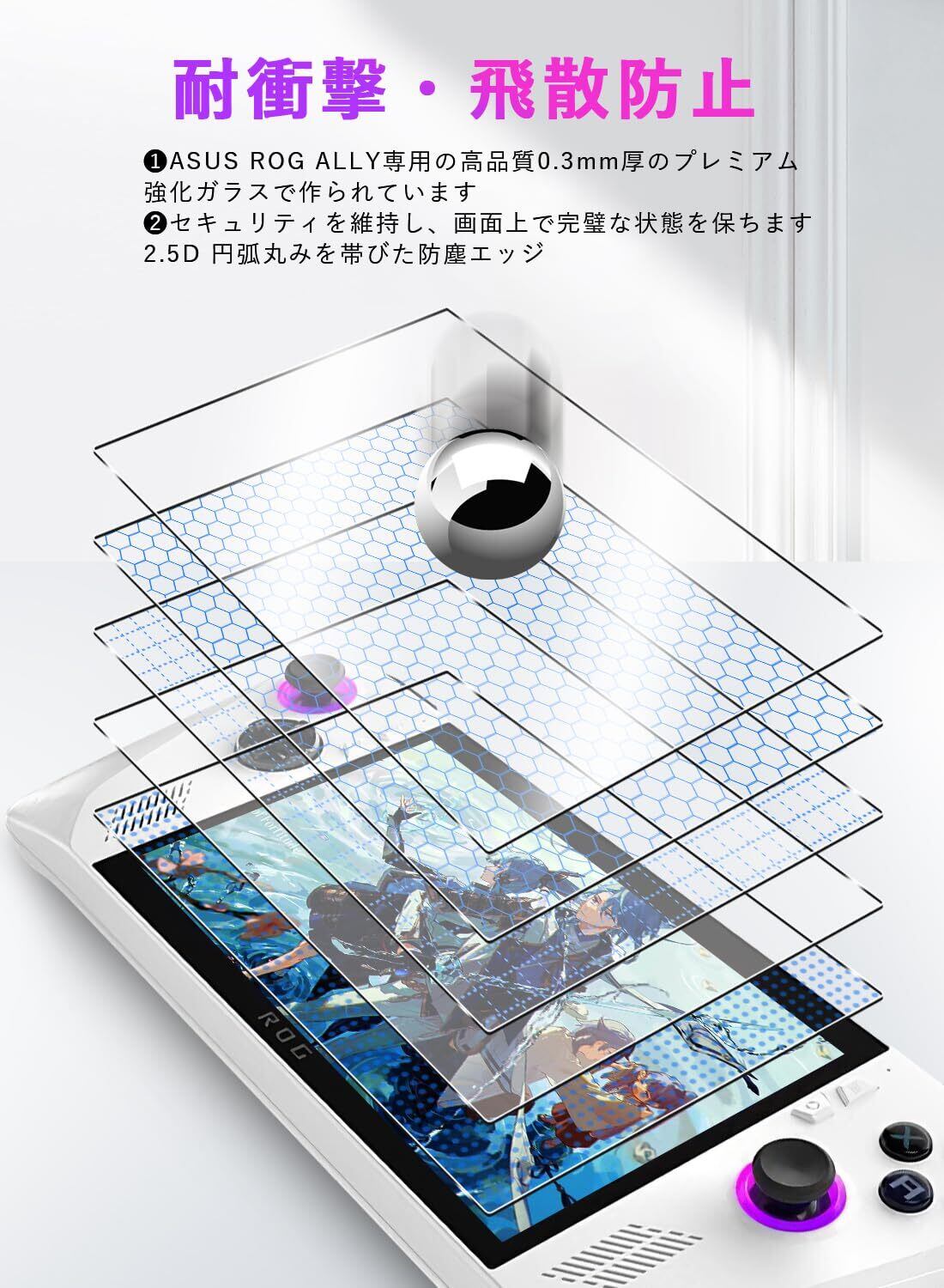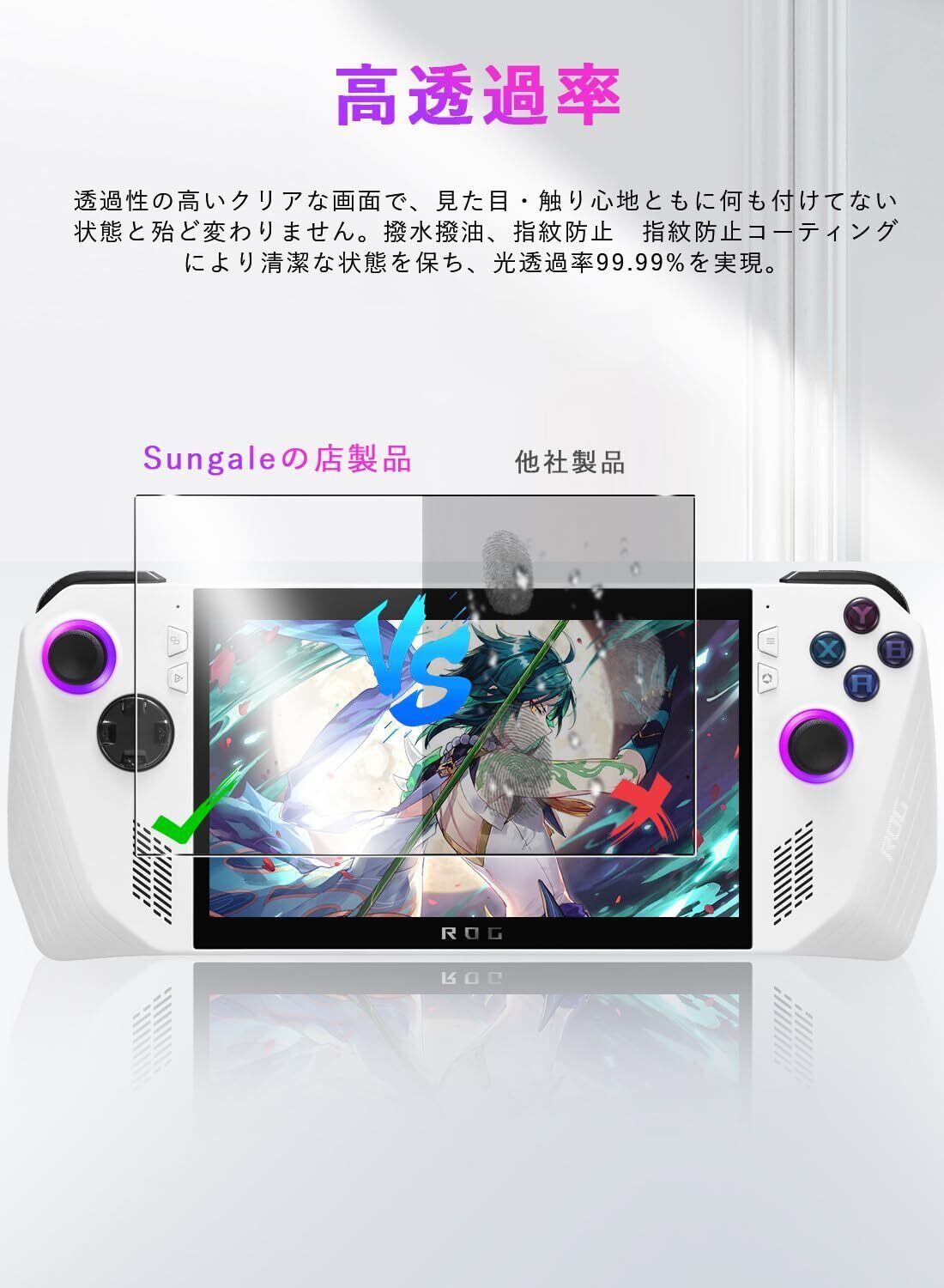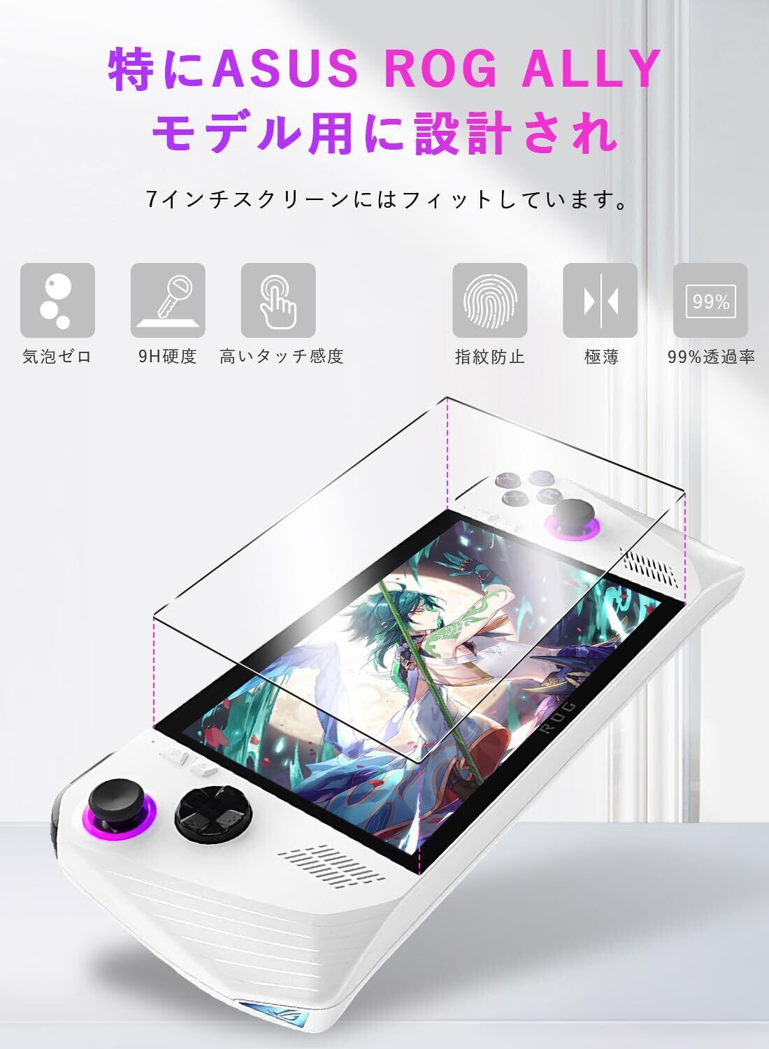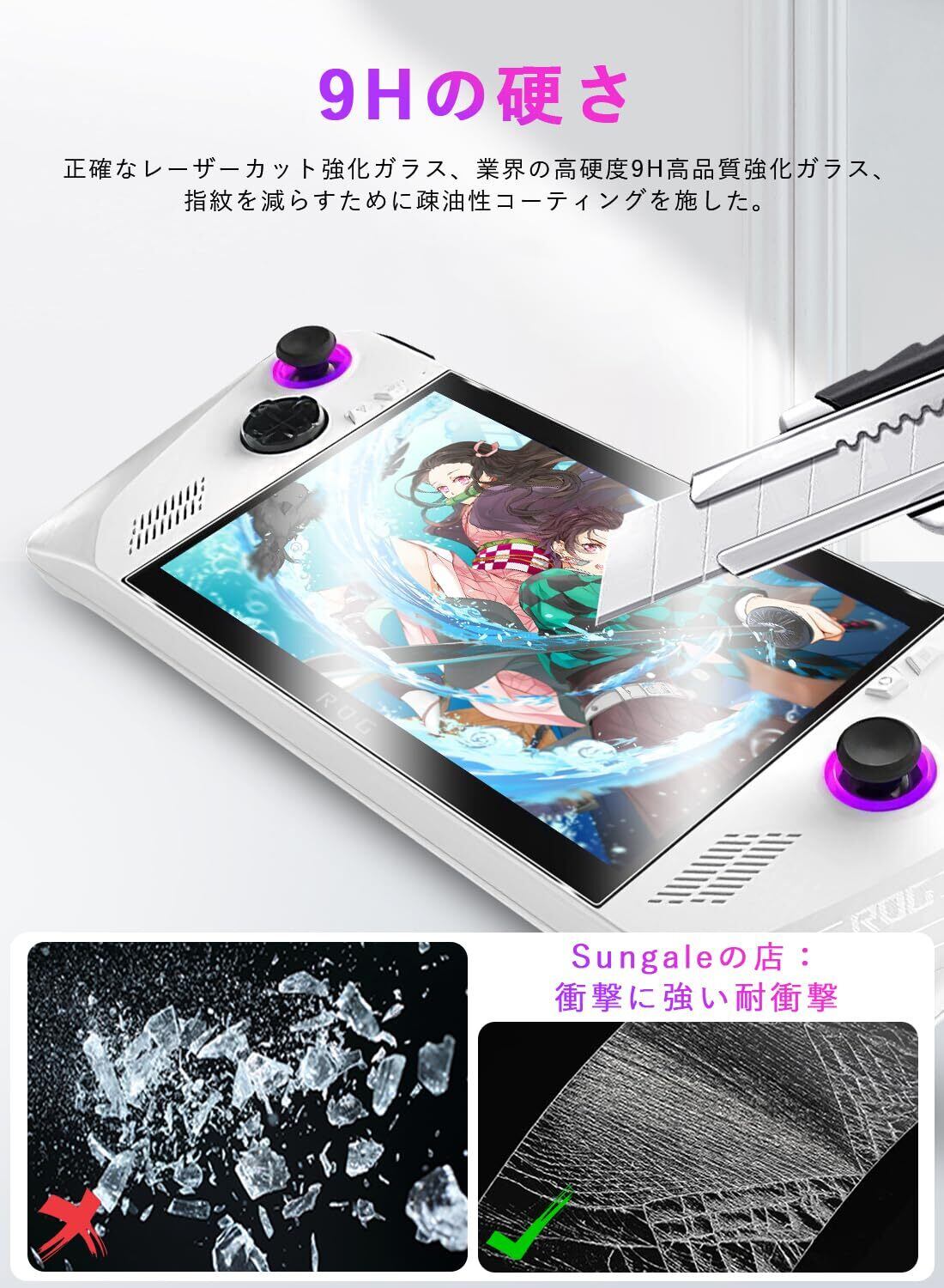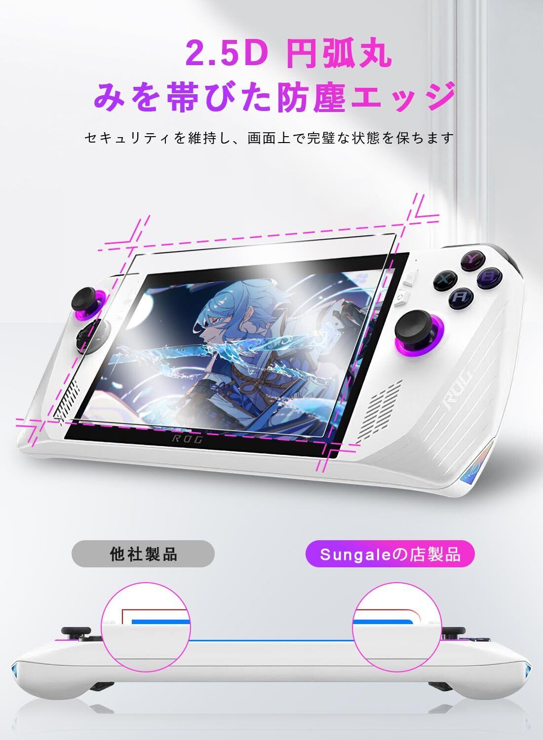 ASUS ROG Ally ガラスフィルム 用 Sungale 2枚入り 新型ASUS ROG Ally 画面 保護フィルム 簡単に貼れた(中央を揃える) 硝子素材 9H 硬度 2.5Dラウンドエッジ加工 画面保護フィルム 全面保護 指紋防止 気泡ゼロ for -ASUS ROG Ally(2023)