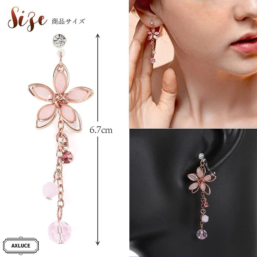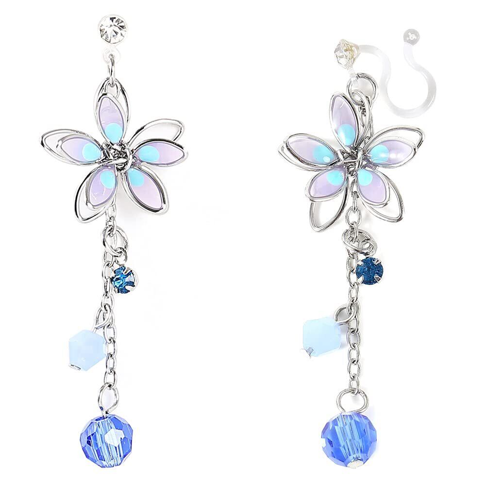 [AXLUCE] イヤリング レディース 花 揺れる 樹脂 フェイクピアス ピアス風 ノンホールピアス
