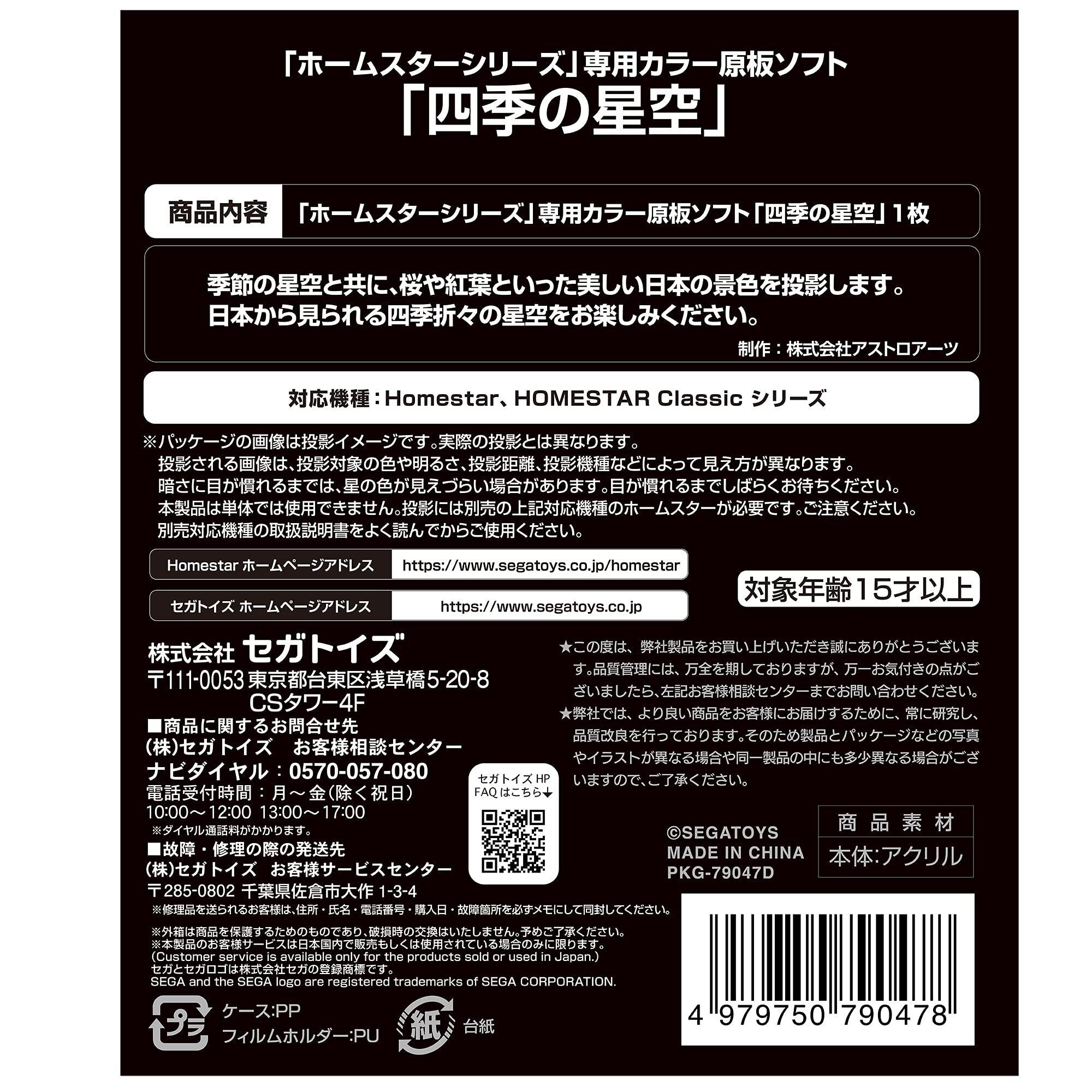 セガフェイブ(SEGA FAVE) 家庭用プラネタリウム 『HOMESTAR(ホームスター)シリーズ』専用 カラー原板ソフト 「四季の星空」 制作:大平貴之 PKG-79047D