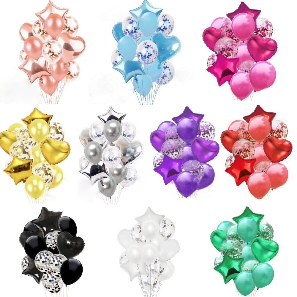 【セット内容】4種類ミックス:18寸 ハート アルミバルーン 2個、18寸 星 アルミバルーン 2個、12寸 紙吹雪入り風船 5個、12寸 風船 5個、紐 1巻