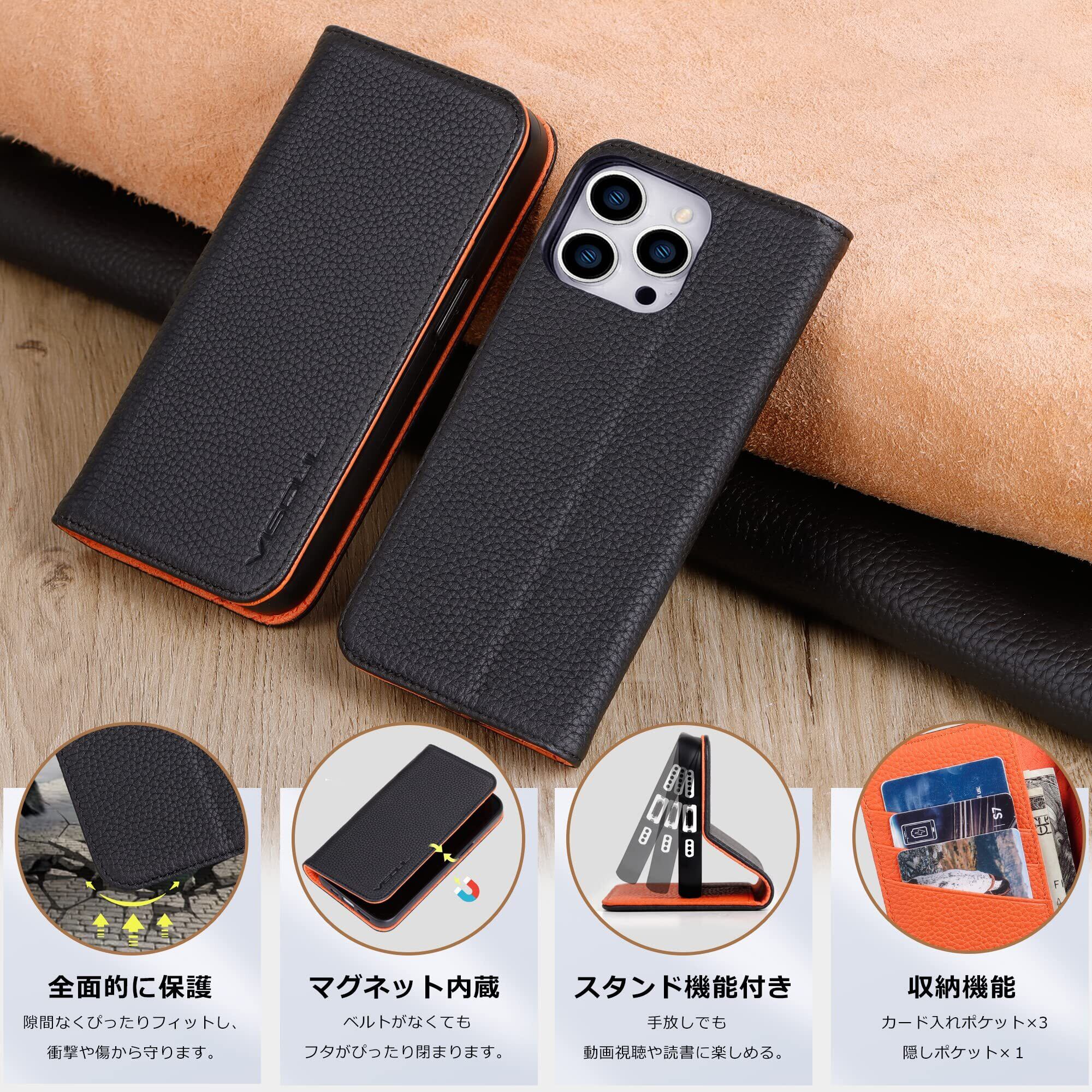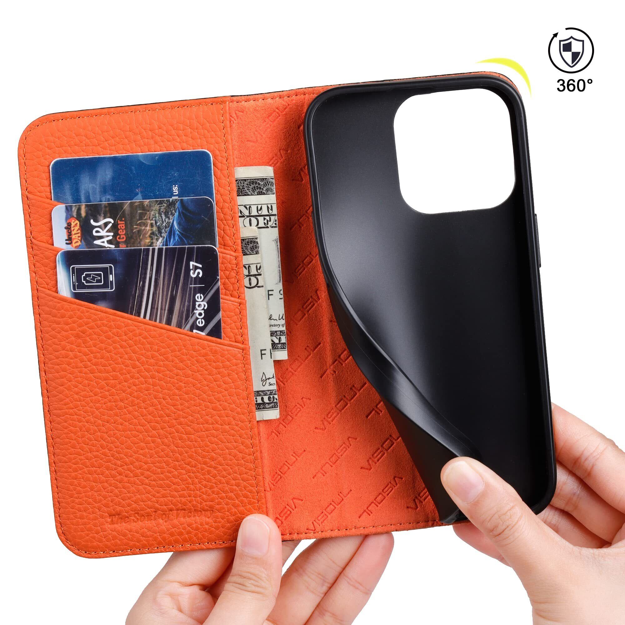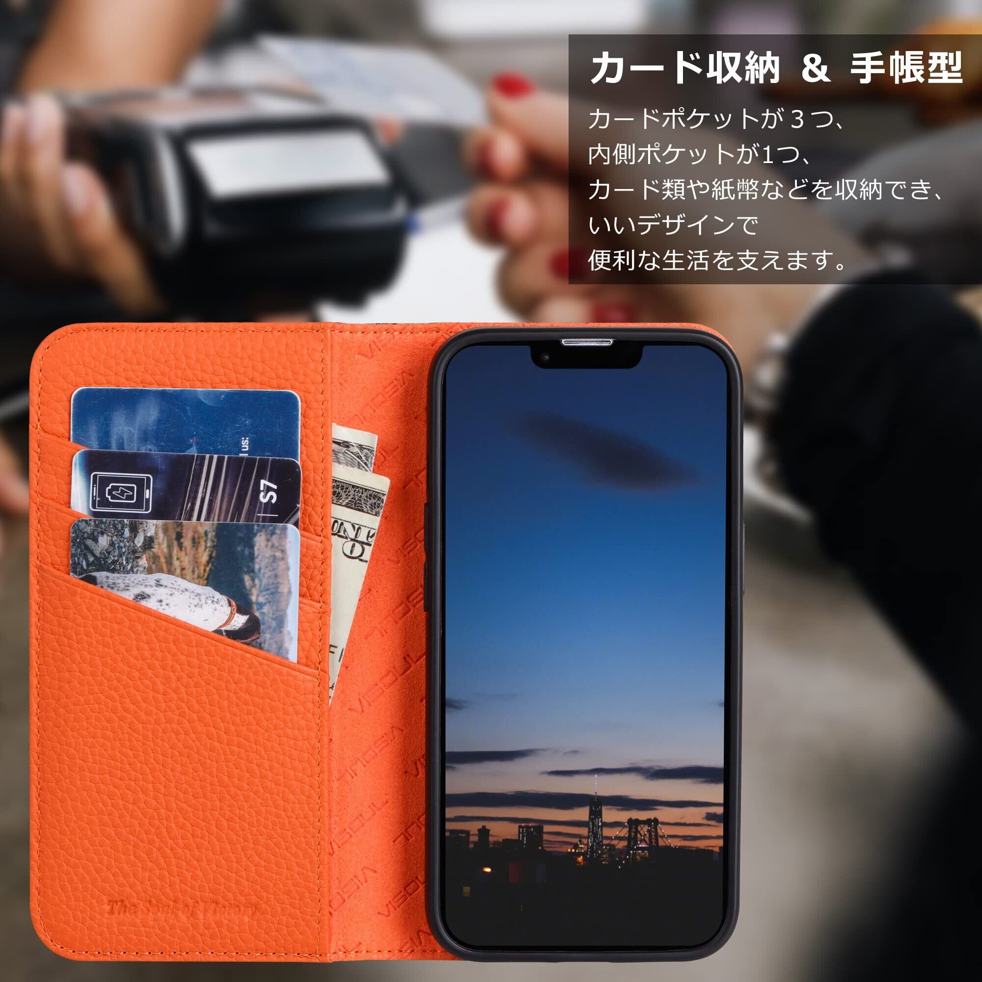 VISOUL iphone14 Pro ケース 手帳型 本革 スマホケース レザーケース 手帳型ケース アイフォン14 Pro ケース カード収納 携帯ケース 全面保護 マグネット 柔軟なTPU素材 マグネット式 スタンド機能付き スマホケース アイホン14 Pro iphone 14 Pro 対応 6.1インチ アイホン 14 Pro オレンジ