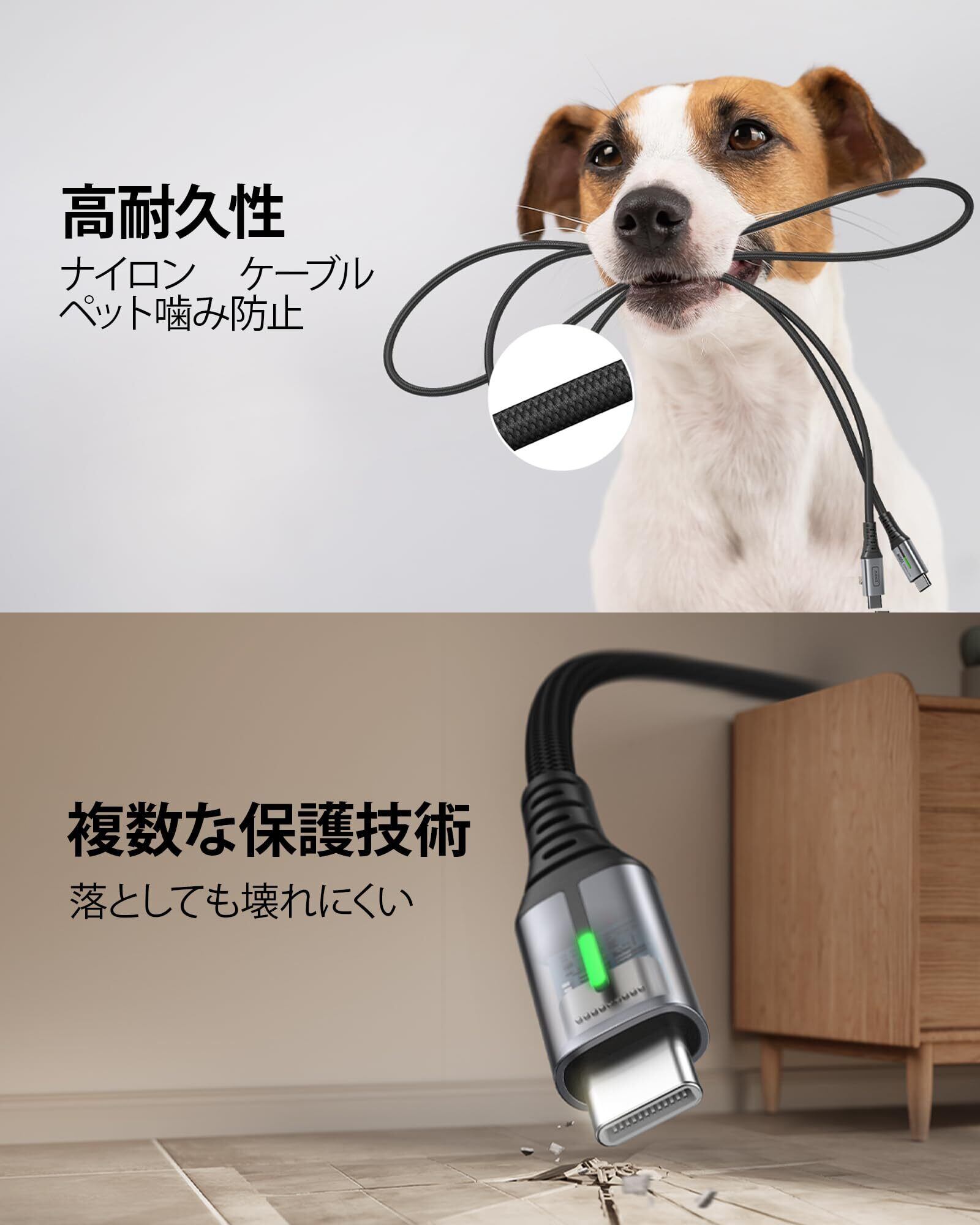 【パッケージ内容】2m USB-C to USB-Cケーブル×2、ケーブルストラップ×2、ユーザーマニュアル(日本語付き)×1、30日間の返金保証、3年間の品質保証及びライフタイムテクニカルサポート。