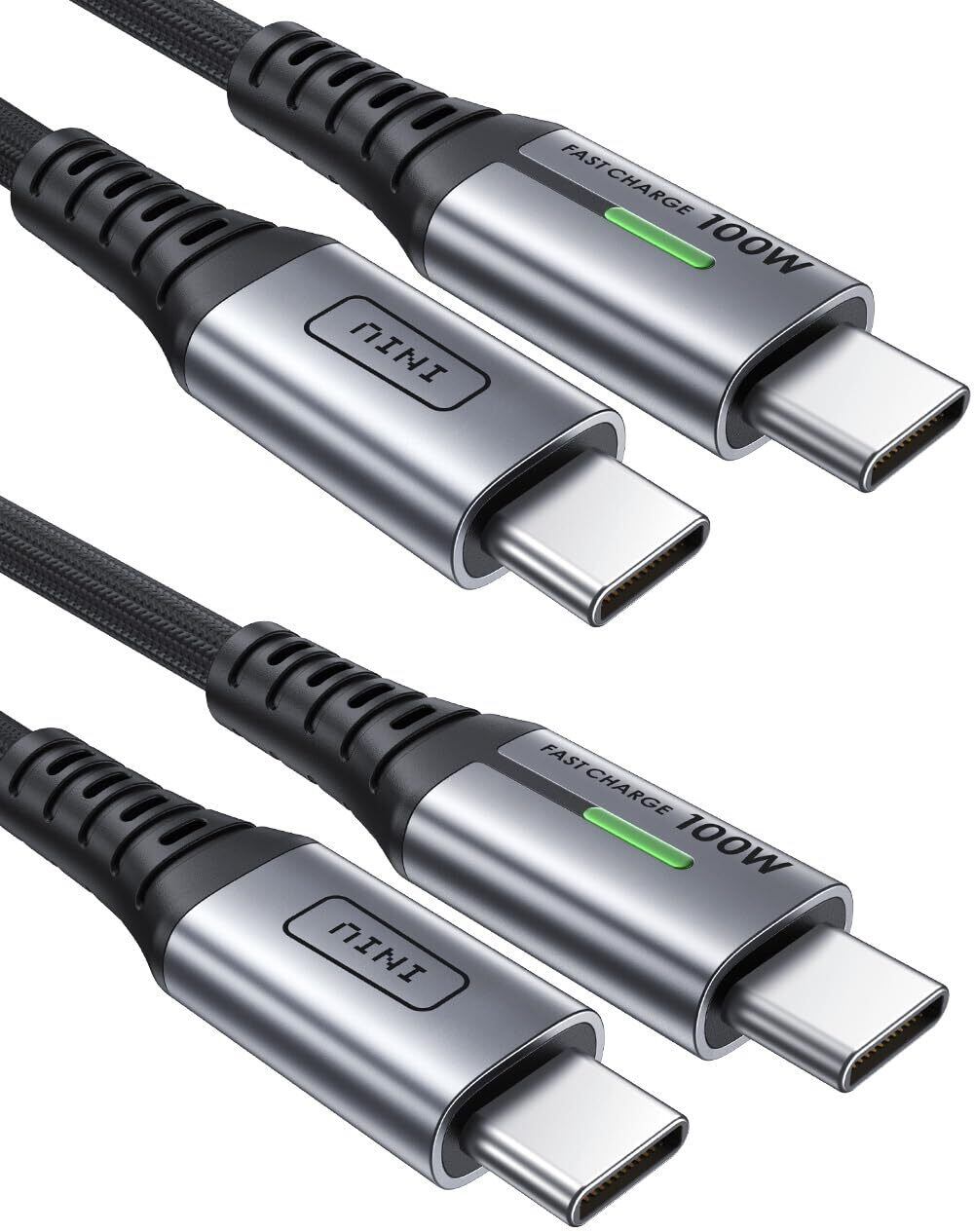 INIU USB C ケーブル (2本セット 2m) 100W 5A PD QC4.0 急速充電 高速データ転送 高耐久ナイロン編み Type C to Type C USBケーブル タイプC 充電ケーブル iPhone 16 15 Samsung Galaxy MacBook Airpods iPad Xiaomi OPPO Sony Xperia Google Pixel等Type-C機種対応