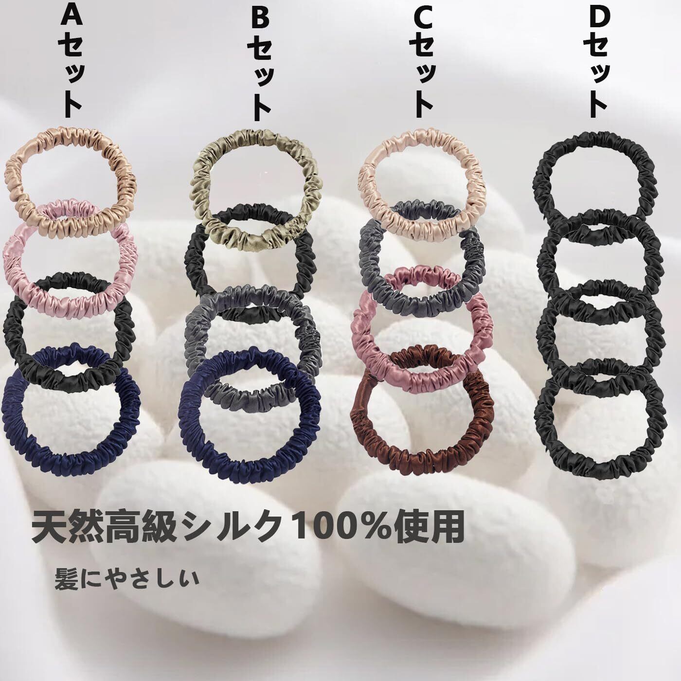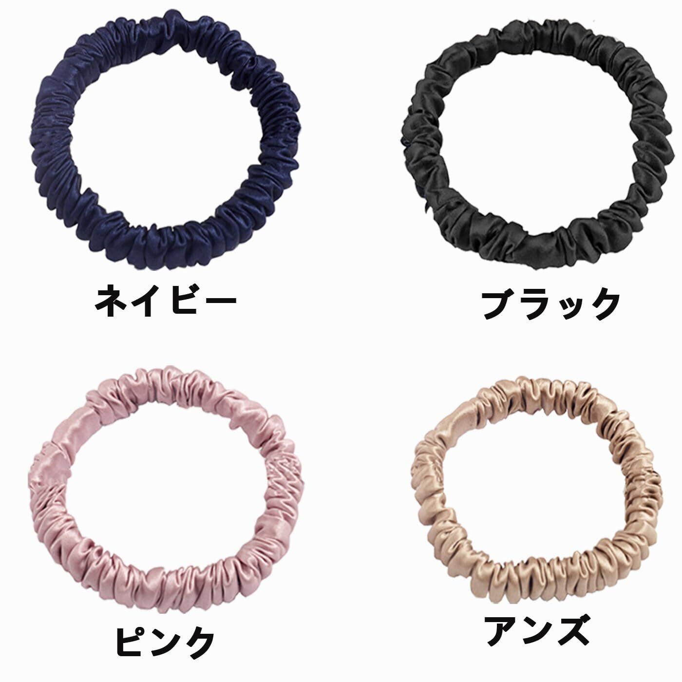 シルク ヘアゴム,BetterJonny 天然シルク100% 19匁 髪ゴム シルクゴム シュシュ 跡がつかない おしゃれ 大人 4個セット(アソートA)