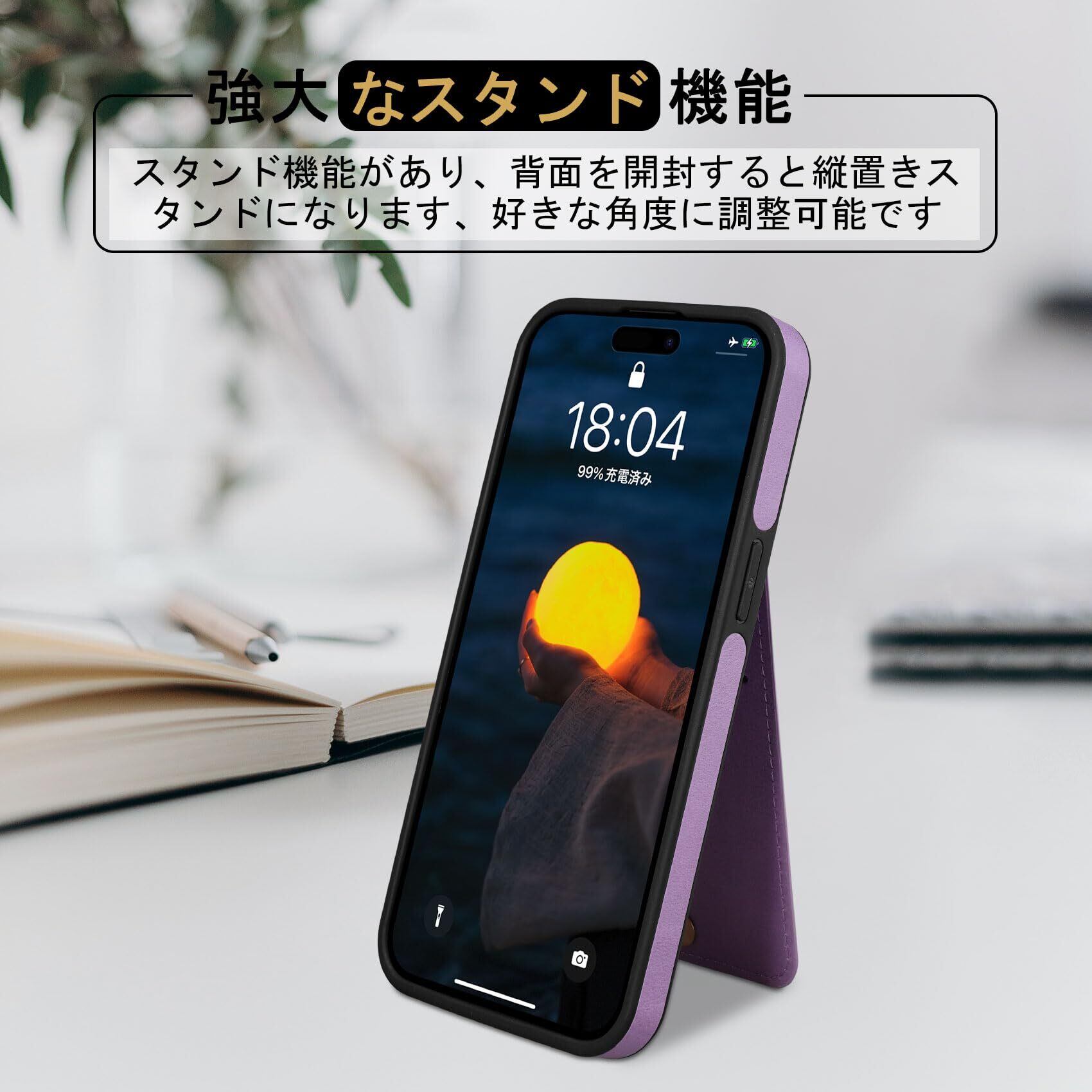 【多機能】❶収納機能:背面には4つのカード収納ポケットがあり、カード、名刺、定期券、免許証、写真などを収納できます。これにより、物を散らかすことなく、必要なアイテムを一括管理し、手軽に持ち運ぶことができます。マグネット式の開閉はしっかりとしており、収納物が落ちる心配もありません。このマグネット式の縦型開閉デザインのiPhone 15 Pro Max 用 ケースは、シンプルかつ便利で、コンパクトで美しい仕上がりです。❷スタンド機能:縦置きスタンド機能があり、背面を開けると縦置きできます。お客様はこの機能を利用して、ビデオ通話や動画再生、レシピ閲覧などのハンズフリー操作が可能です。画面の角度を微調整できるため、視聴姿勢に合わせて調節することも可能です。