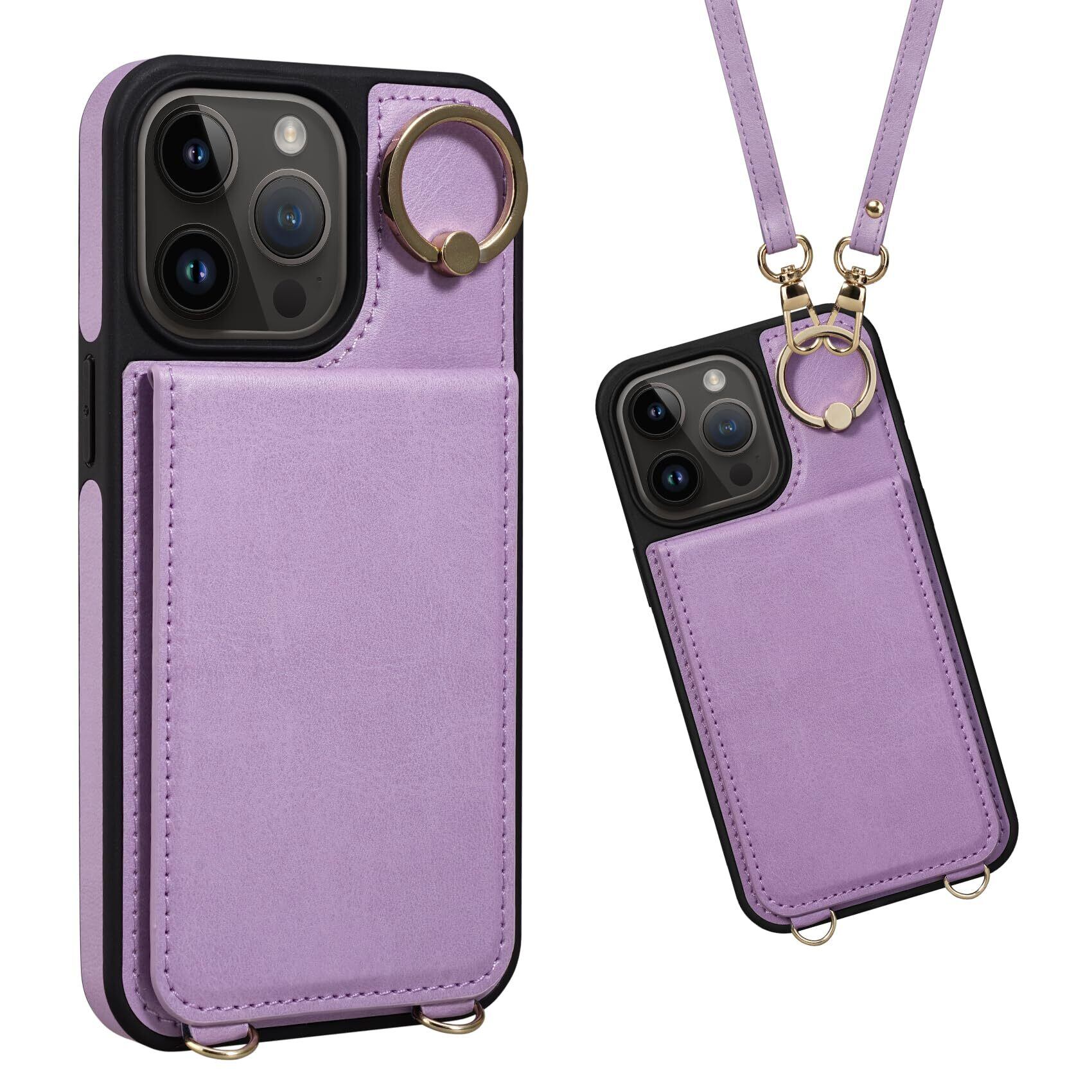 Shlybaay iPhone 15 Pro Max (iPhone 15 プロ マックス) 用 手帳型背面ケース カード収納&ストラップ付き 肩掛け 斜め掛け PUレザー マグネット対応 スタンド機能 可愛い 6.7インチ パープル