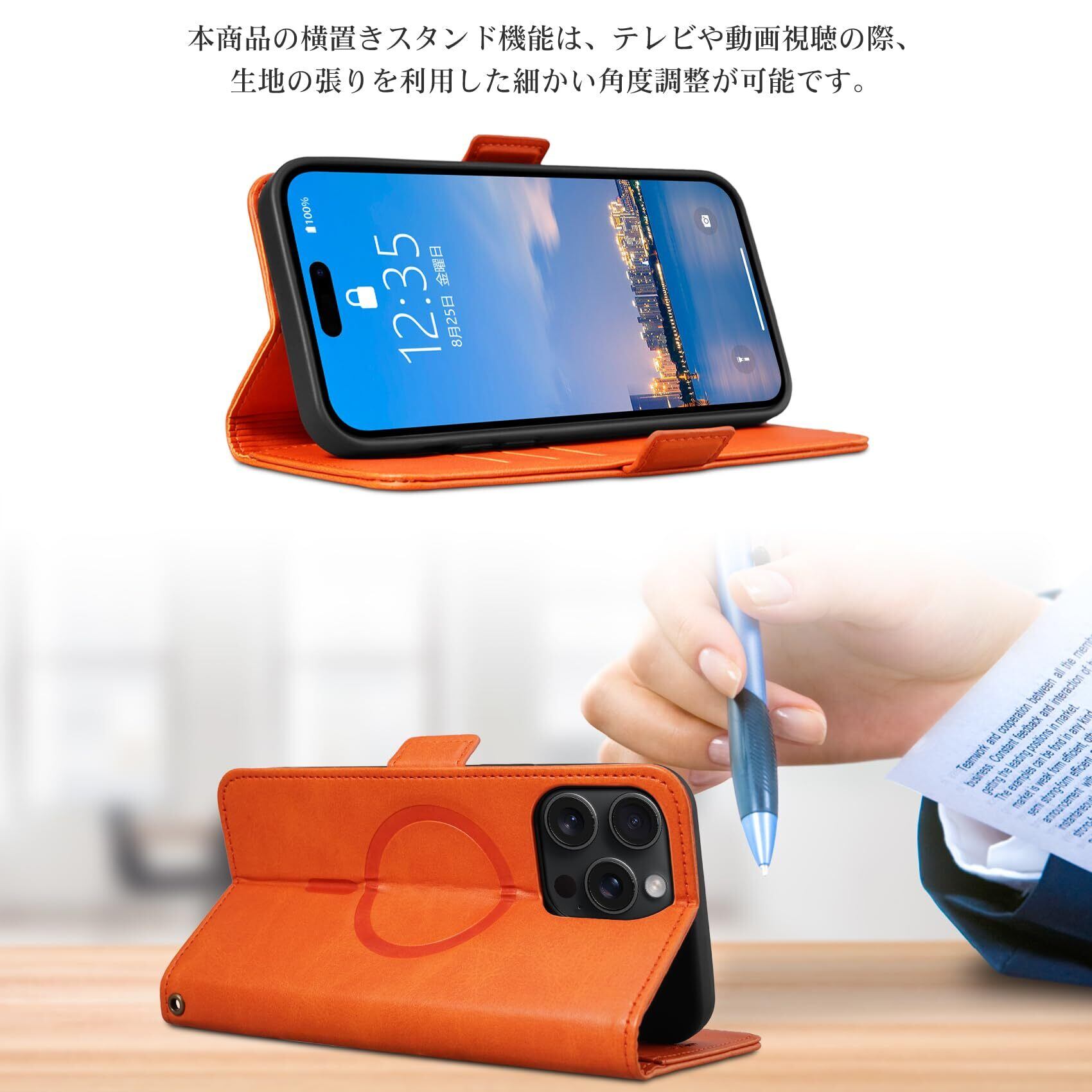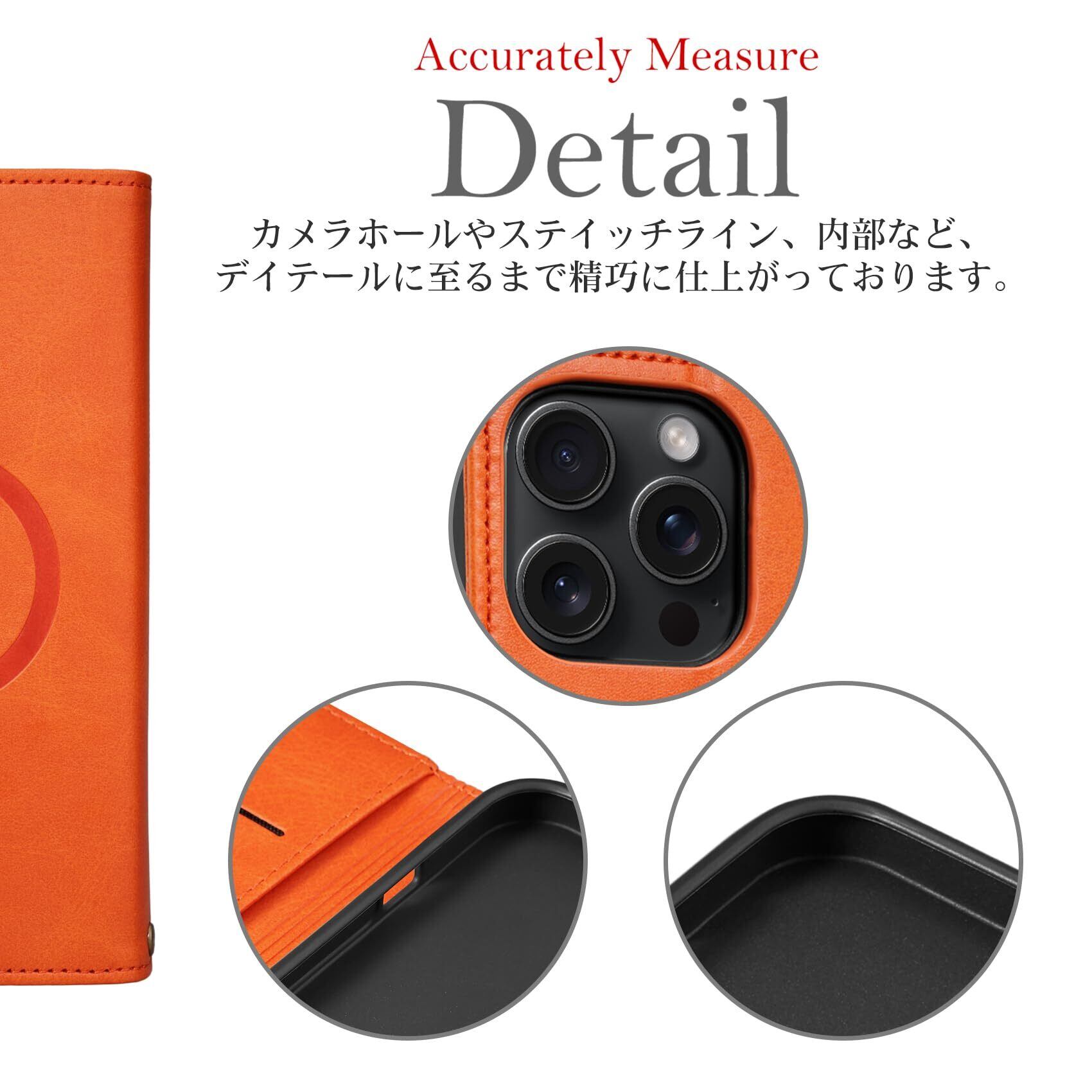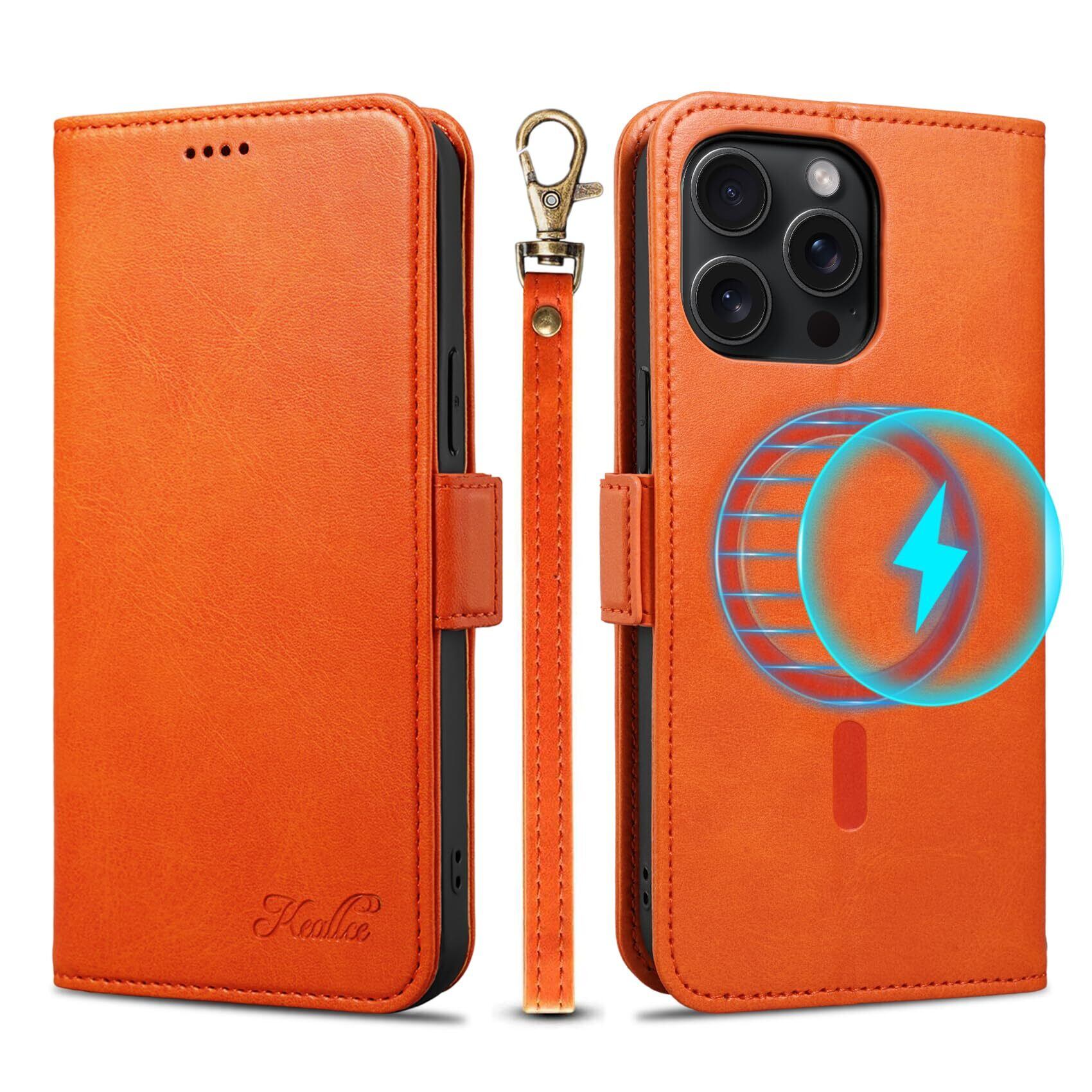 【Keallce】 いphone15pro max ケース 手帳型 MagSafe iPhone 15 pro max 手帳型 ケース アイフォン15promax スマホカバー スマホケース iPhone15promax カバー ストラップ スタンド機能 マグセーフ対応 ワイヤレス充電 カード収納 贈り物 全面保護 MagSafe対応 iPhone 15 pro max 6.7inch オレンジ