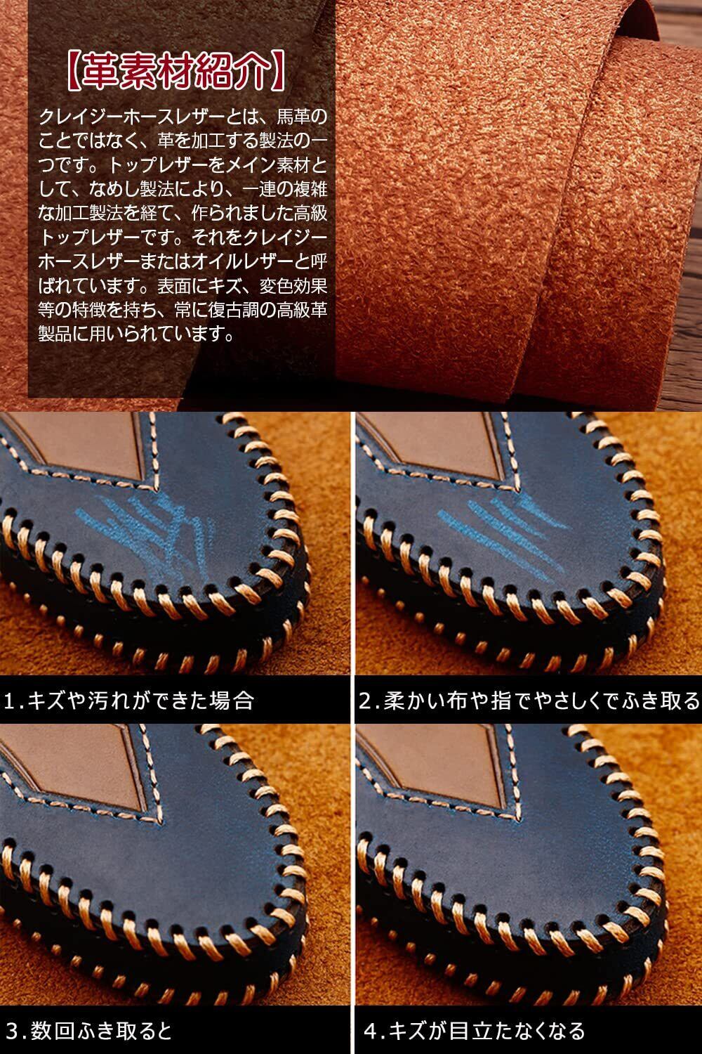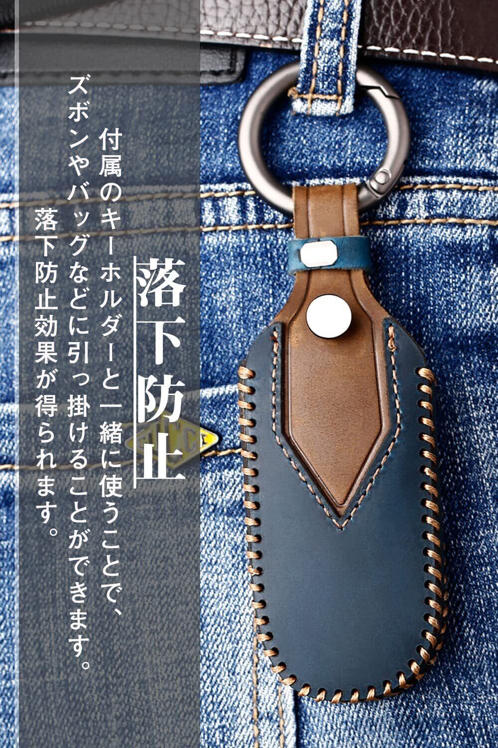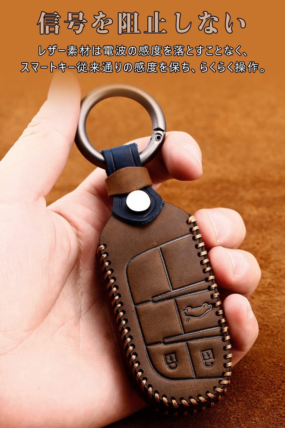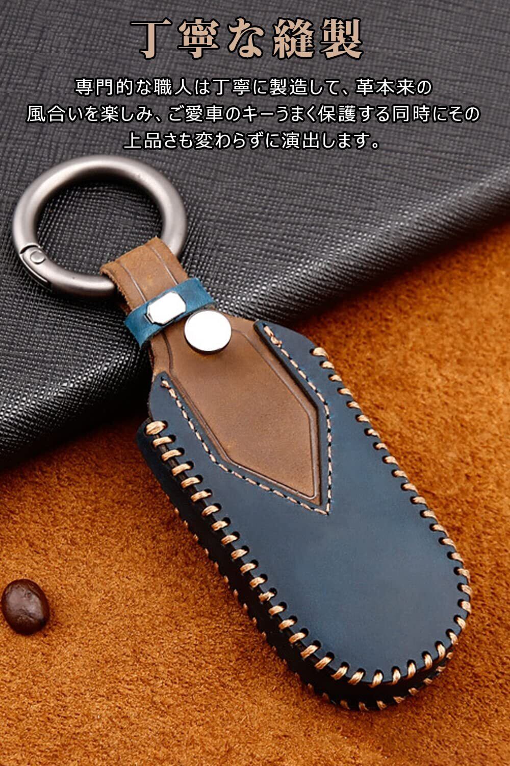 [LETINGFAR] キーケース ジープ 用 スマートキーケース キーカバー 本革 レザー 手触りいい 3ボタン ジープ専用設計 キーホルダー Jeep チェロキー/グランドチェロキー/レネゲード/コンパス等に適用キーケース(ブルー)
