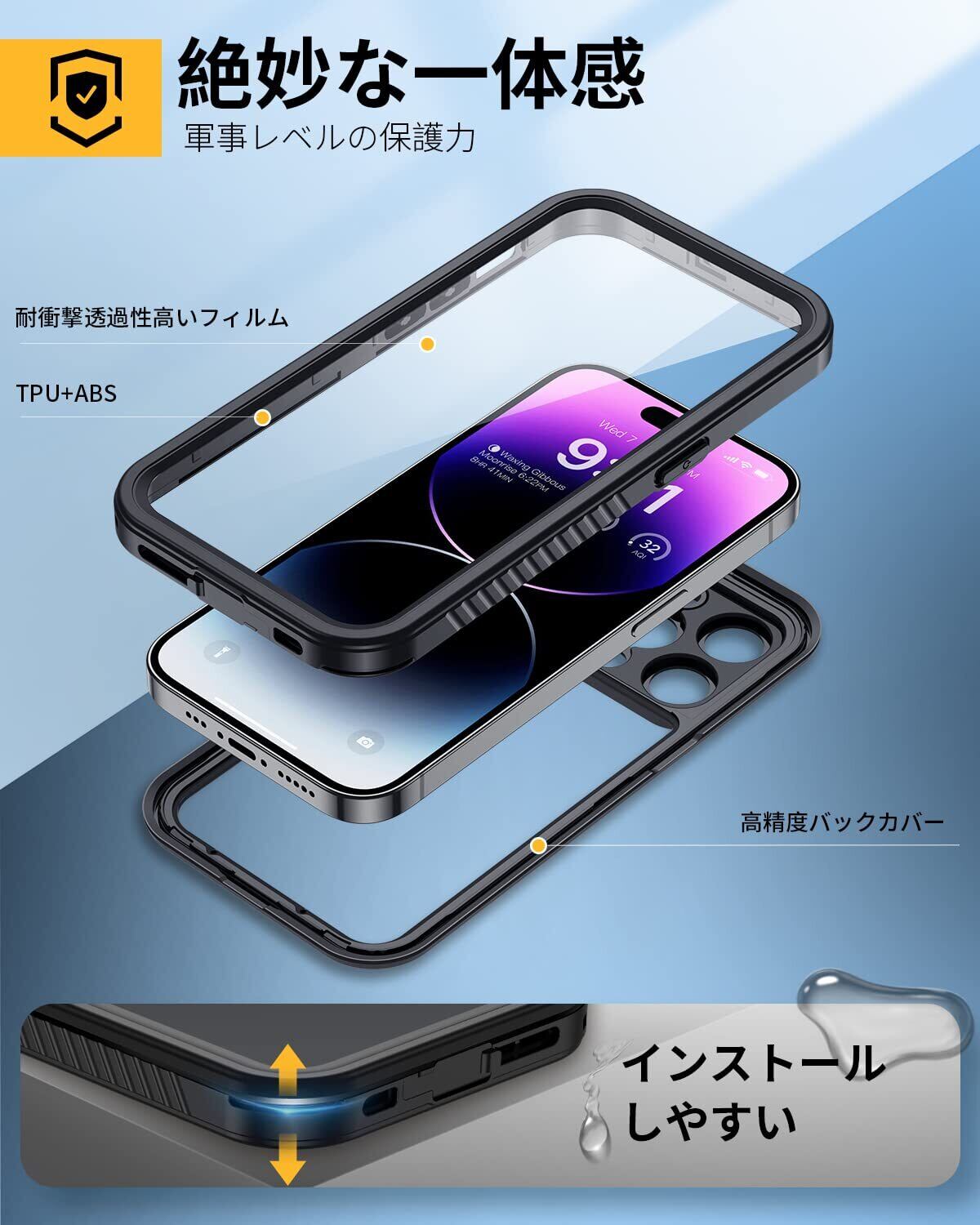 【IP68防水&多保護】防水国際保護等級IP68認定を獲得水没しても内部への水の侵入を完全にガードできます。 雨や、雪、泥や砂などから保護できます!ご注意:ご使用の前に必ず携帯の代わりに一枚の紙をケースに入れて、iPhone 14 ProMax 防水ケースは最大水深2mで30分間の防水試験を行ってください。もし、水が浸入した場合こちらに連絡。返金&交換を対応します。