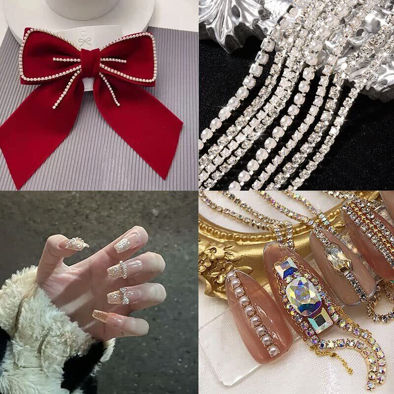 LIKENNY ネイルパーツ 25cm チェーン本 ラインストーンチェーン 裁断可能 細い シルバー アクセサリー 工芸品 ネイルアート DIY素材 ファッション オーナメント ネイルデザイン 2個 (パール)