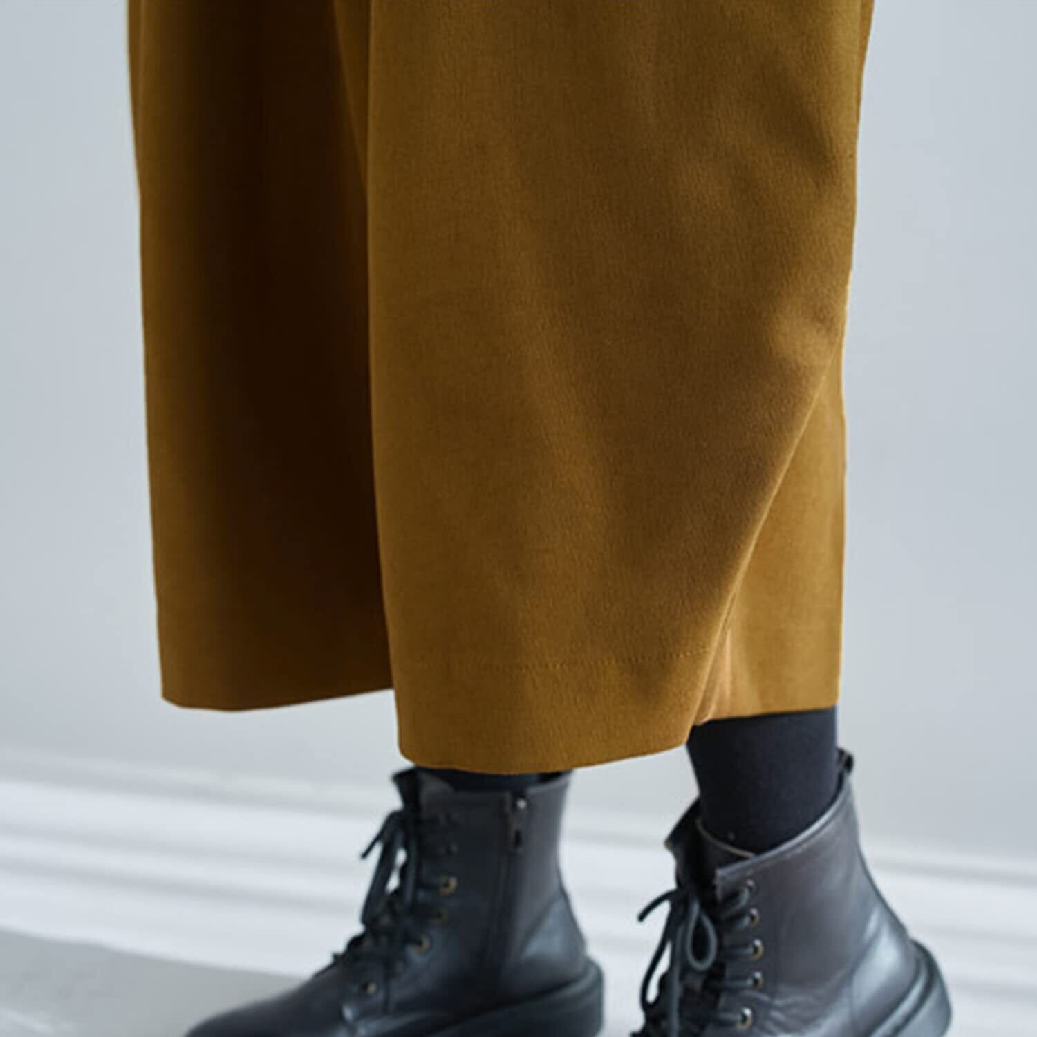 年中使える生地感がうれしい、ころんとまあるいシルエットがかわいいパンツです。癖になる肌触りの良さなので、春夏秋はそのまま素足で、冬にはタイツを穿いて愛用したくなります