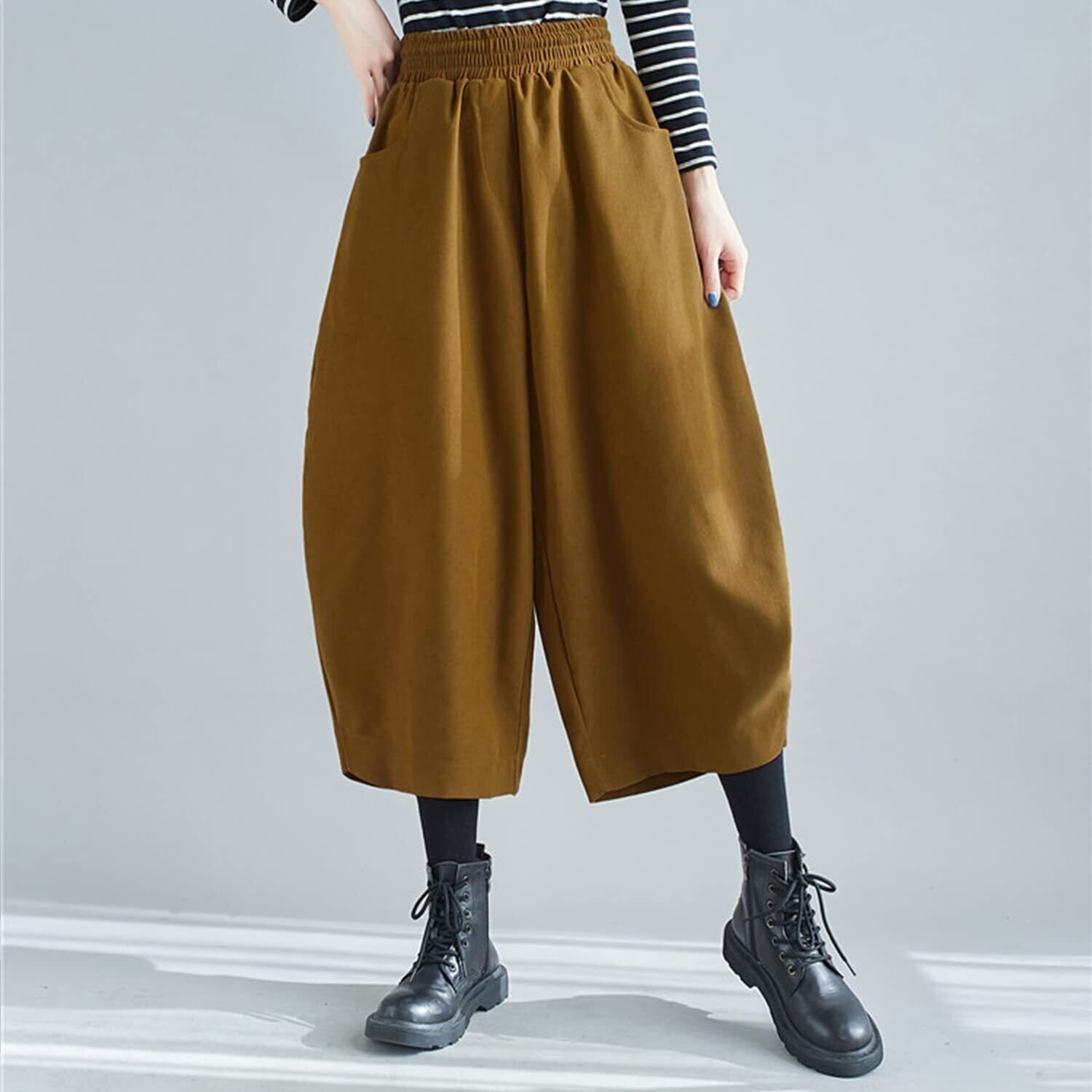 [SISOFTLY] パンツ レディース 春秋冬 ワイドパンツ レディース パンツ ゆったり 秋冬 ガウチョパンツ ロングパンツ 春秋冬 アンクルパンツ カジュアルバルーンパンツ 無地 ウエストゴム シンプル 可愛い ゆったり