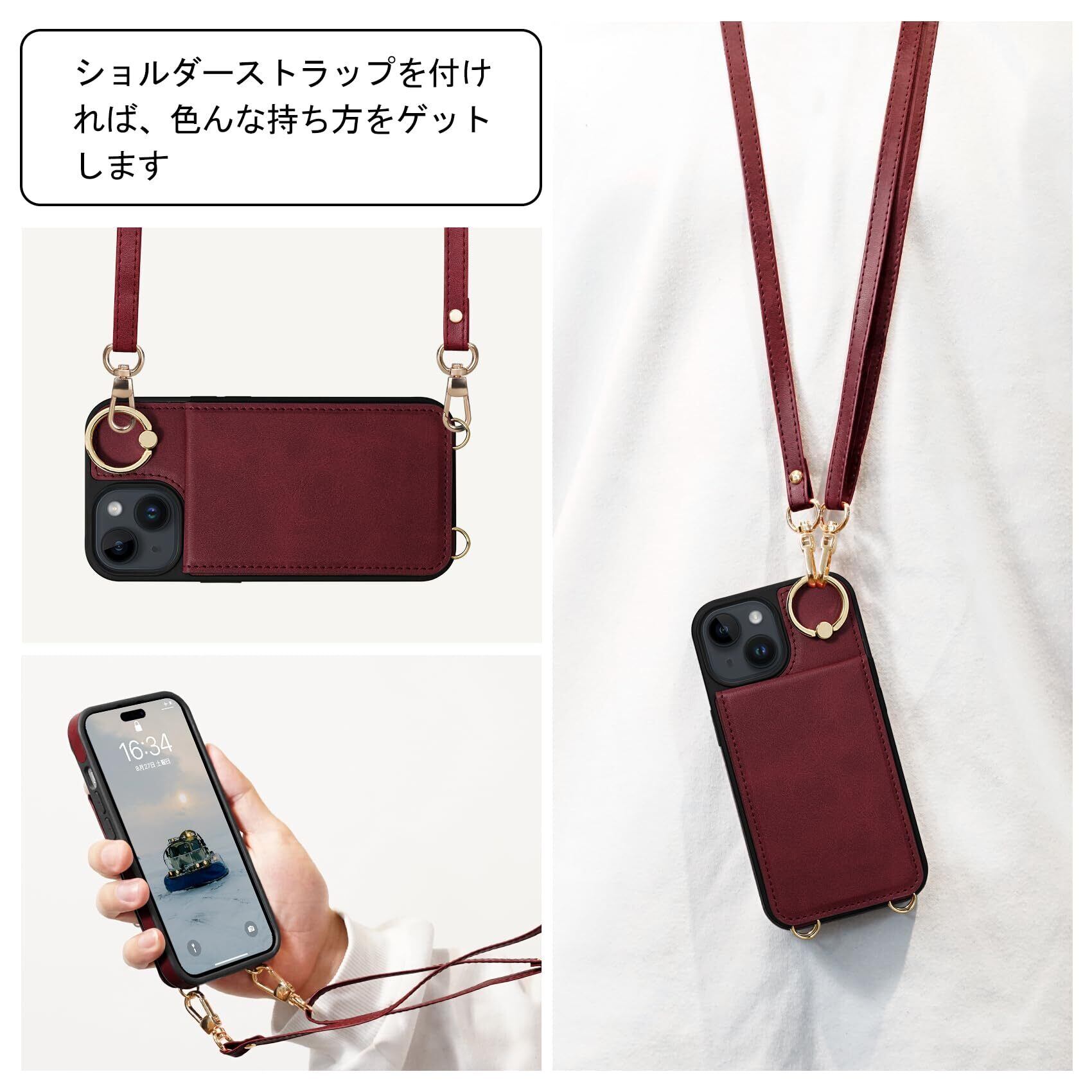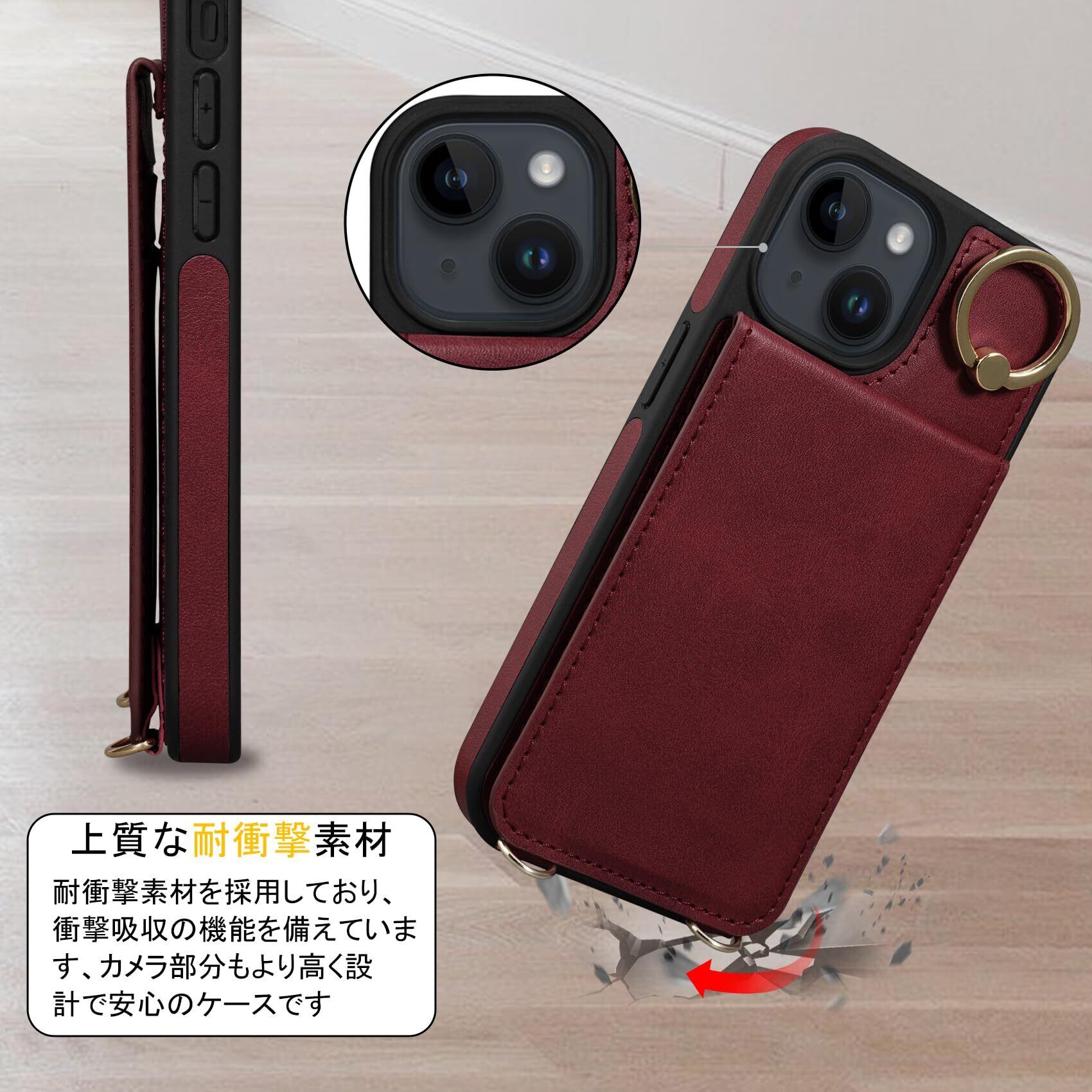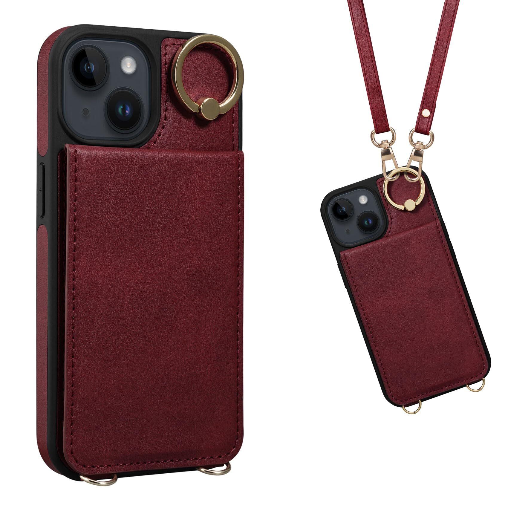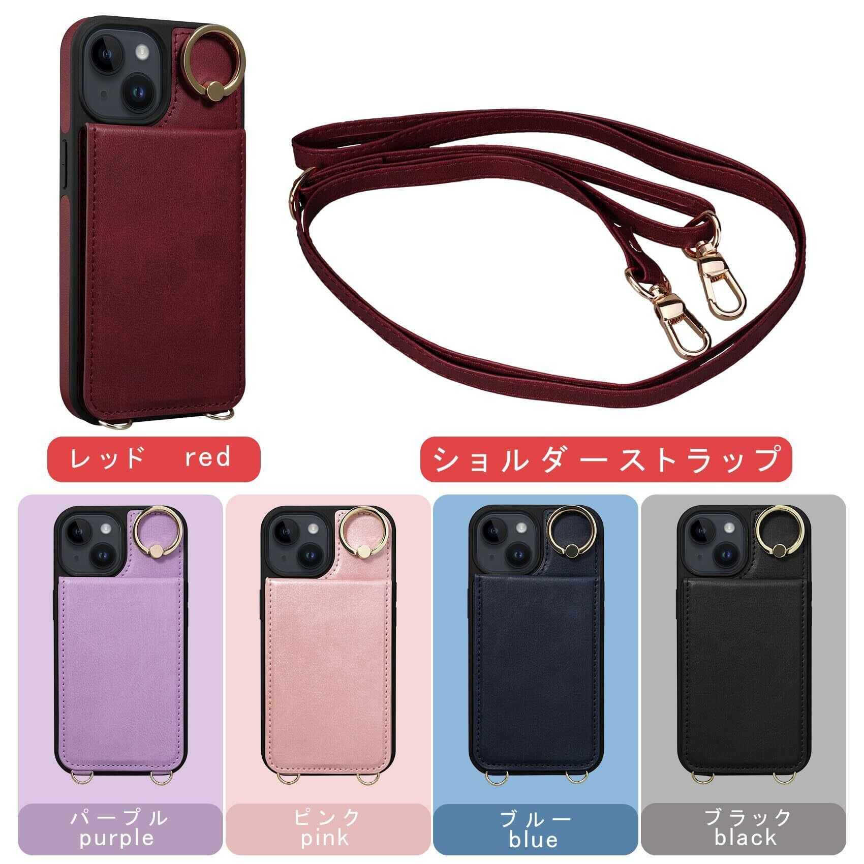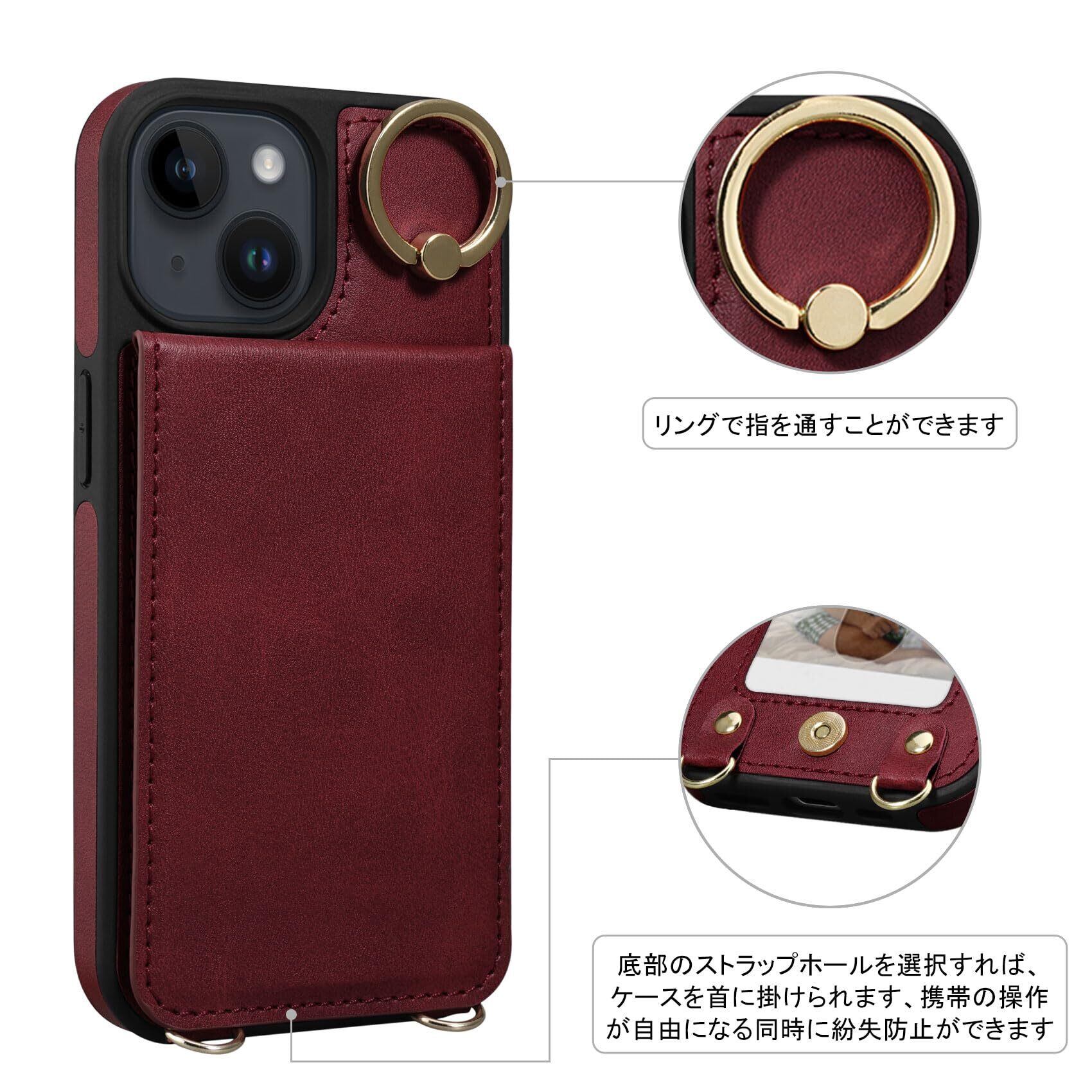 Shlybaay iPhone15 ケース 背面 手帳型 カードケース 手帳型ケース iPhone 15 スマホケース ショルダー ストラップ 背面ケース 肩掛け カード収納 斜め掛け スタンド PUレザー マグネット アイホン あいほん 15 ケース 可愛い 人気 おしゃれ アイフォン あいふぉん 15 財布型 首掛け 6.1inch対応 レッド