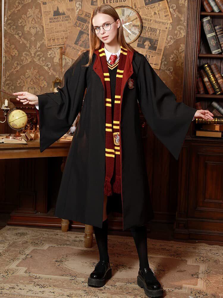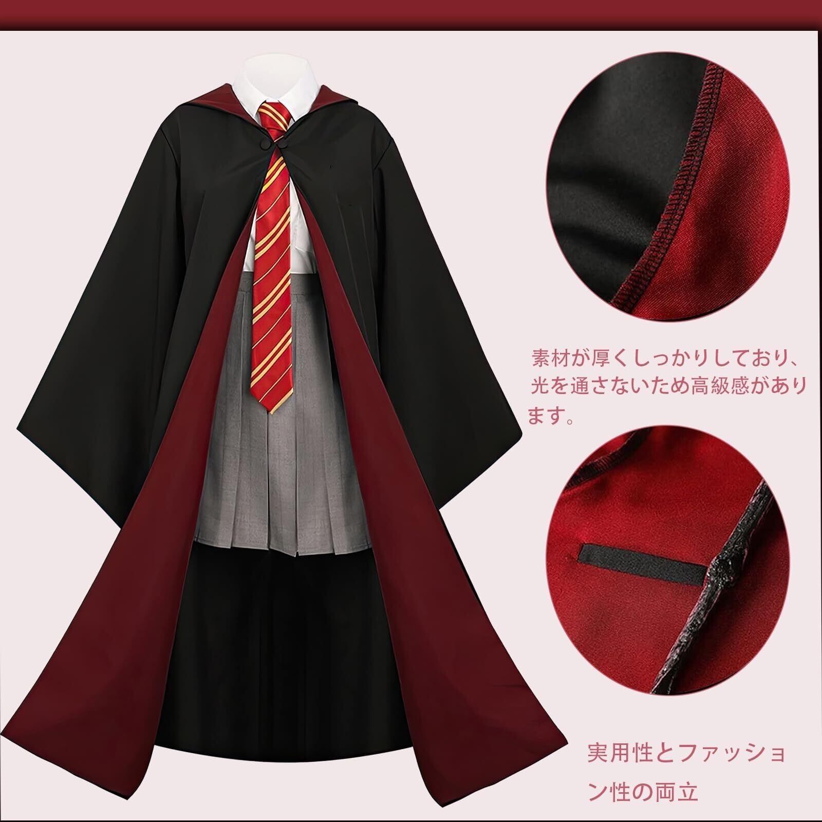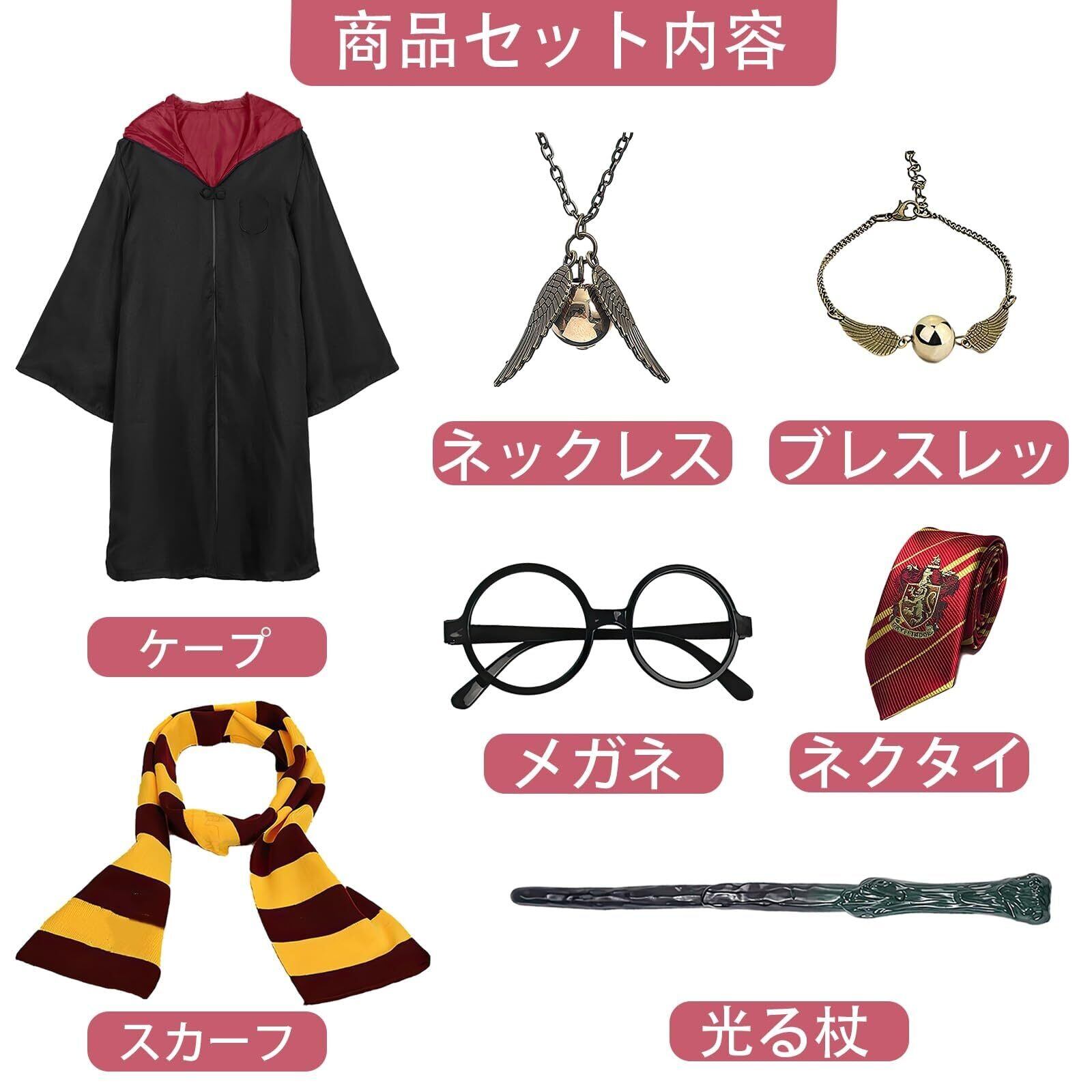 [Yi-gog] ハロウィン グリフィンドール コンプリート ハリーポッター コスプレ 衣装5点セット 7つサイズ コスプレ コスチューム(ローブ + 眼鏡 + ネクタイ + スカーフ+魔法の杖) コスチューム cosplay 男女共用