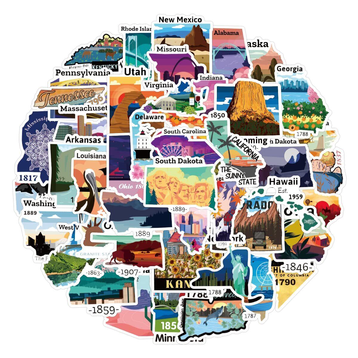 50枚アメリカ50州ステッカーセット 米国50州防水シール スーツケース バイク ヘルメットなど適用