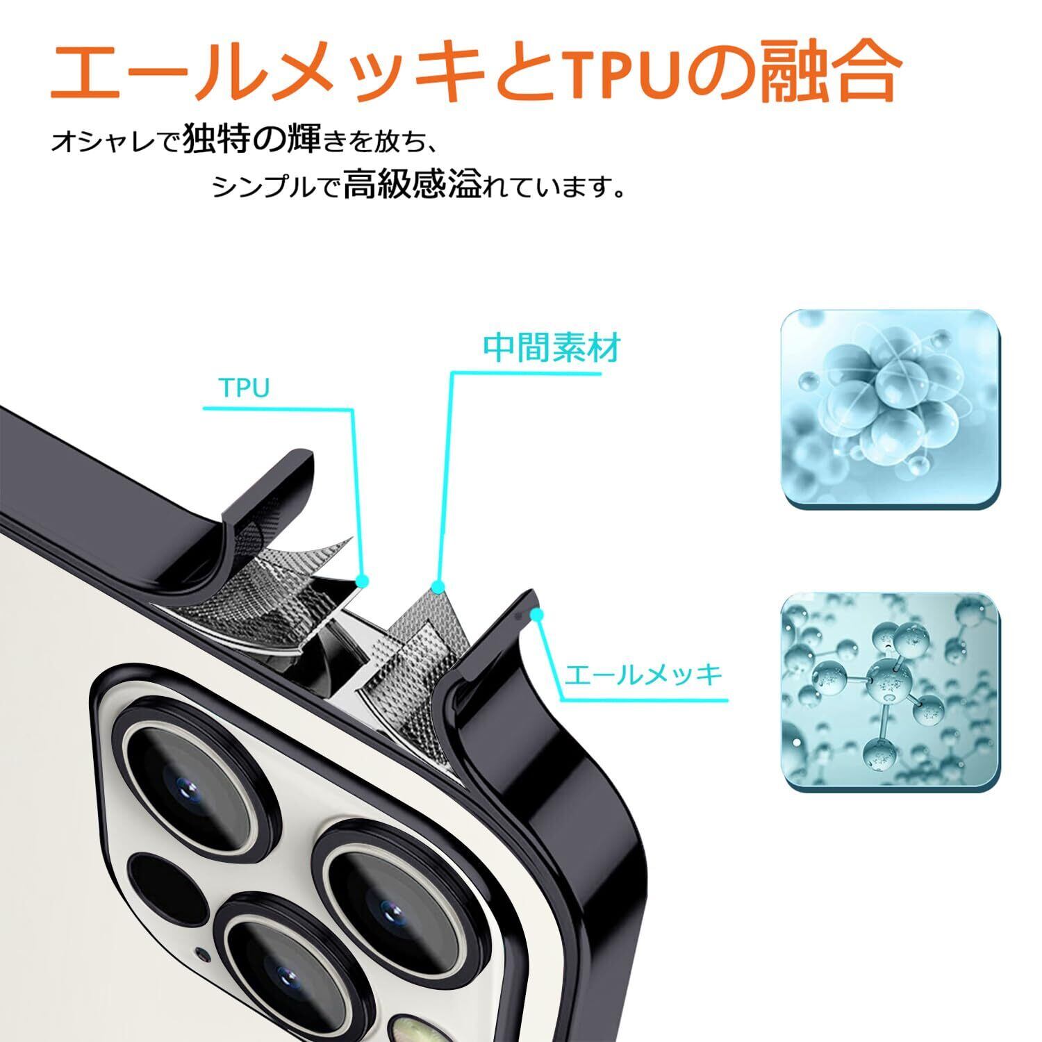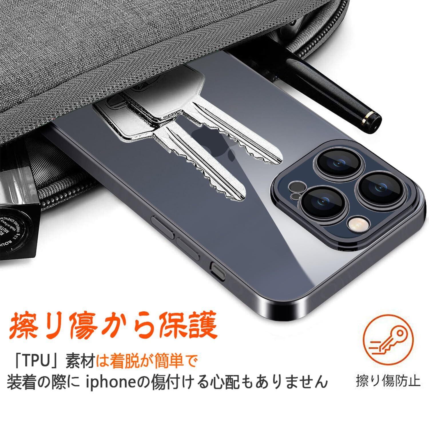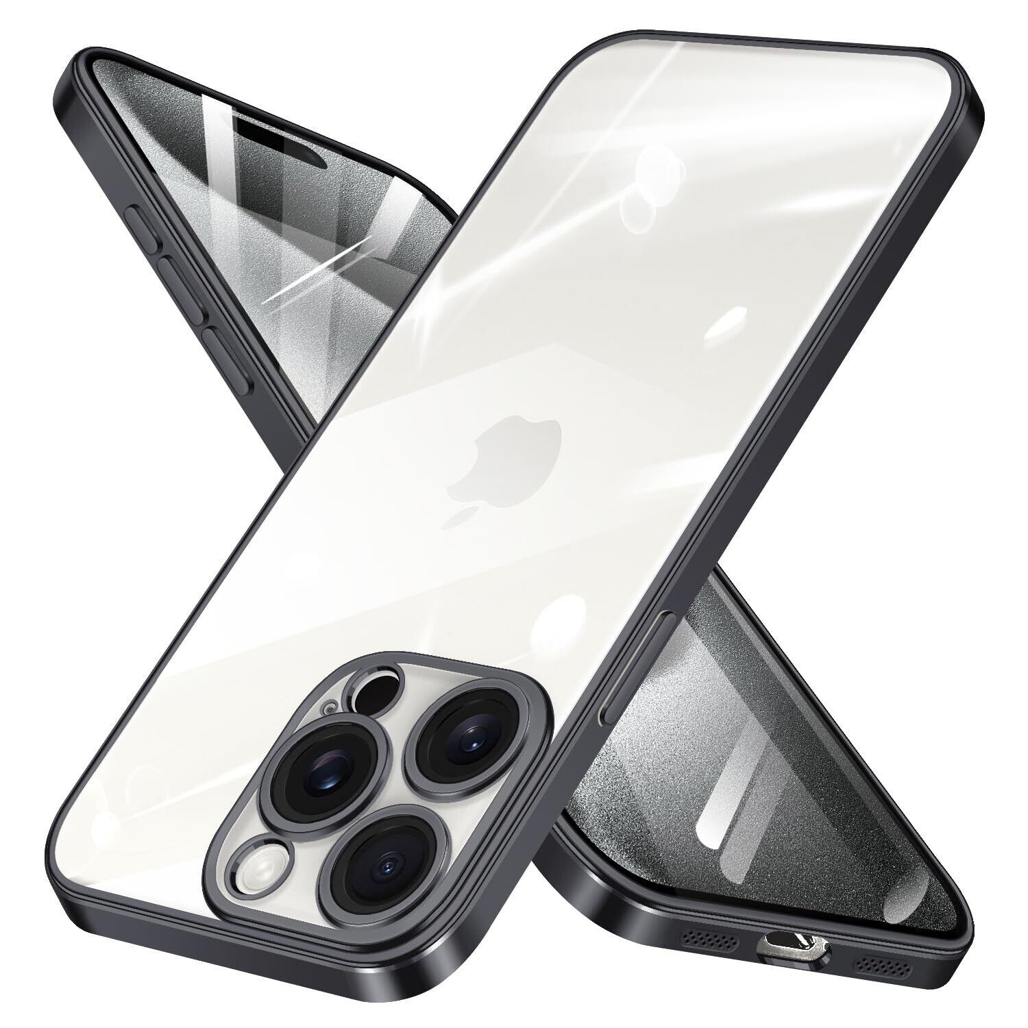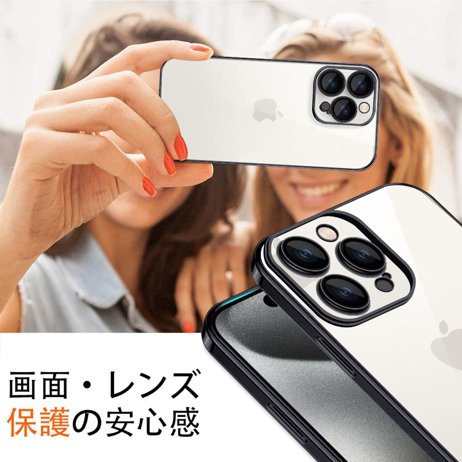 iPhone 15 Pro 用 ケース クリア 【カメラレンズ保護付き】 iphone15 pro 用 スマホケース アイフォン15pro カバー 透明 TPU 薄型 耐衝撃 スリム メッキ加工 黄変防止 ストラップホール付き ワイヤレス充電対応 アイホン 15プロ 用 携帯ケース ブラック