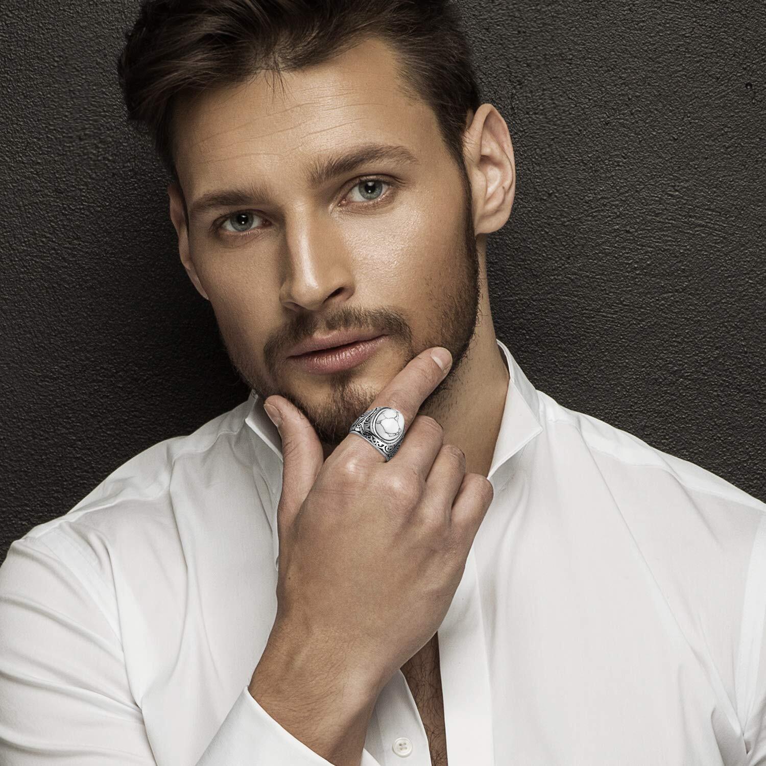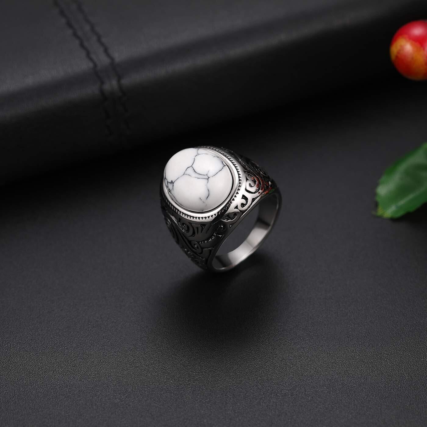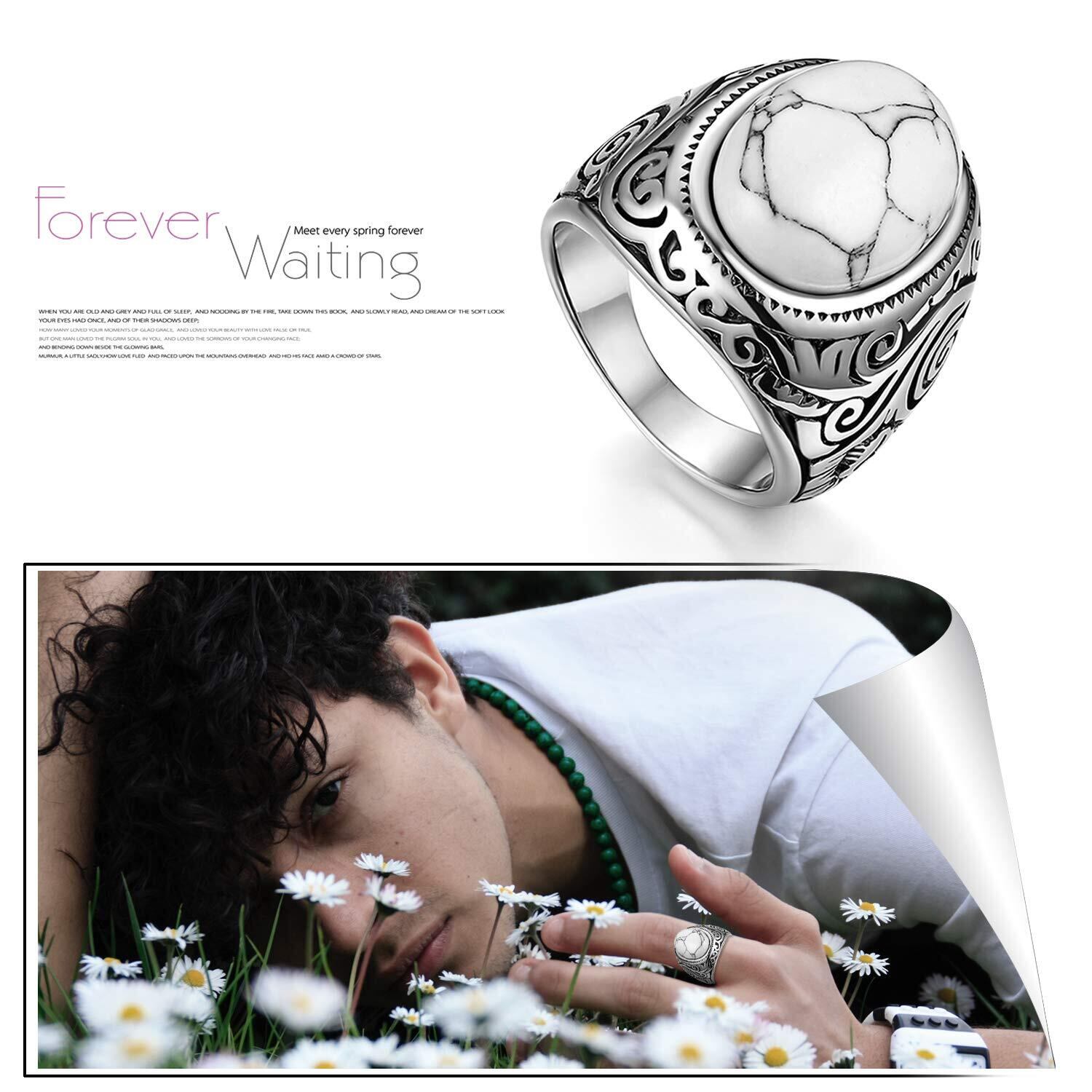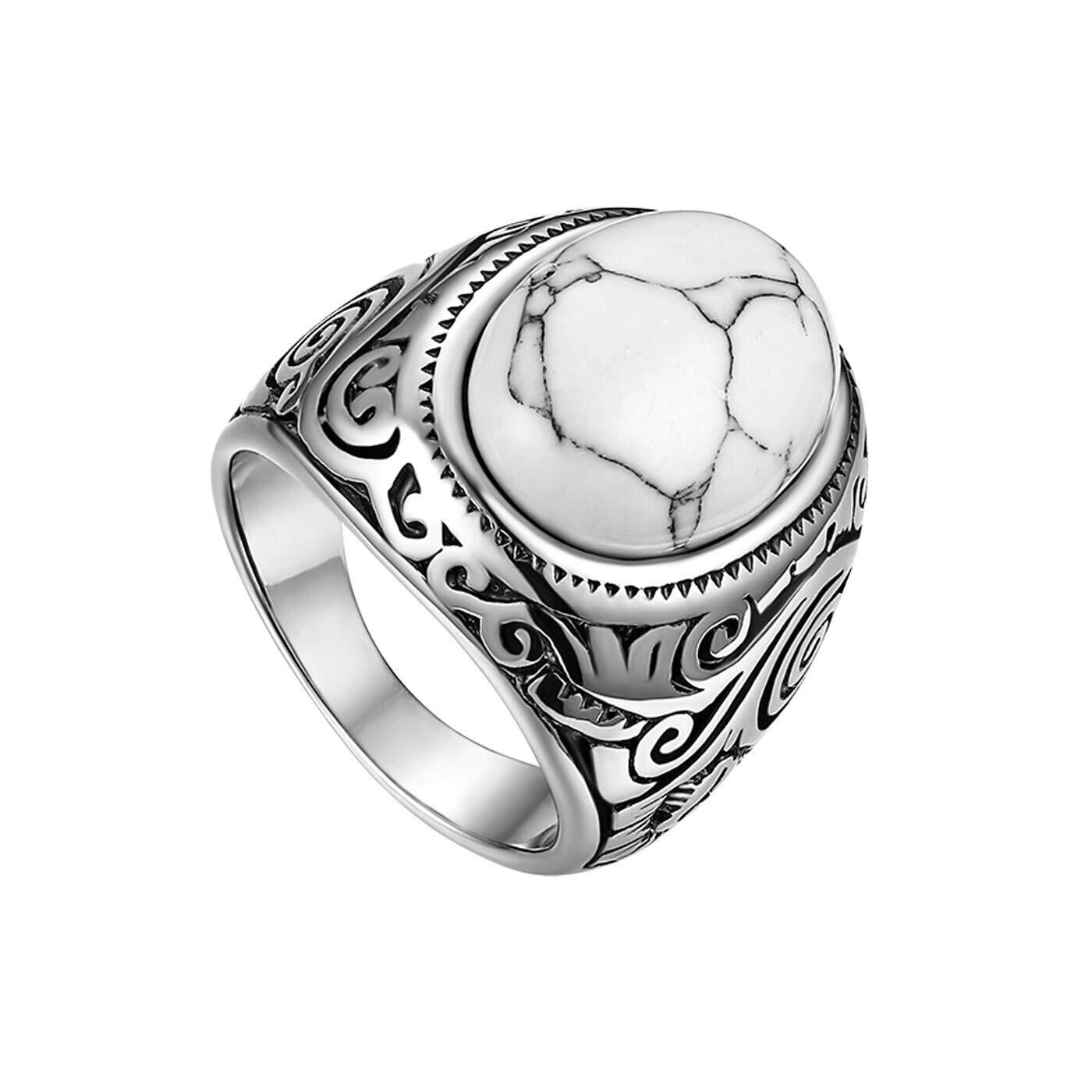 Flongo メンズリング ステンレス指輪 幅/22mm クリスタル キラキラ ファション アンティーク風 プレゼント 誕生日 記念日 クリスマス 新年 ホワイト「日本サイズ23号」