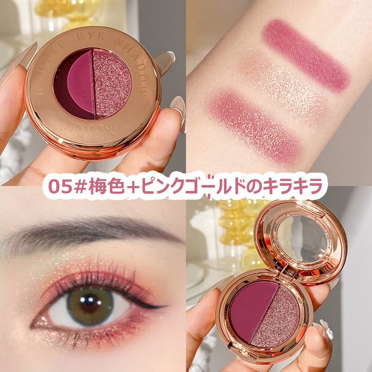 繊細なアイメイクの適用 -- このアイシャドウ、立体的な効果を生み出し、目をキュートに見せます。