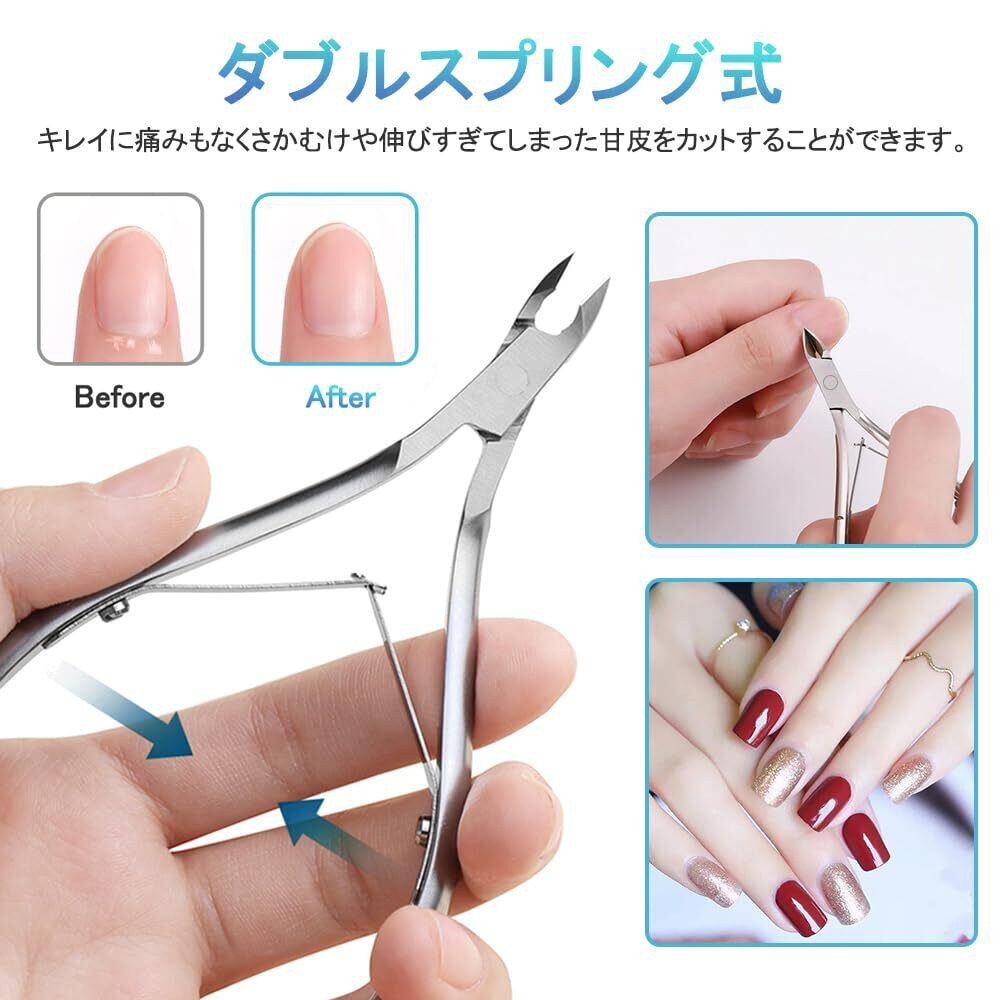 【ネイルニッパー】人間工学に基づいたデザインのハンドルは、握りやすさと使いやすさを考えて作られています。わずかな力で細かいカットが可能で、目立つ魚の目、過剰な甘皮、細かいささくれまで、簡単に整えることができます。