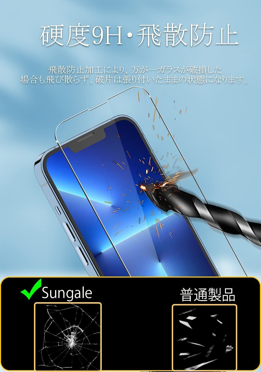 iPhone 13 Pro Max 用 ガラスフィルム (4枚セット) 強化ガラスフィルム2枚 + カメラフィルム2枚 日本旭硝子製 Sungale iphone13 pro max 用 アイフォン13プロマックス 用 保護フィルム カメラ保護 耐衝撃 飛散防止 ラウンドエッジ加工 iPhone13promax 対応 フィルム (6.7インチ)
