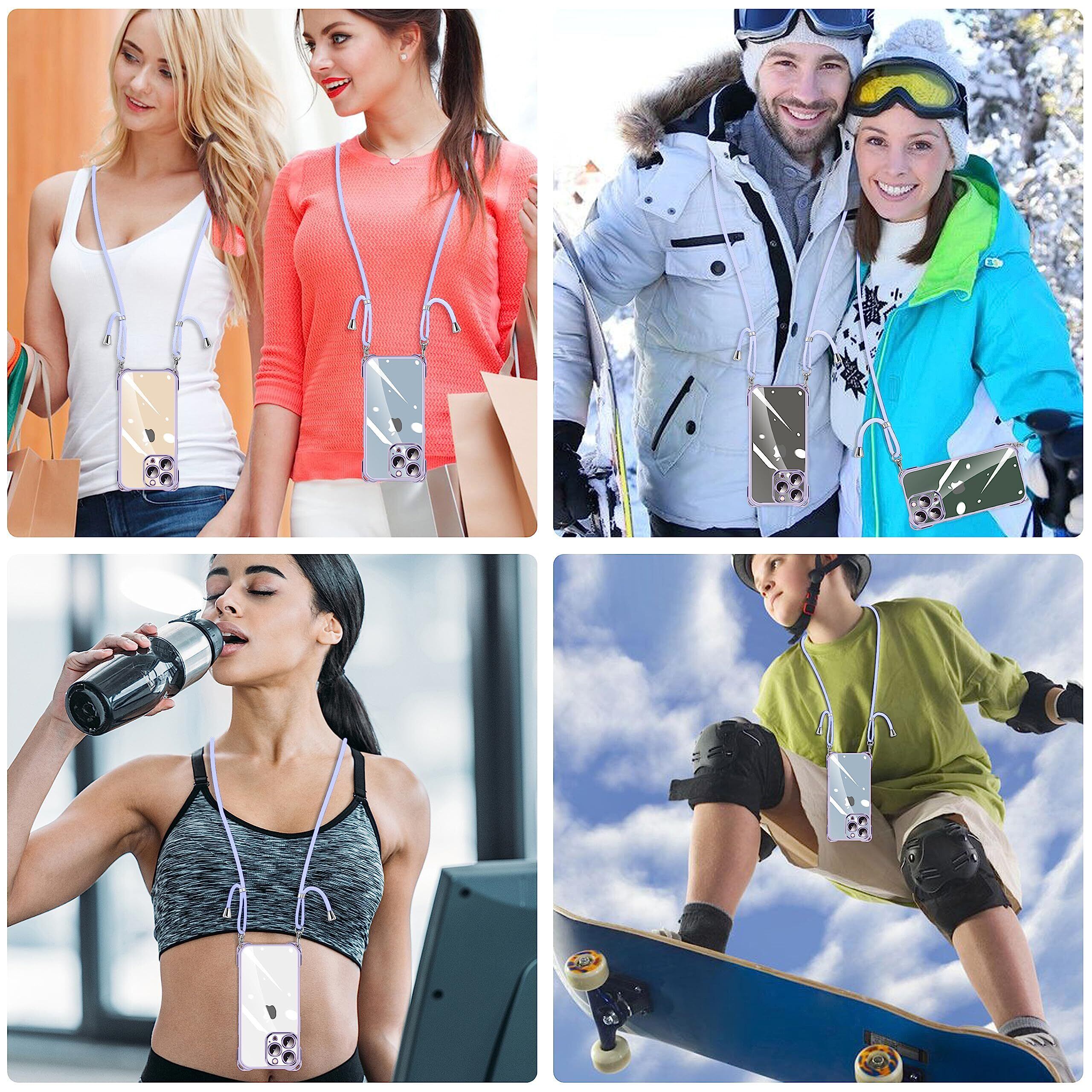 iPhone 12 Pro Max 用 ケース クリア ショルダー iphone12pro max 用 スマホケース アイフォン12ProMax カバー 肩掛け 斜めかけ 縄掛けケース 透明 TPU 薄型 軽量 耐衝撃 紐付き 斜めがけ 織りストラップ付き ネックストラップ ショルダー ケース 縦/横 2WAY 長さ調整可能 取り外し可能 落下防止 紛失防止 ワイヤレス充電対応 (パープル)