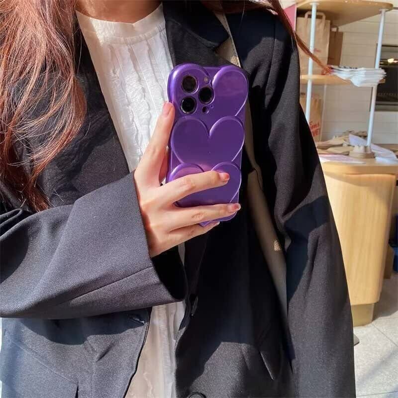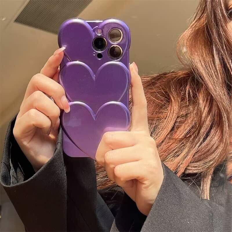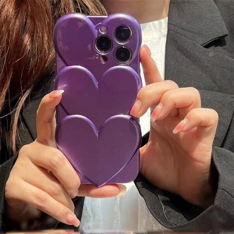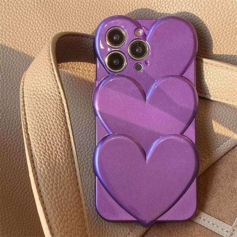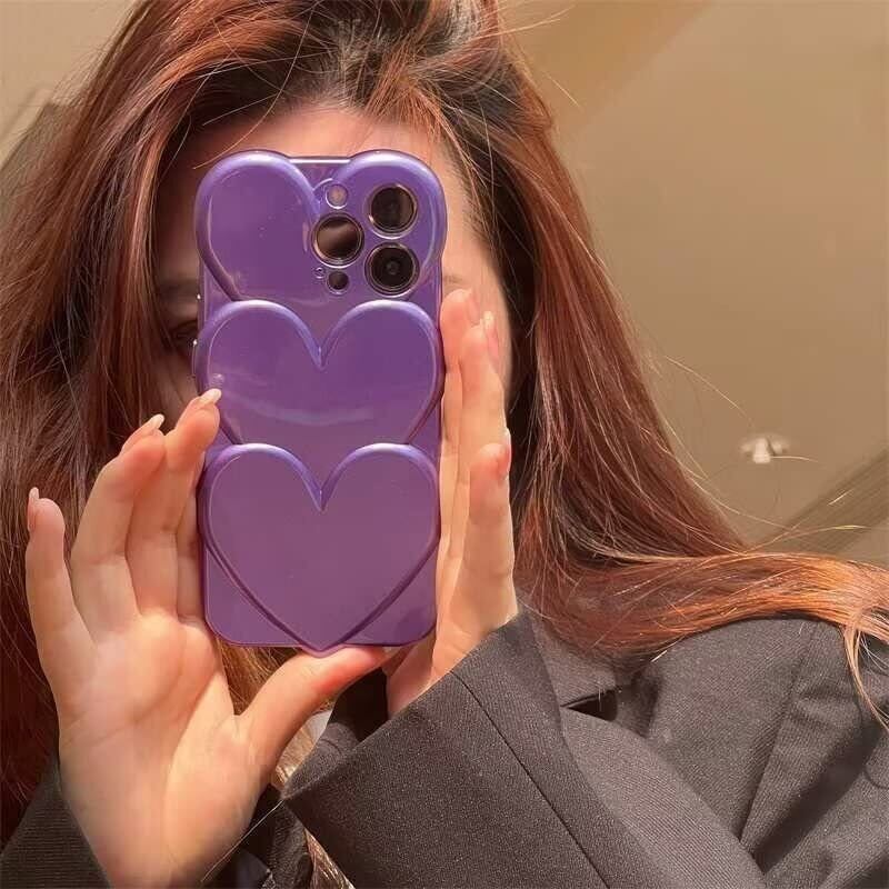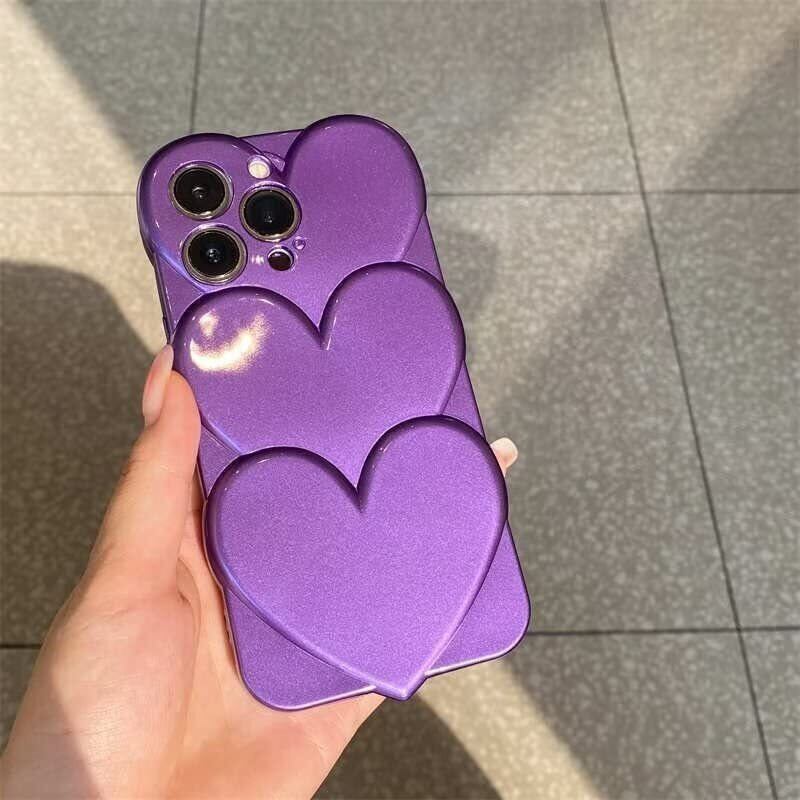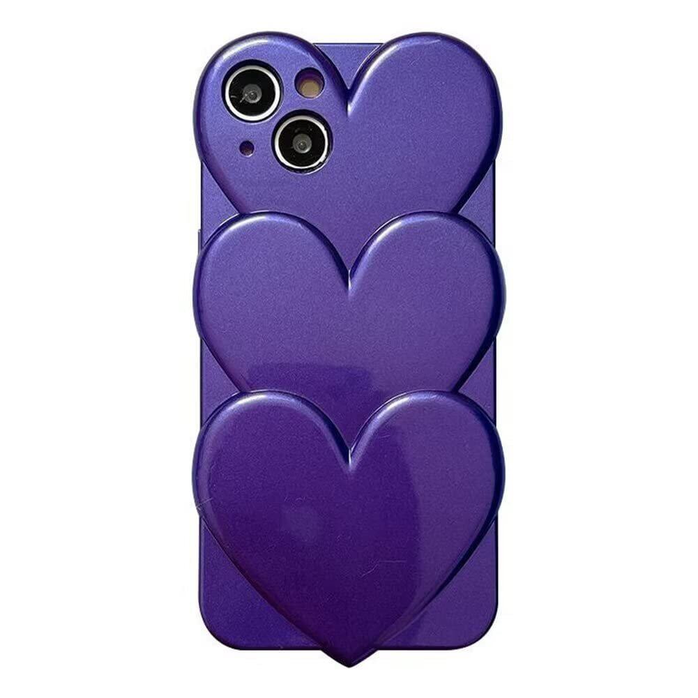 sosocase iphone14 Pro ケース 3D 立体 日韓人気 トレンド·トレンド めっきめっき かさね楽 3D ハート形 図柄 携帯ケース シリカゲル 保護カバー iPhone14Pro Max/13/12/Xs Max フルバックカメラ 耐衝撃 全面保護 iPhone シリーズ(パープル,14 Pro)