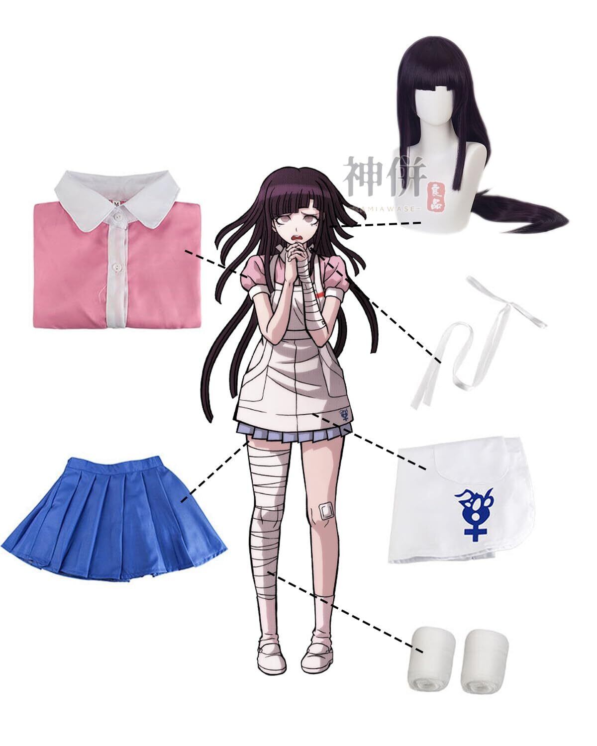 ※【セット内容】:「ウィッグ」+「ブラウス」+「スカート」+「エプロン」+「繃帯」。衣装の素材は100%ポリエステル繊維で、軽くて耐久性が高い、速乾性があります。ポリエステルは耐候性に優れており、長期間外気に触れていても劣化しないため、アウトドア用品にも広く使われています。