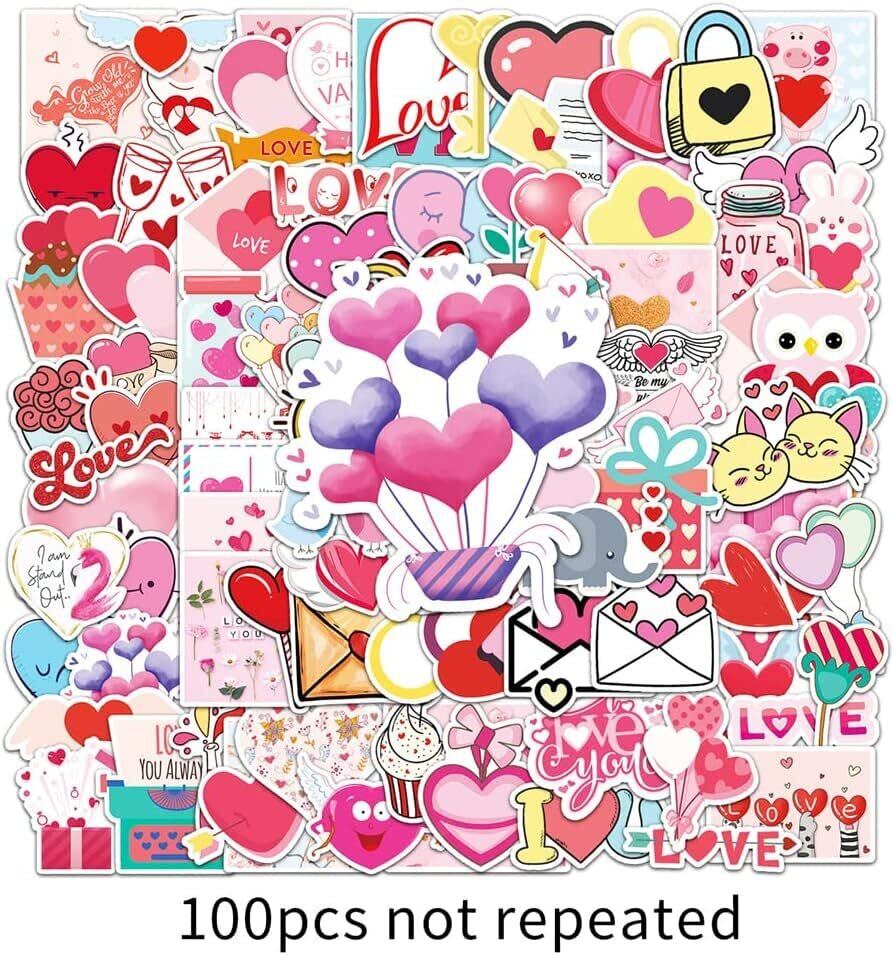 Generic ラブハートステッカー100枚、ウォーターボトル、荷物、教育インセンティブ、子供、ティーン、大人へのギフト用ビニール防水ステッカー