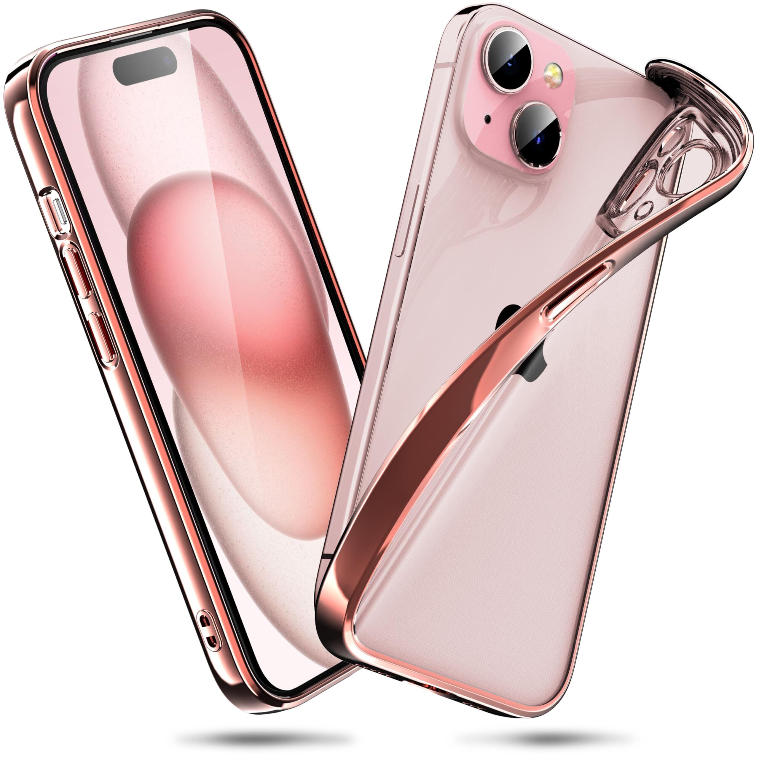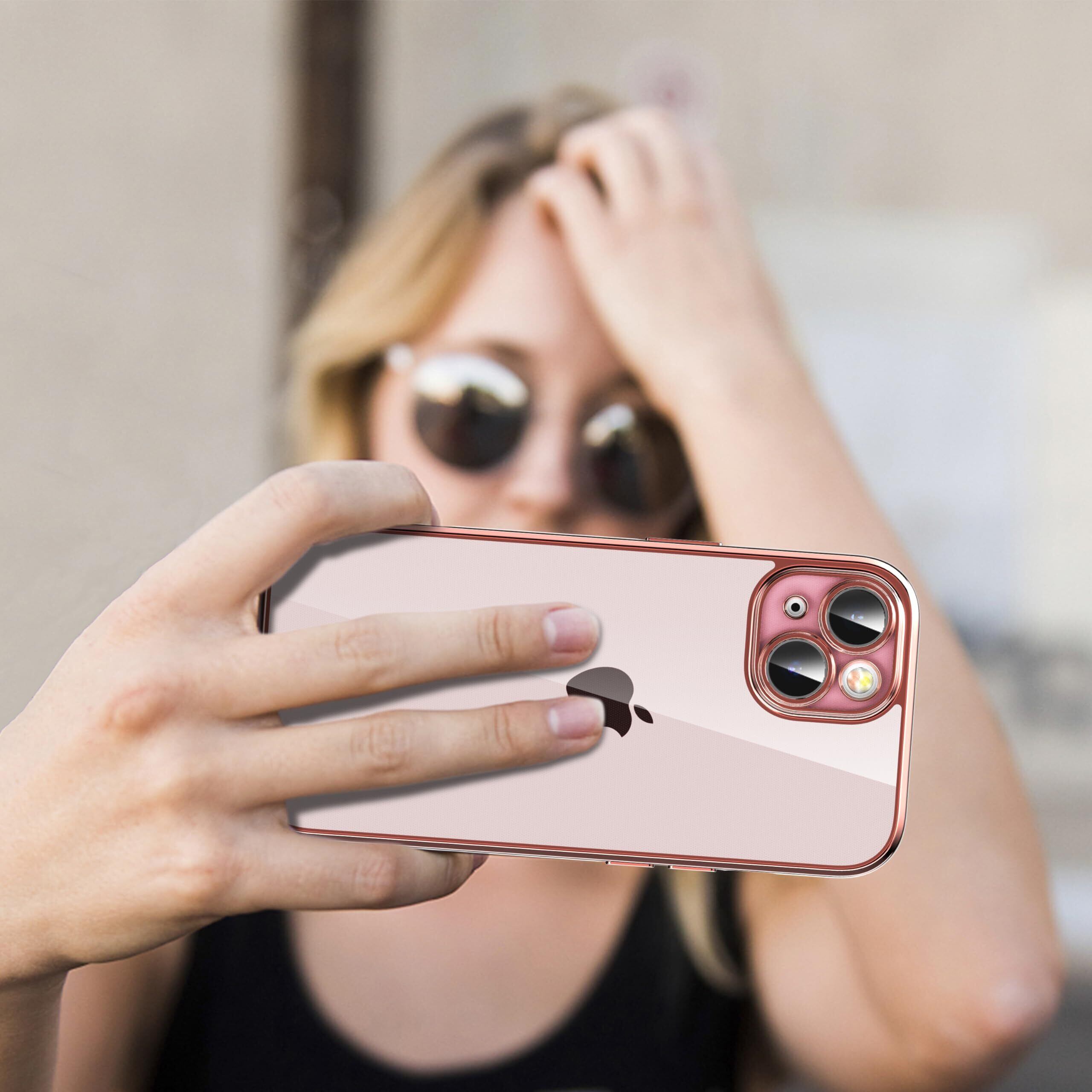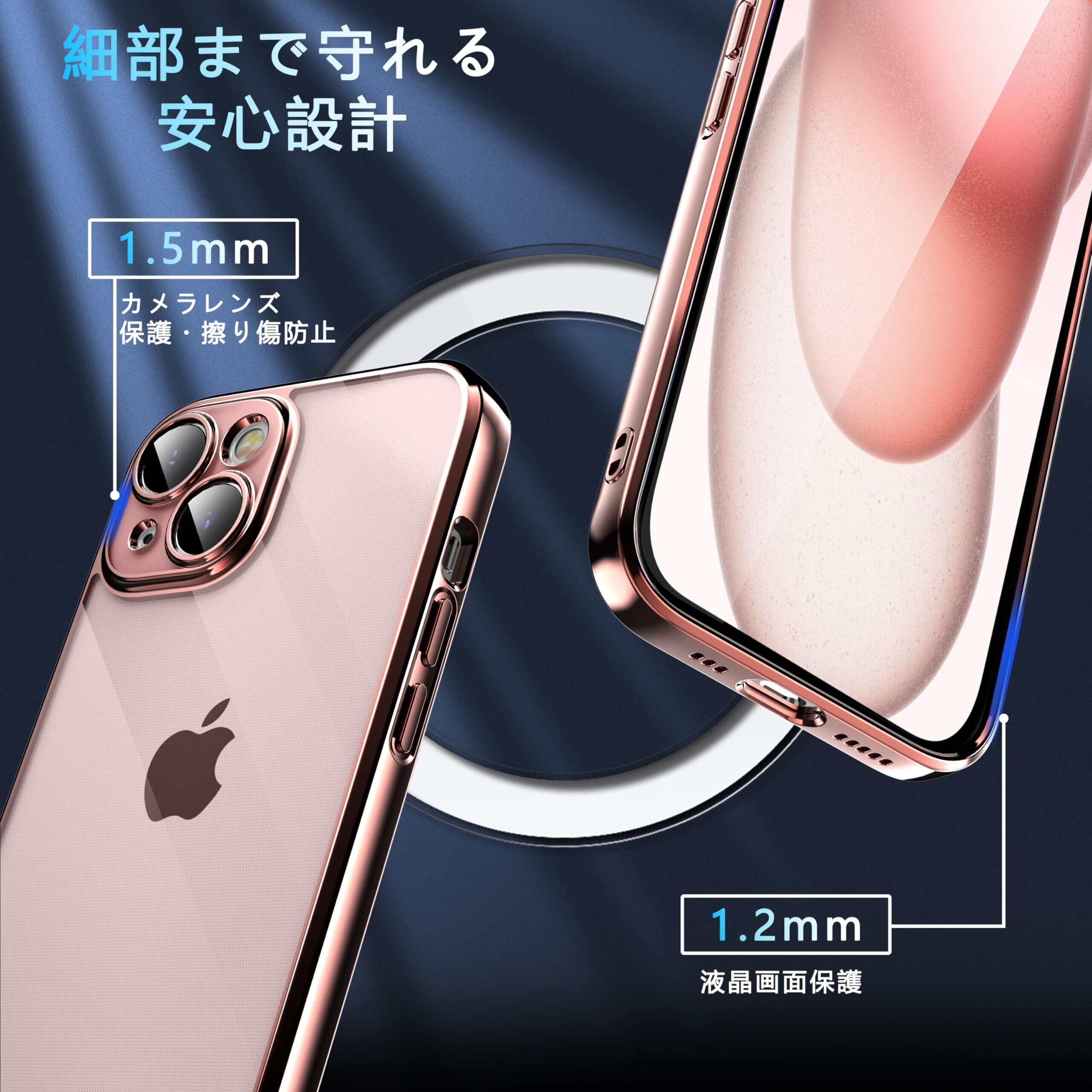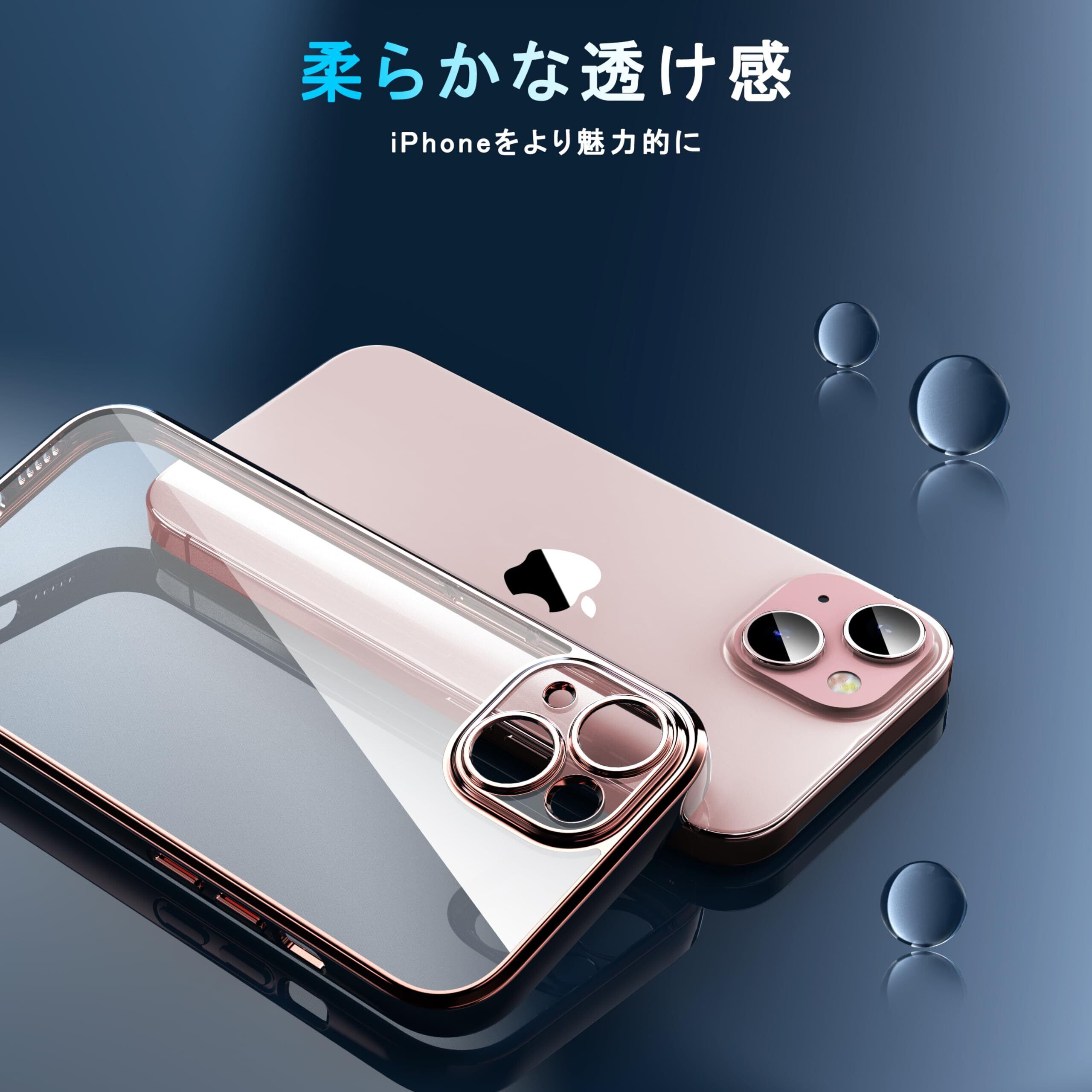 ORANGA iPhone15 用 ケース クリア 全透明 耐衝撃 薄型 ドイツバイエル製TPU素材 黄変防止 メッキ枠 ワイヤレス充電対応 レンズ保護 ストラップホール付き 指紋防止 アイフォン15 用カバー ローズゴールド