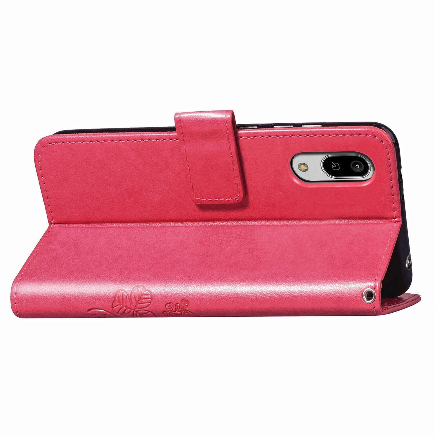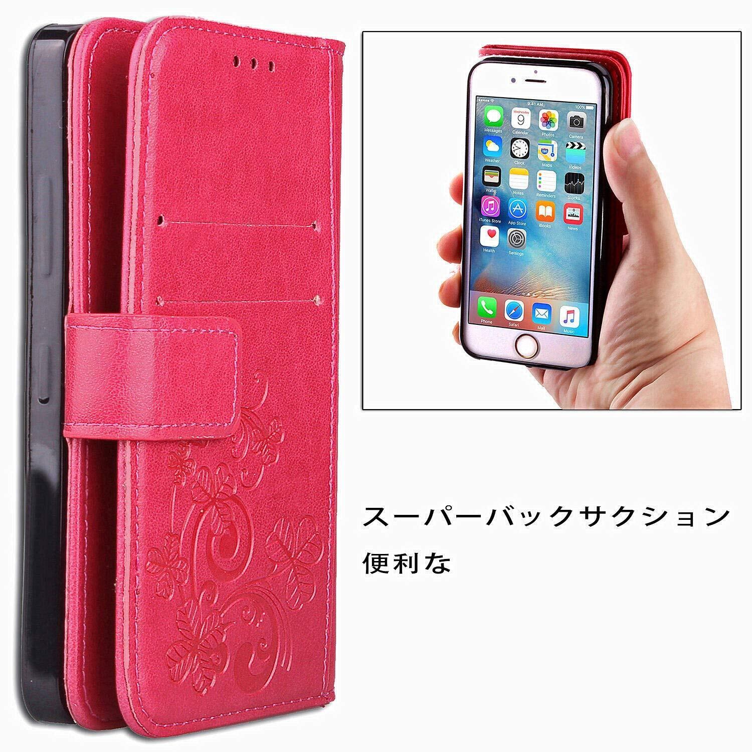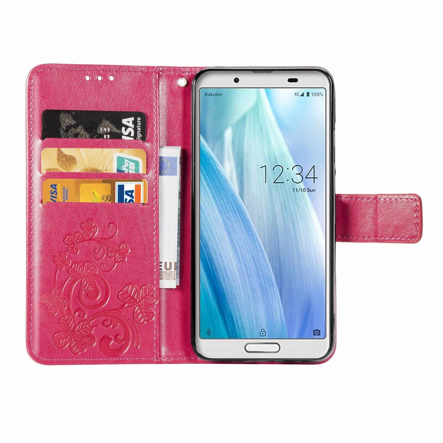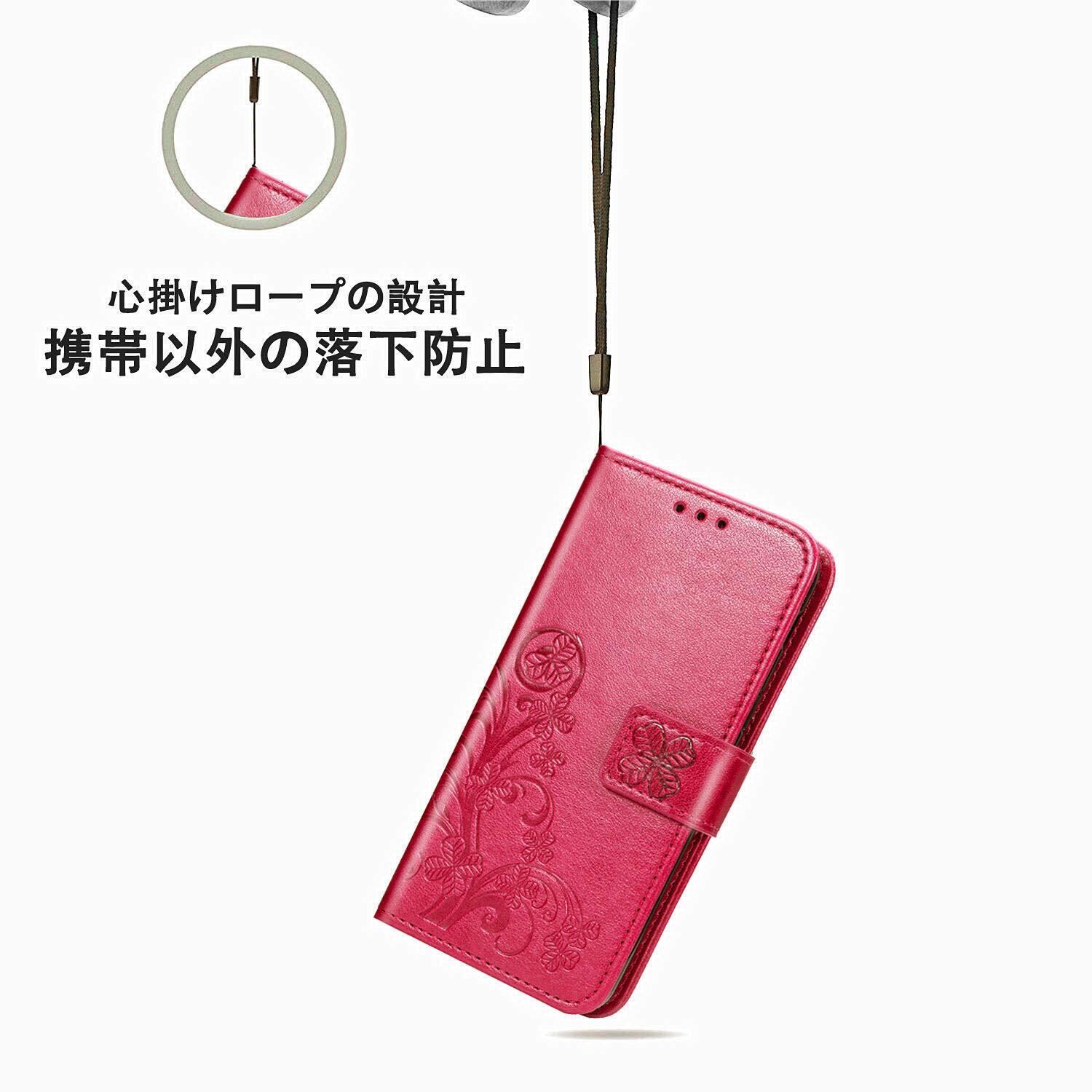 対応AQUOS sense3 / sense3 lite / sense3 basic/Android One S7 [SH-02M / SHV45 / SH-RM12] ケース 手帳型 ノートブック型携帯電話保護カバー多機能携帯電話ホルスター財布携帯電話ホルダーバンプパターンテクスチャ耐久性摩擦耐性携帯電話ケース男性と女性に適した多色オプション (四つ葉のクローバー赤)