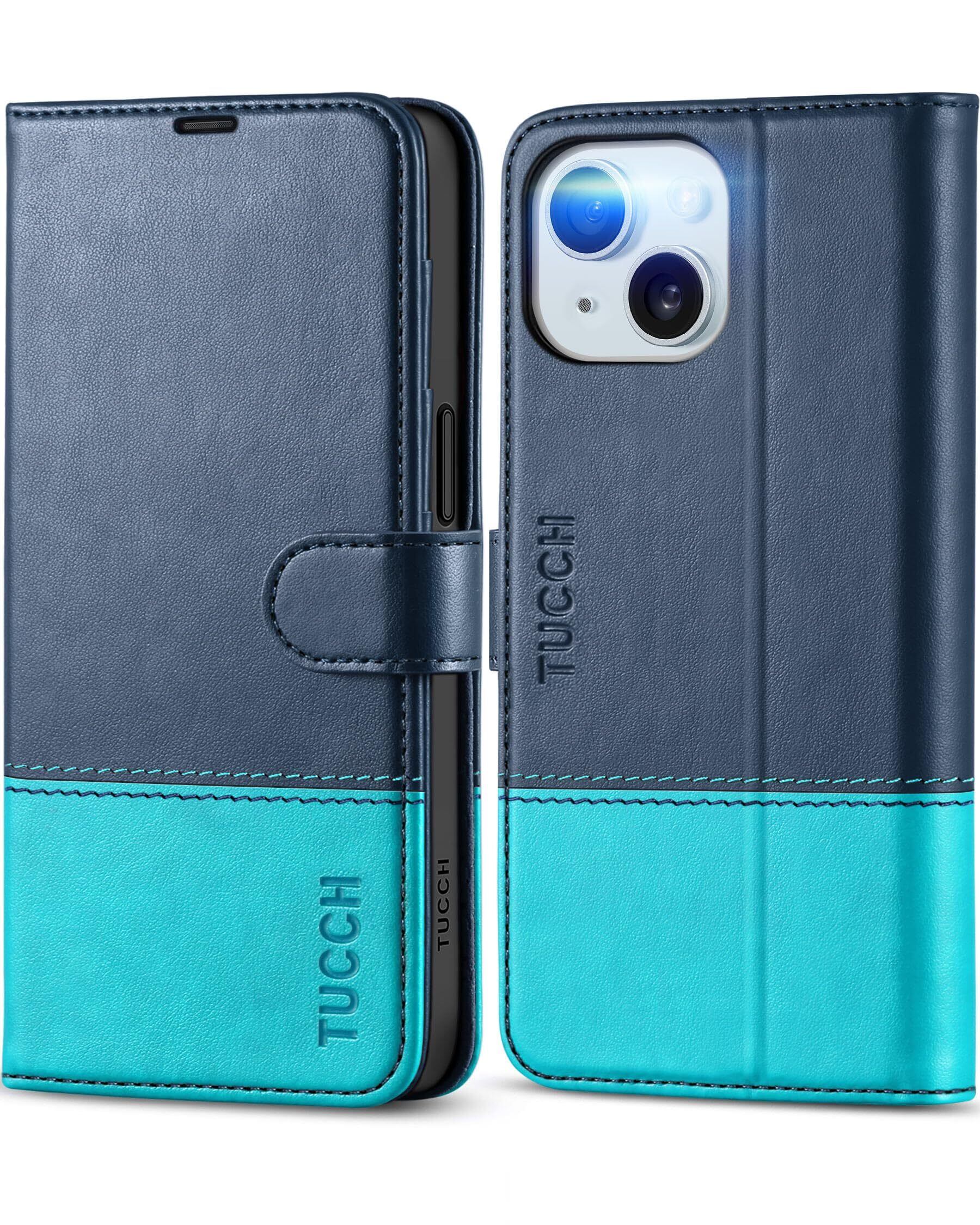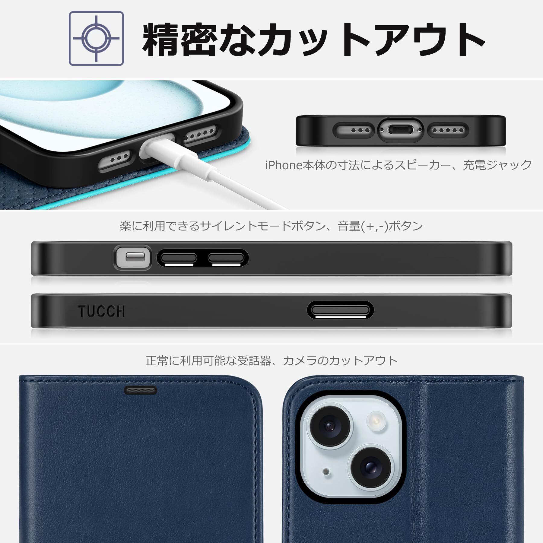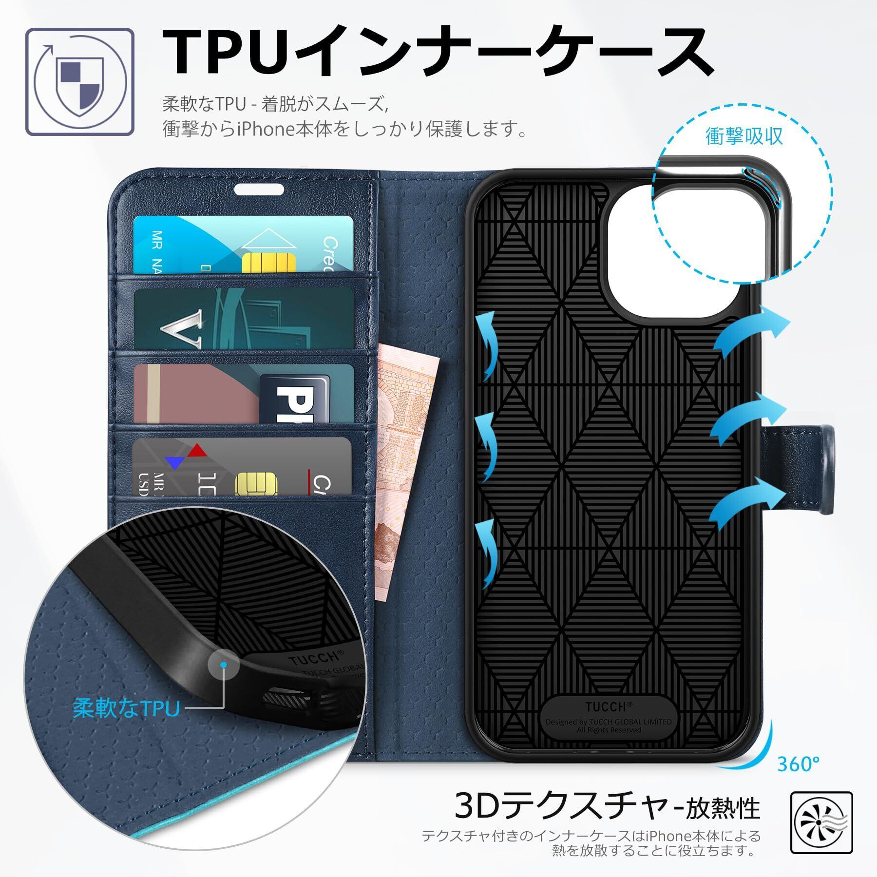 TUCCH iPhone 15 対応 ケース 手帳型 iPhone15 ケース手帳型 カード収納 スタンド機能 耐衝撃 軽量 高級PU合皮 TPU素材 マグネット [RFIDブロッキング] アイフォン15 財布型 あいふぉん15ケース (2023年発売 iPhone 15 6.1インチ 5G 対応) ダークブルー&ブルー