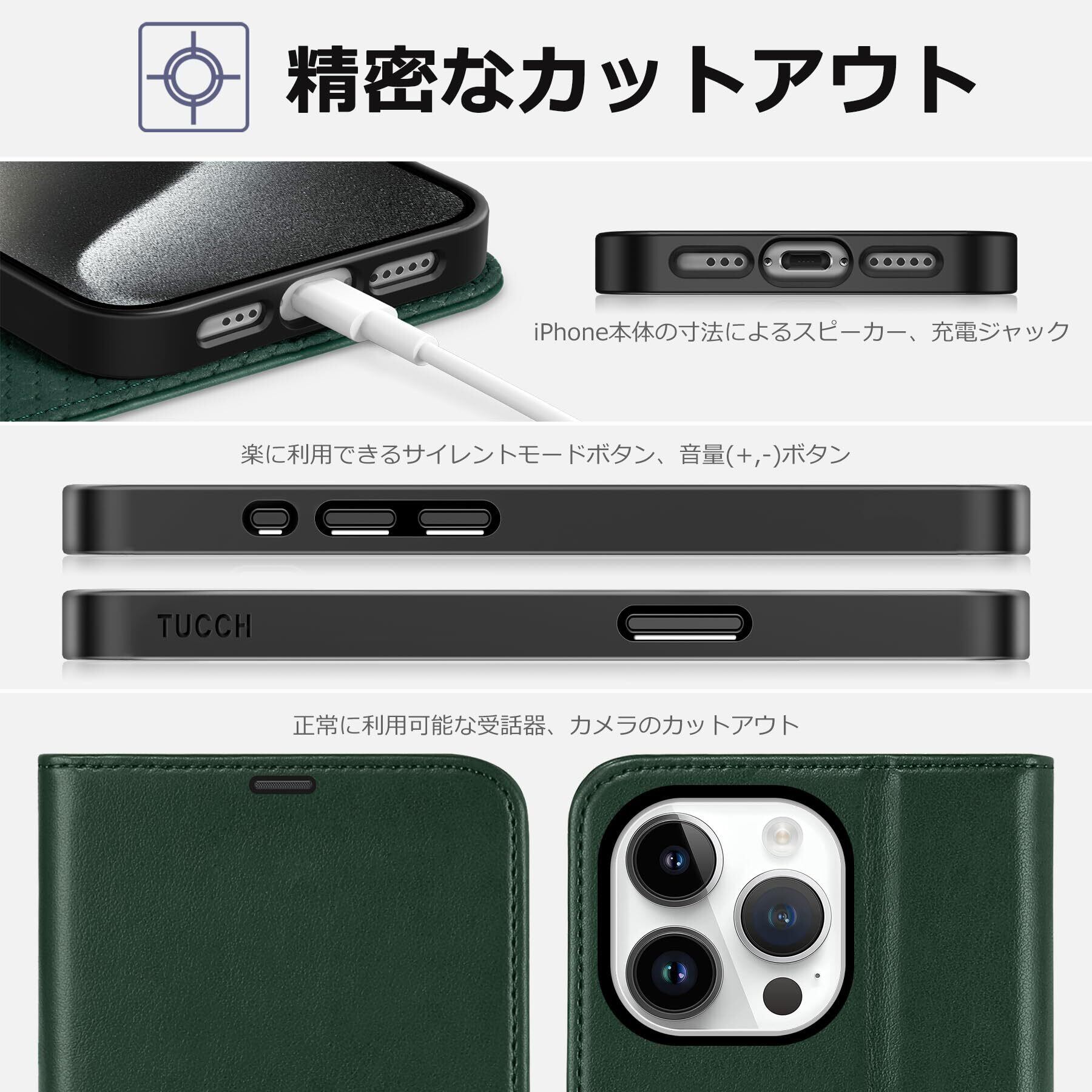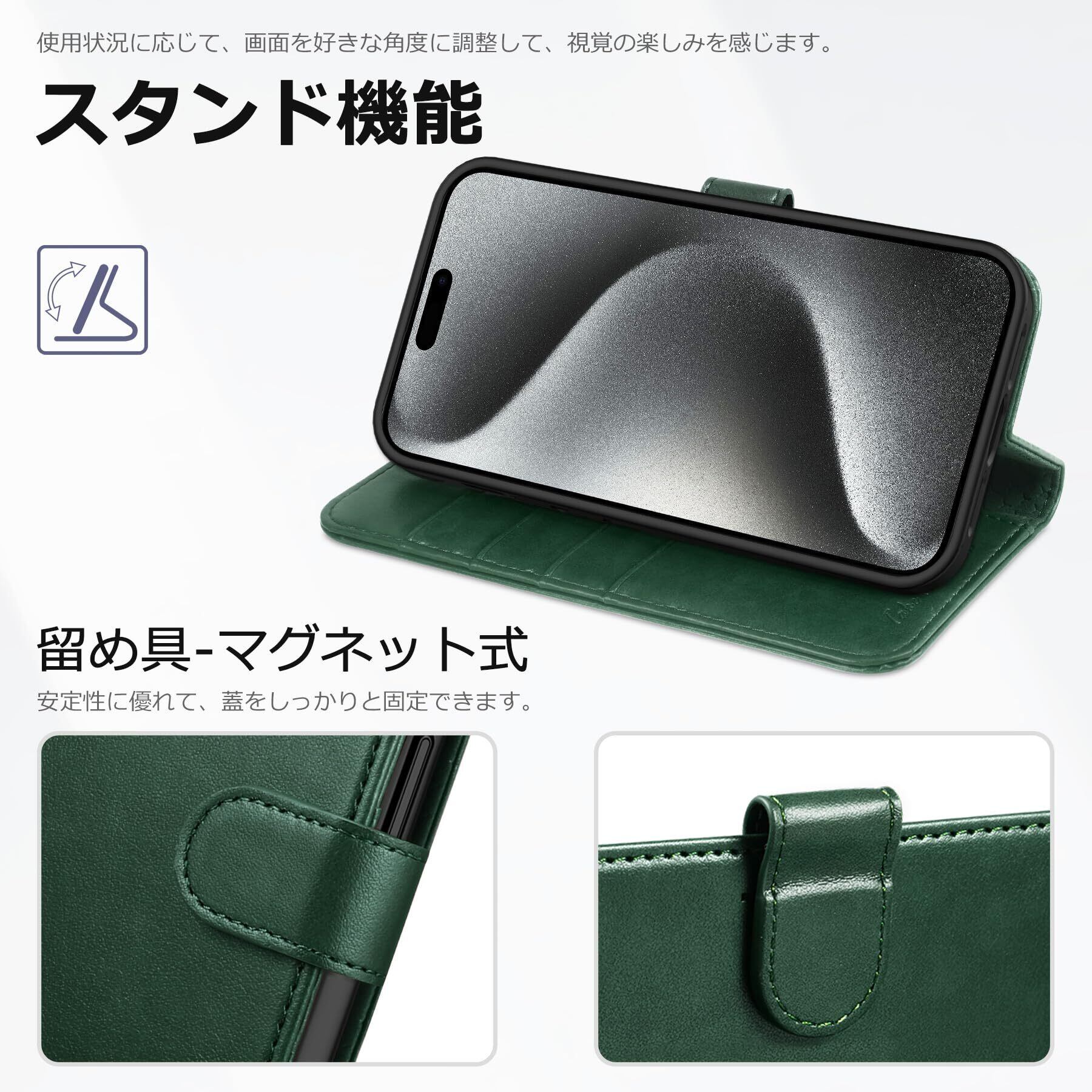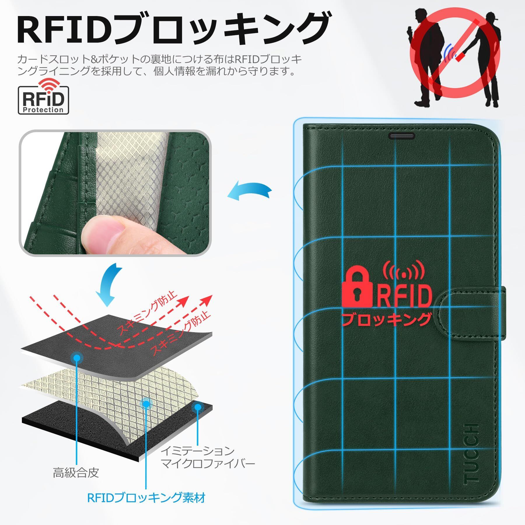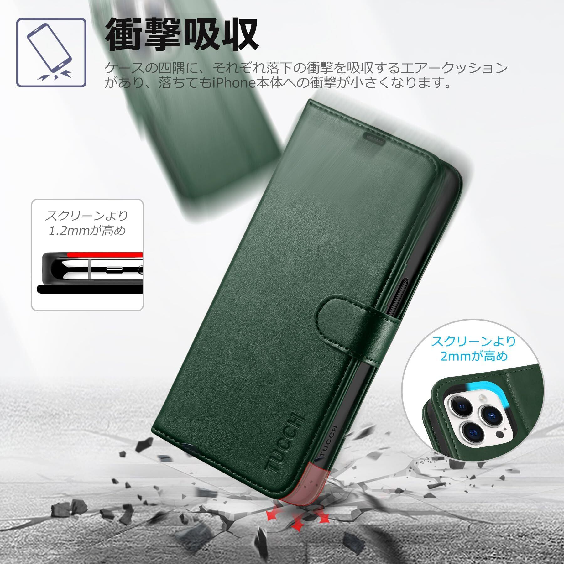 TUCCH iPhone15 Pro 対応 ケース 手帳型 iPhone15 プロ ケース手帳型 耐衝撃 高級PU合皮 TPU素材 カードポケット [RFIDブロッキング] 全面保護 横置きスタンド機能 マグネット アイフォン15プロ 手帳ケース (2023年発売 iPhone 15 プロ 5G 6.1 インチ対応) グリーン