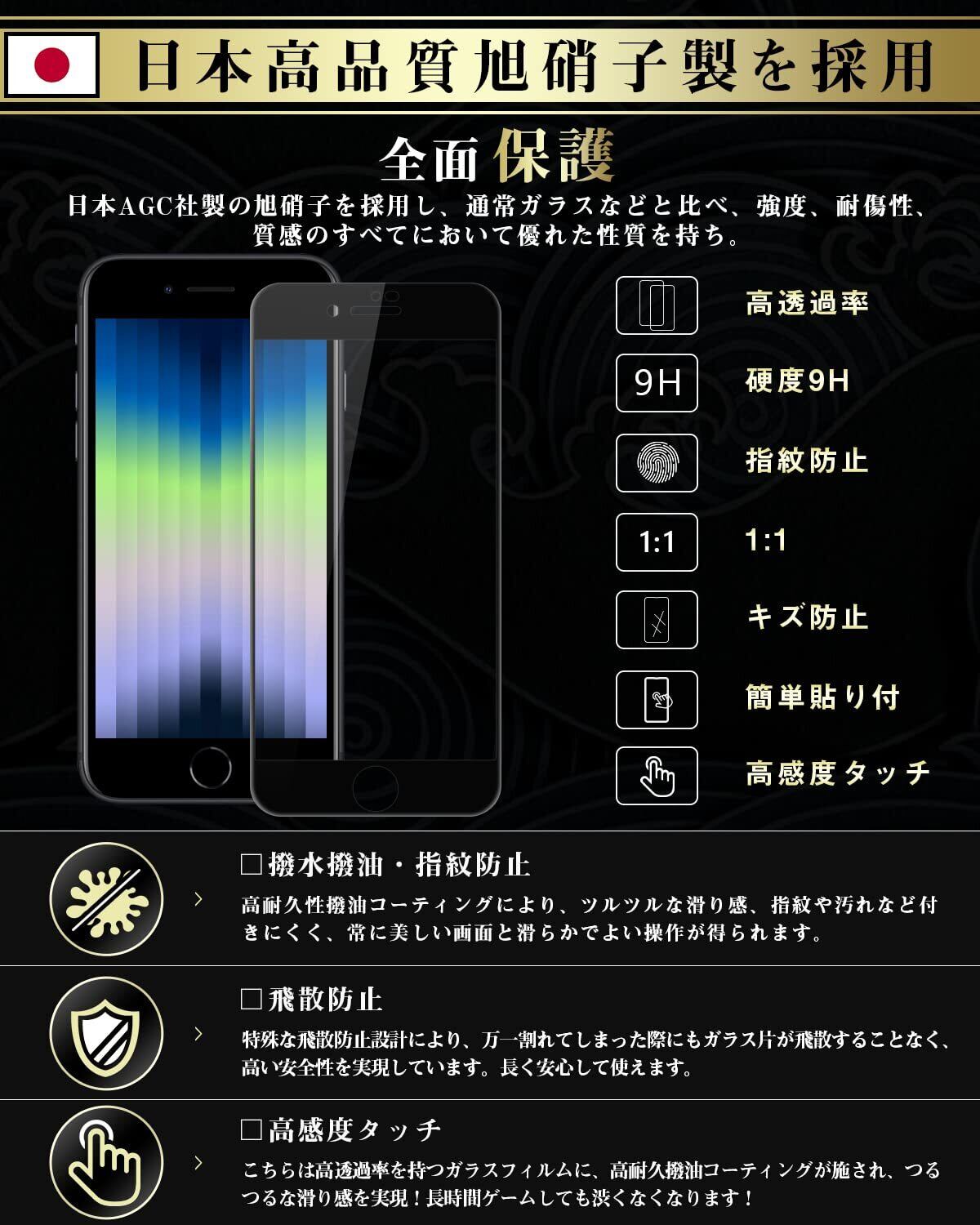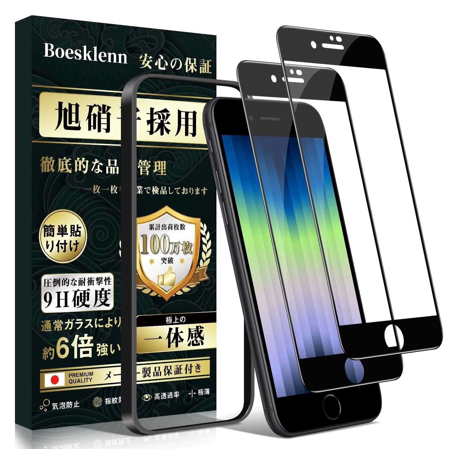 Boesklenn for iPhone se3 ガラスフィルム iPhone se2 ガラスフィルム iPhone se3 フィルム【日本旭硝子製】9H硬度 自動吸着 気泡防止 高感度 iPhone 7 / 8 フィルム【4.7インチ-2枚】