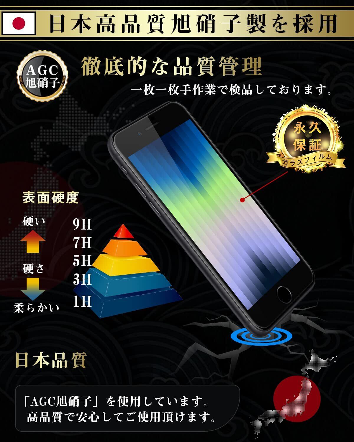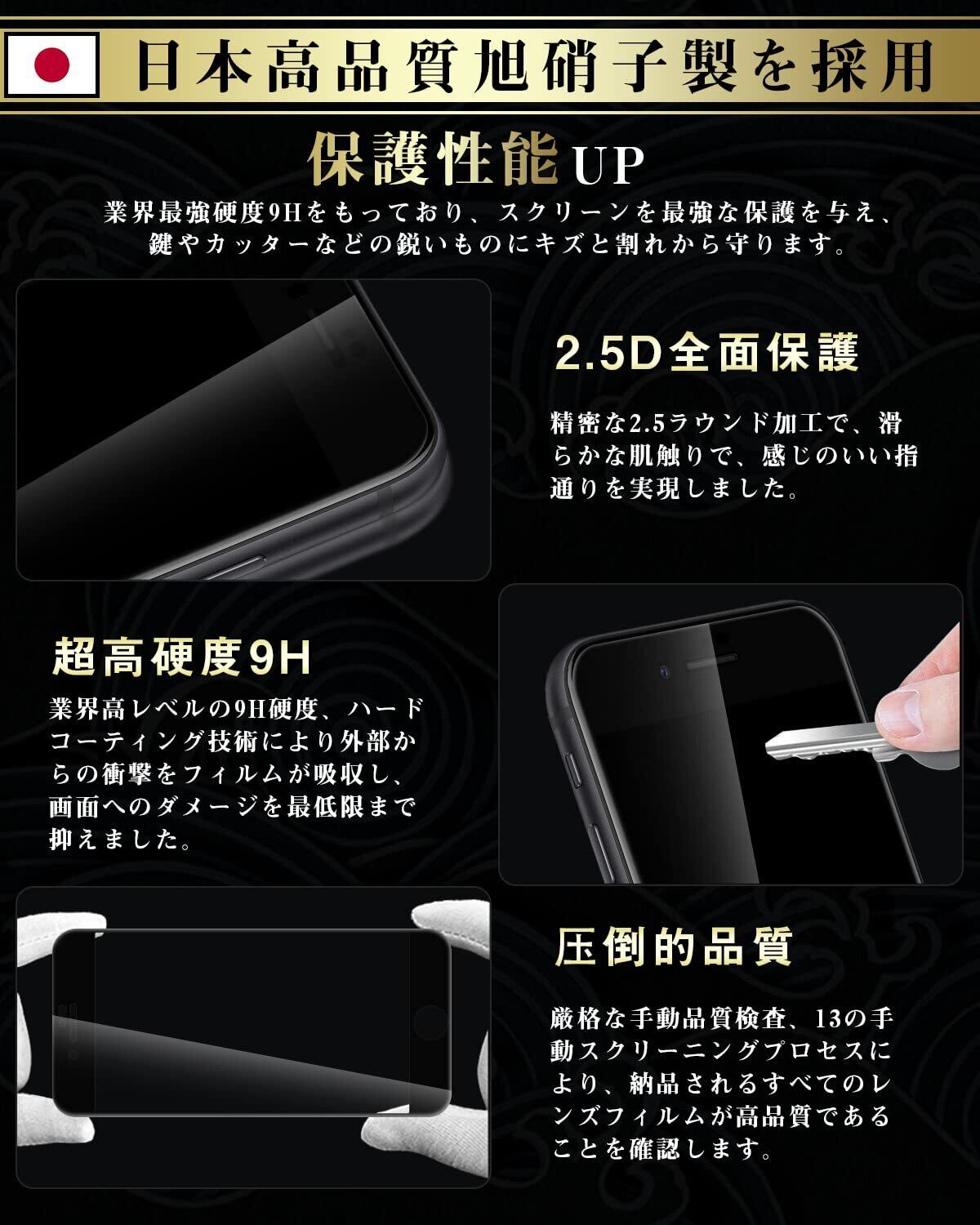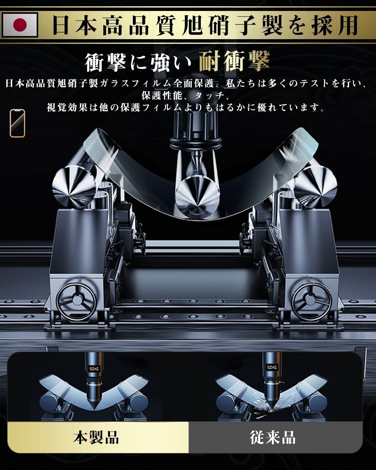 2⃣【日本製素材旭硝子製・耐衝撃性!】 日本製旭硝子素材、9H硬度、またハードコーティング技術により、強度を普通より3倍以上アップしており、液晶画面をしっかりと保護する。ハードコーティング技術により外部からの衝撃をフィルムが吸収し、画面へのダメージを最低限まで抑えます。