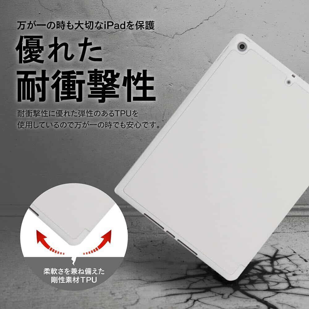 【優れた耐衝撃性】:適度な硬さと柔軟性を兼ね備えた高品質TPU素材を採用。万が一落下した場合にも、衝撃を吸収し、大切なiPadを保護します。 【お手軽なマグネット開閉式】:カバーを開閉するだけで簡単に電源をオン・オフすることができる「オートスリープ機能」に対応しています。消し忘れ防止にも。【注意事項】:※端末を完全に保護するものではありませんので、落下などにはご注意ください。※使いのモニター設定、お部屋の照明等により実際の商品と色味が異なる場合がございます。