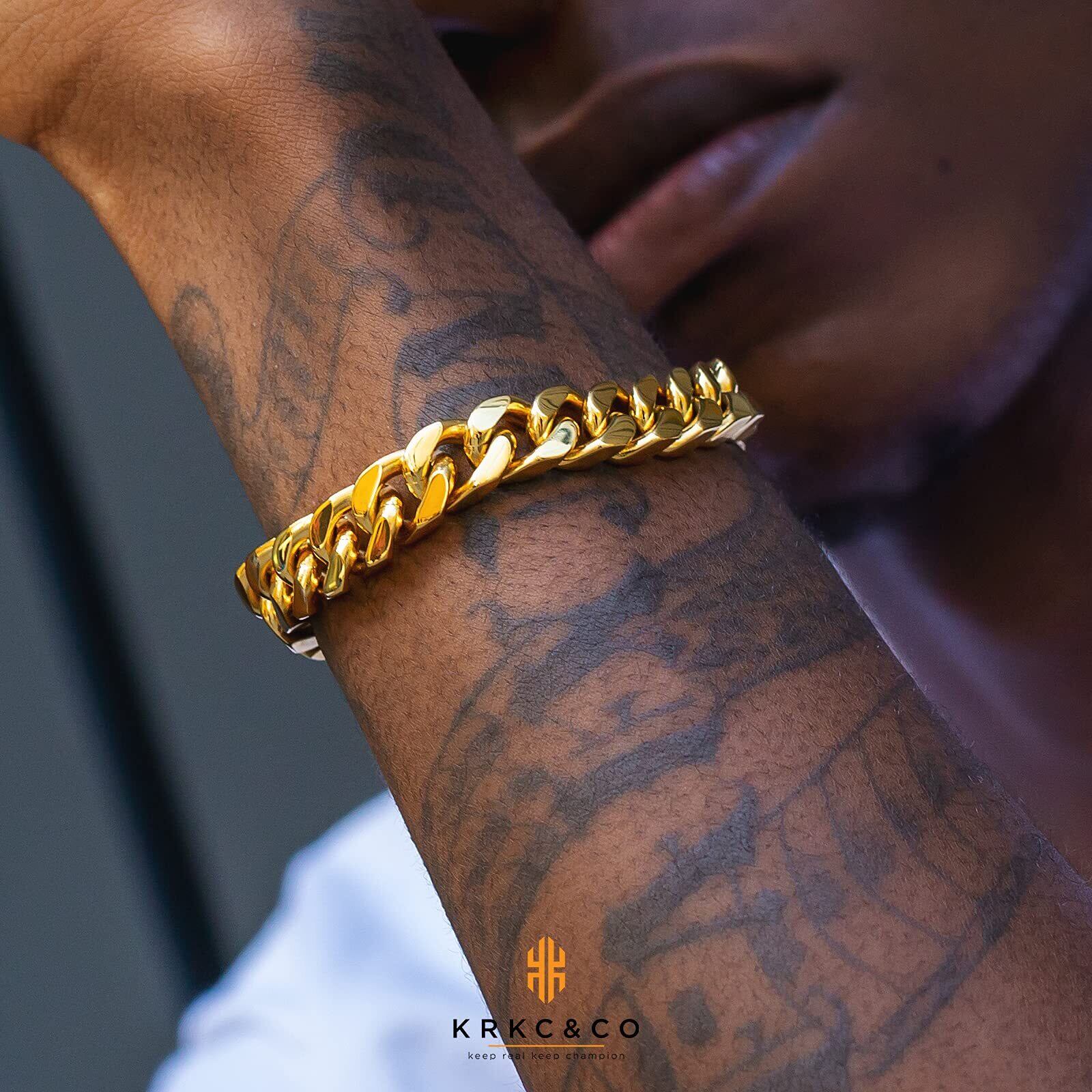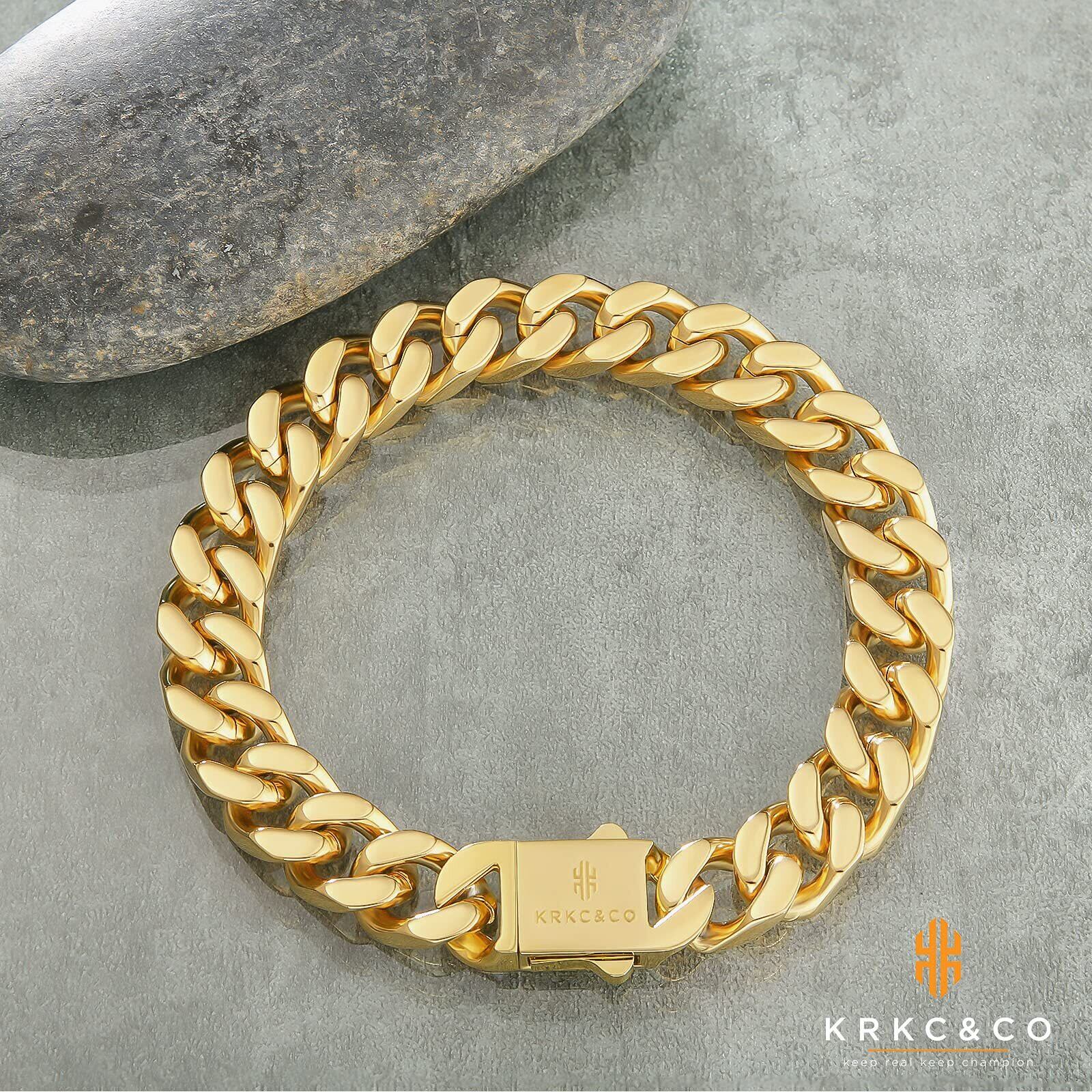 KRKC&CO 喜平ブレスレット メンズブレス 12/14mm サージカルステンレス 6面/4面カット キューバンチェーン k18金メッキ キヘイ 腕輪 ダンサー B系 ストリート ヒップホップ ラッパー ギフト