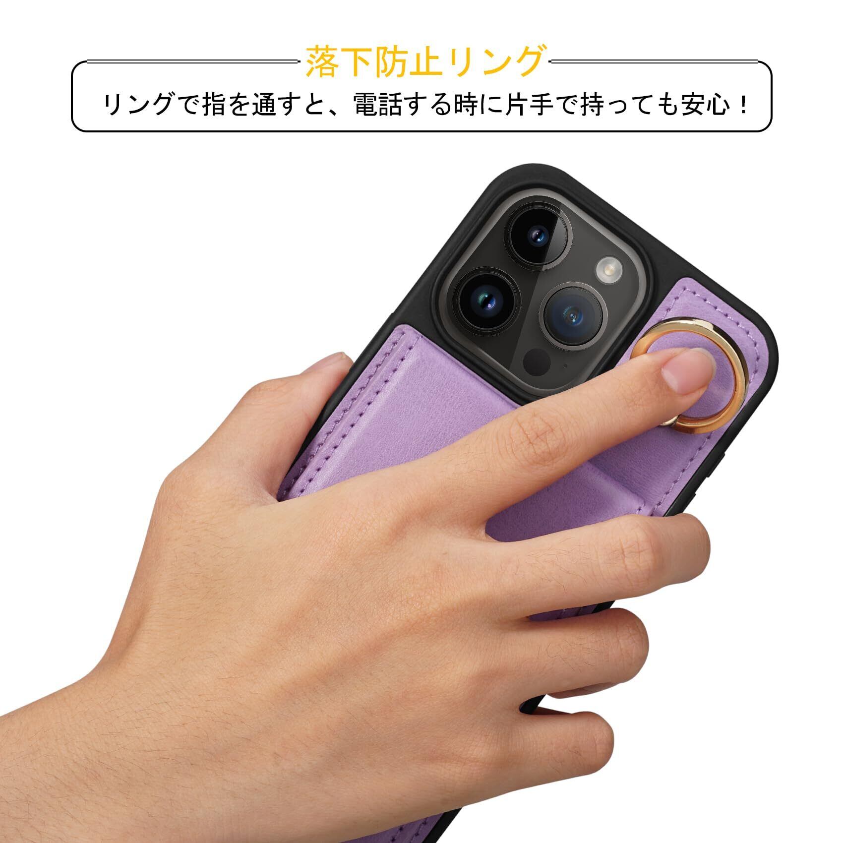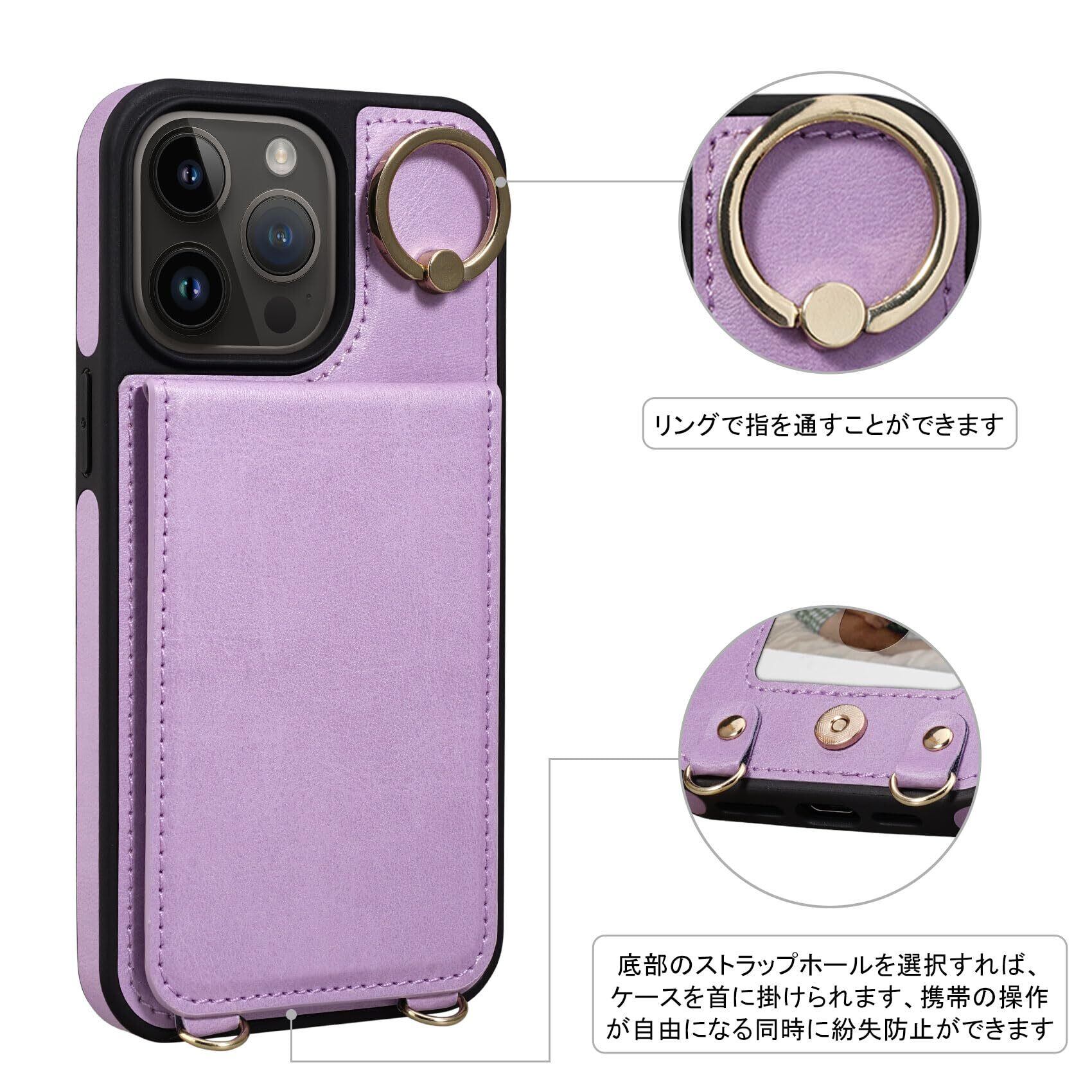 Shlybaay iPhone 15 Pro Max (iPhone 15 プロ マックス) 用 手帳型背面ケース カード収納&ストラップ付き 肩掛け 斜め掛け PUレザー マグネット対応 スタンド機能 可愛い 6.7インチ パープル