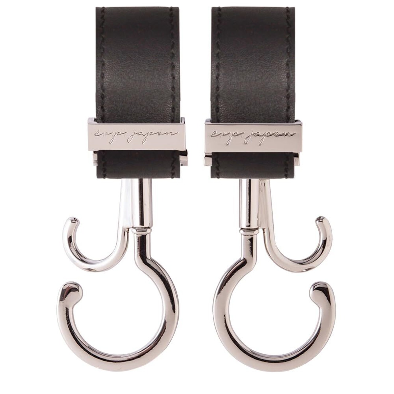 e.x.p.japon バギーフック SV-合皮ブラック 360度回転 ダブルフック ベビーカー 荷物フック 耐荷重約60キロ ベビーカーフック 2本入り e-bgh09sv