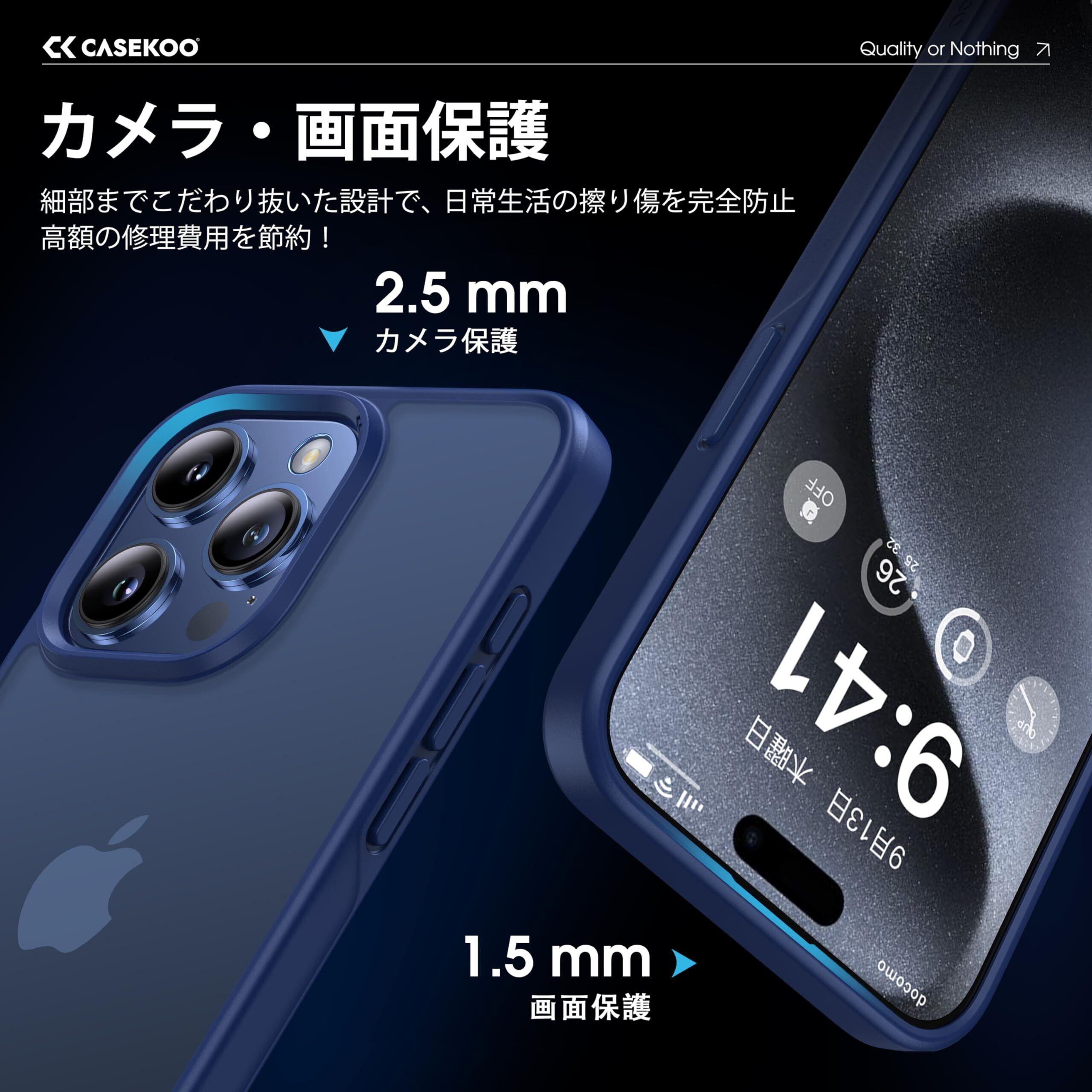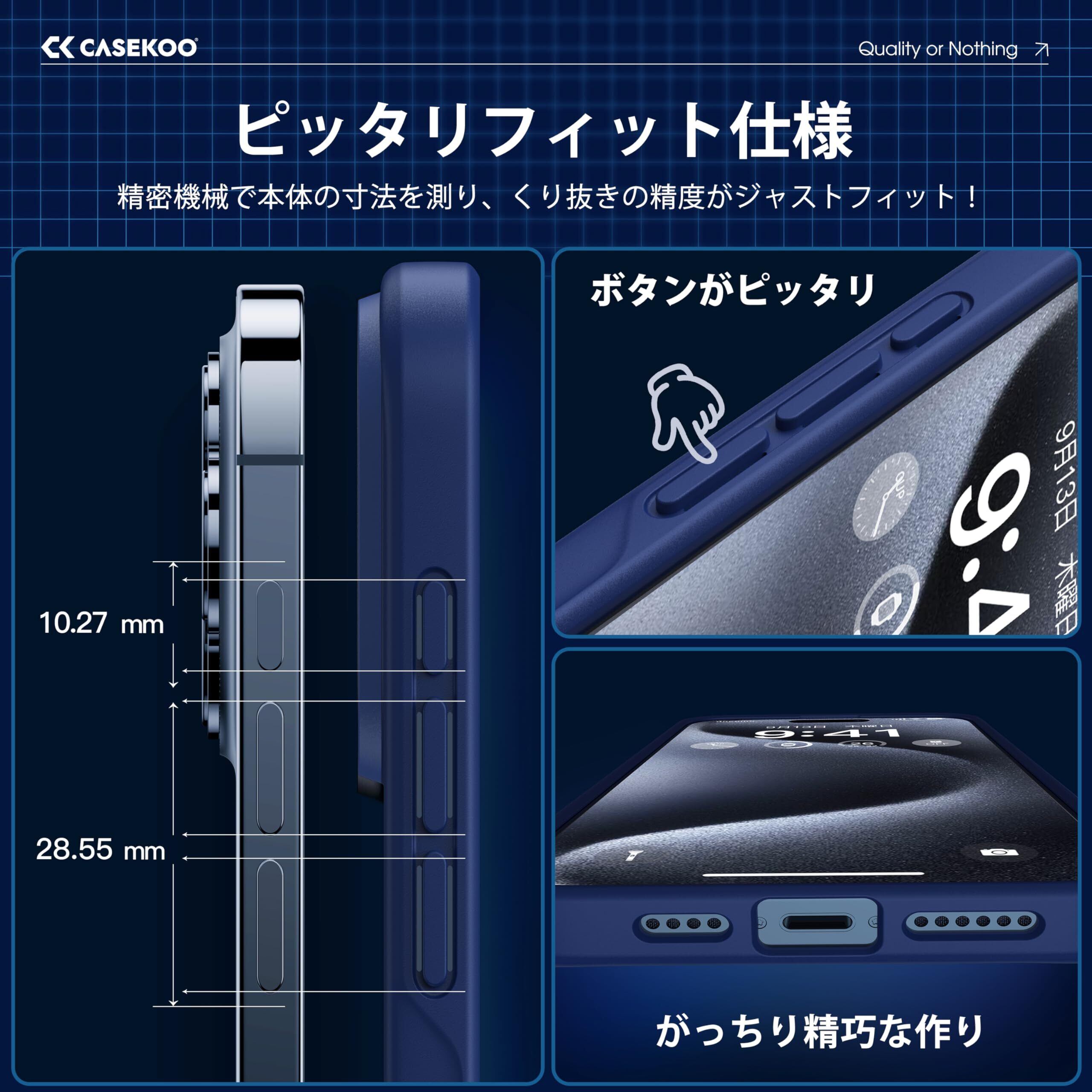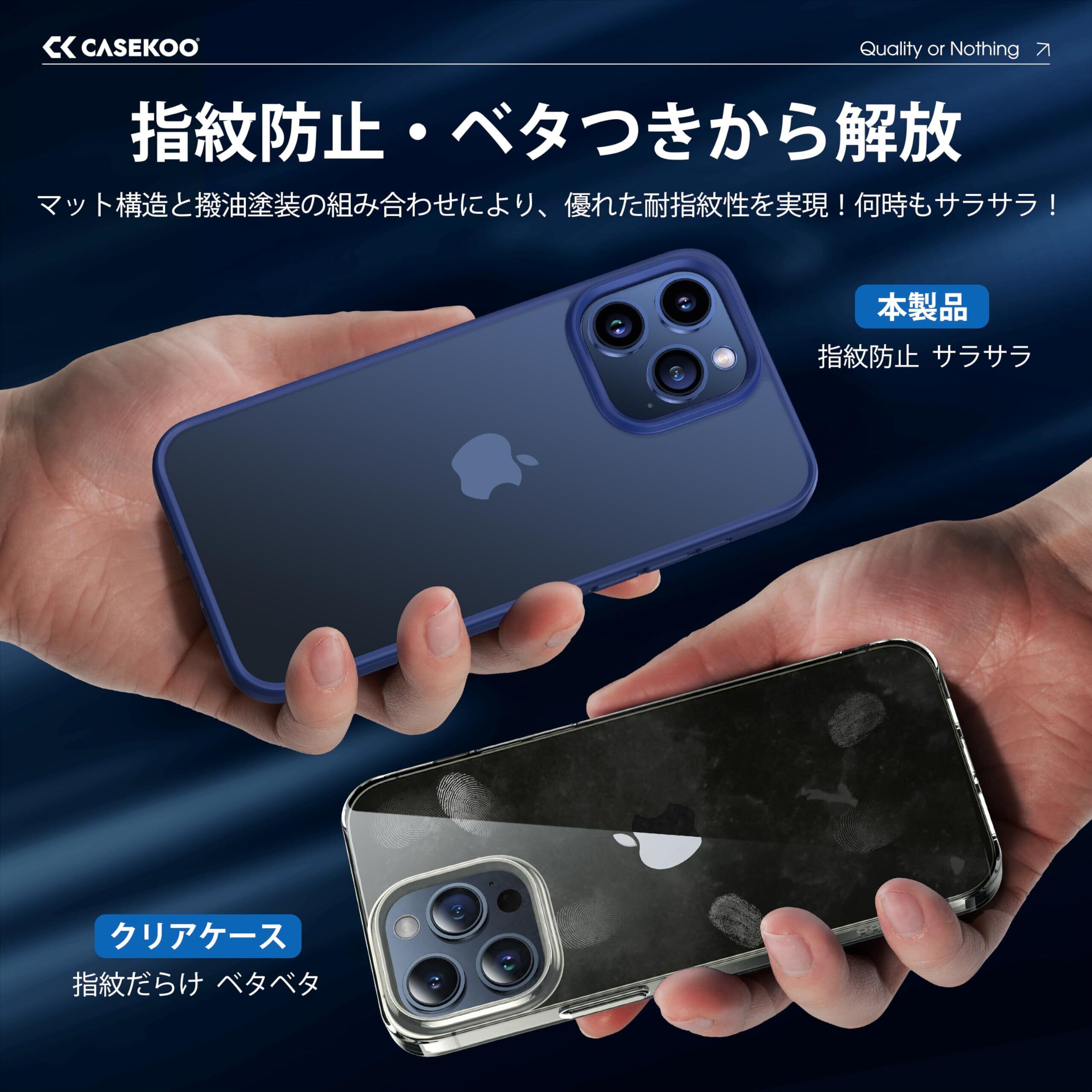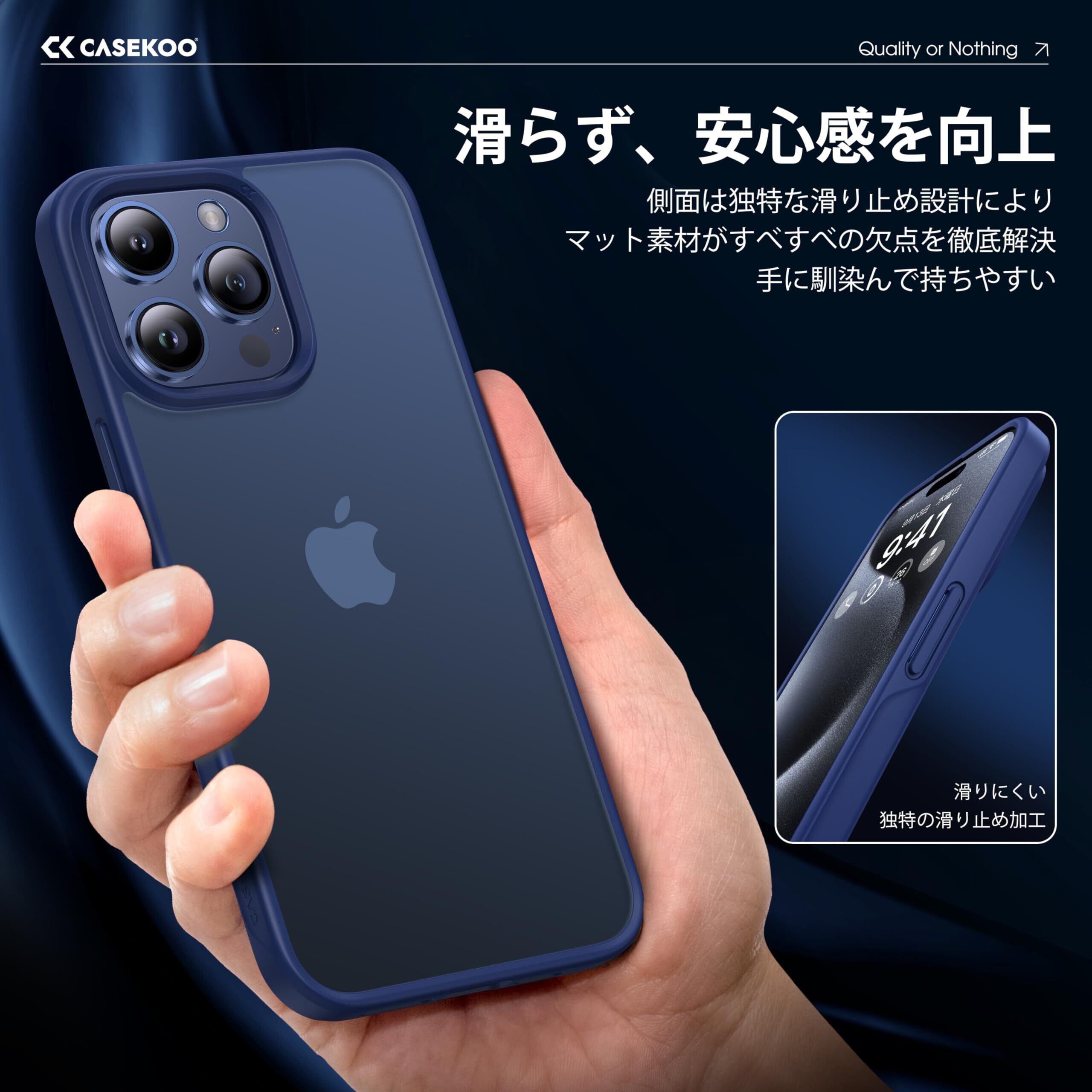 【米軍MIL規格・指紋防止】CASEKOO iPhone 15 Pro 用 ケース 耐衝撃 滑り止め 指紋防止 米軍MIL規格 マット仕上げ ストラップホール付き 黄変防止 耐久性 カバー ワイヤレス充電対応 アイフォン 15 プロ 用 6.1 インチ ケース(マットブルー)
