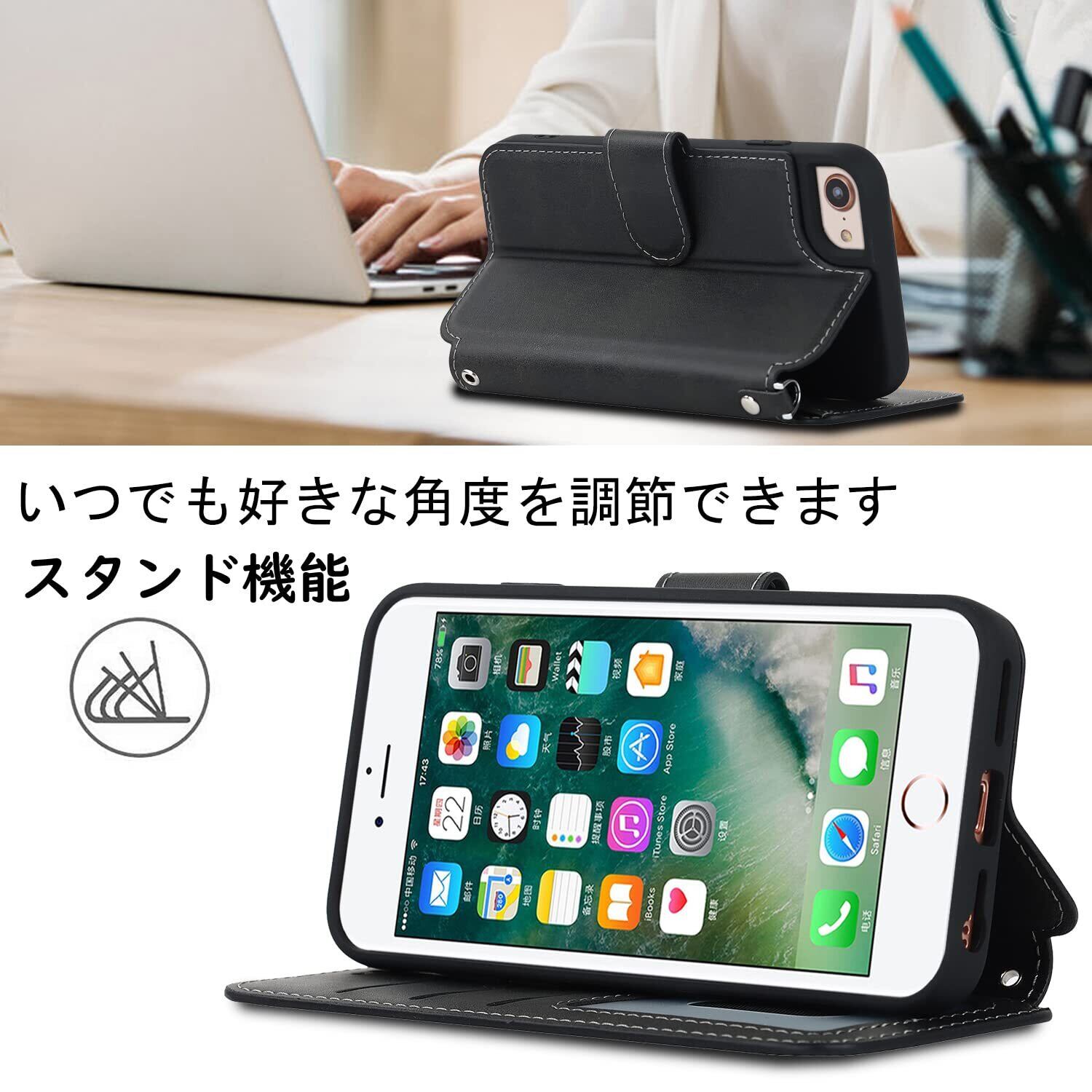 Havaya iPhone SE3 ケース iPhone SE2 ケース iphone8 ケース 手帳型 ストラップ 2022 2020 米軍MIL規格 軽薄 第3世代 第2世代 耐衝撃 レンズ保護(アイフォンSE3 /あいふぉんSE2/いphone8/アイホン7/アイフォン6/6s 4.7インチ対応)-ブラック