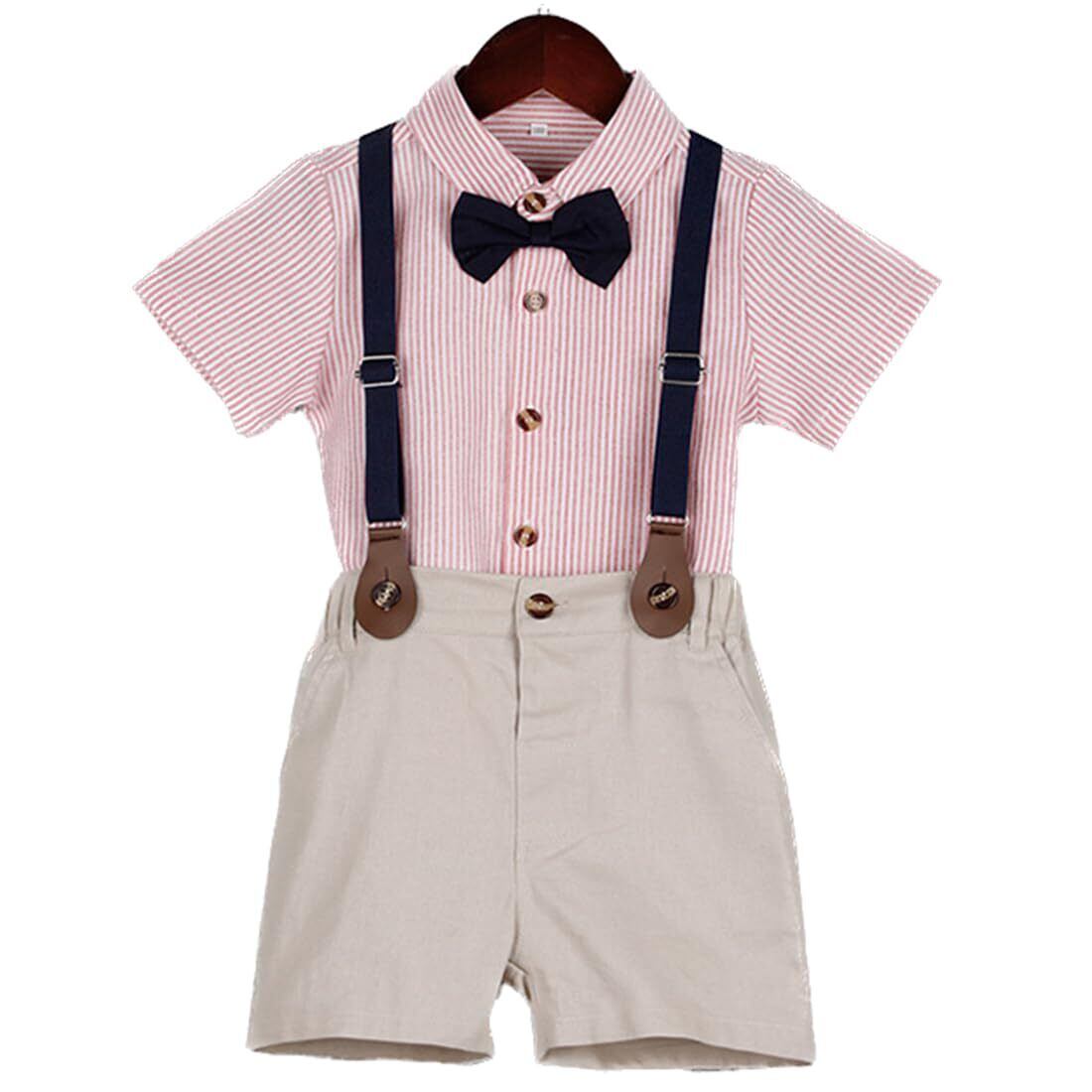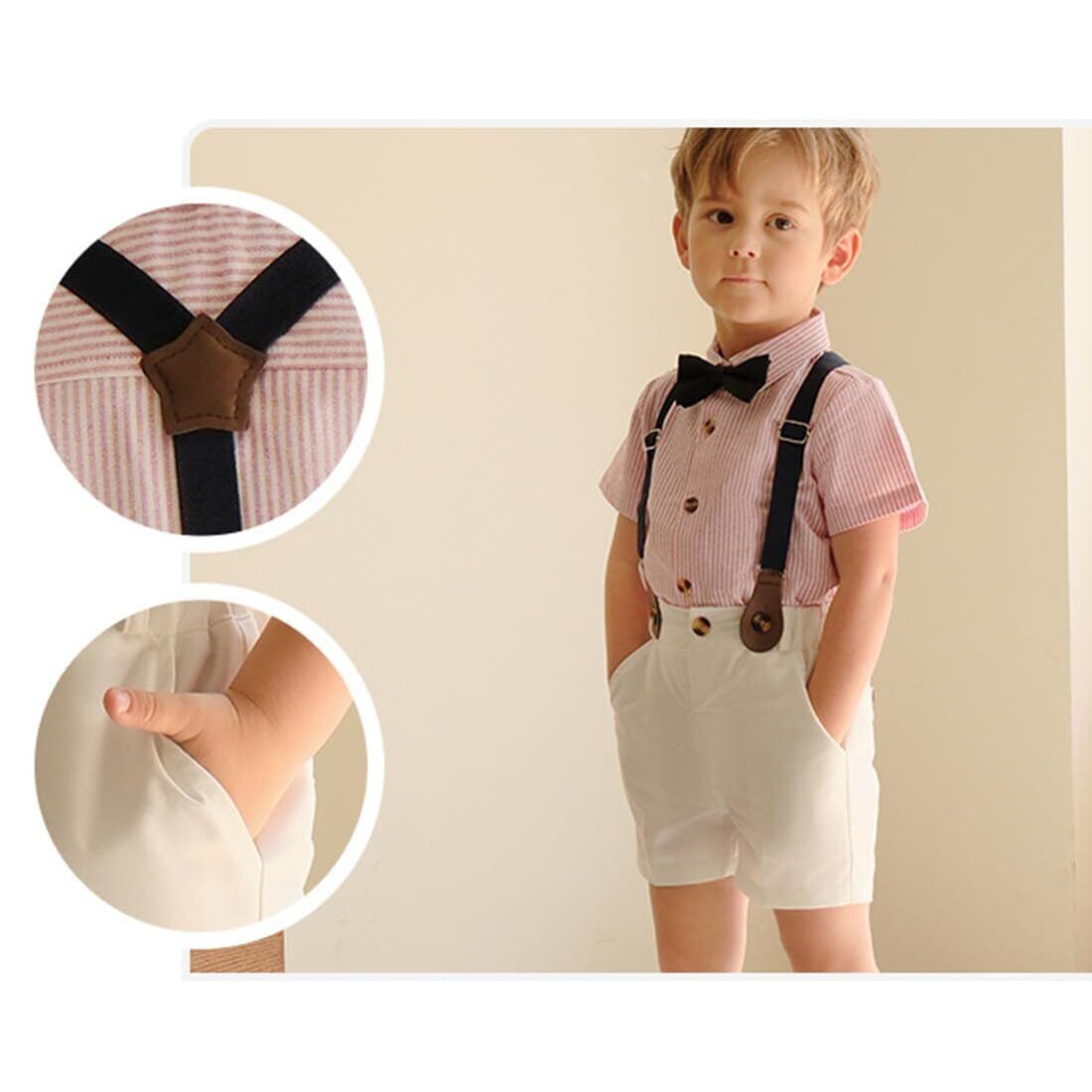 [Mon Ange] 男の子 フォーマルスーツ 半袖シャツ ズボン サスペンダー 蝶ネクタイ 結婚式 お呼ばれ 入園式 入学式 お宮参り 上下セット フォーマル